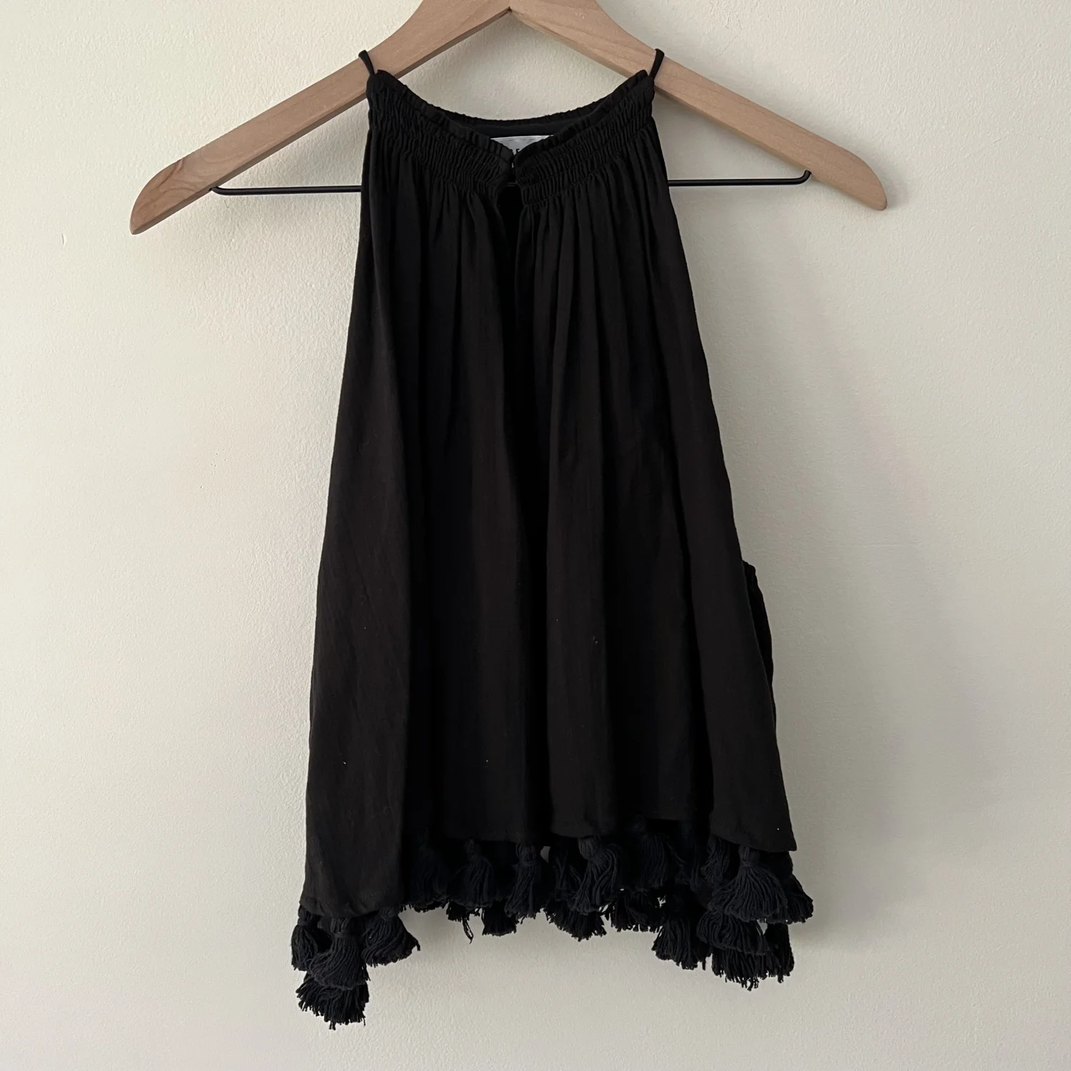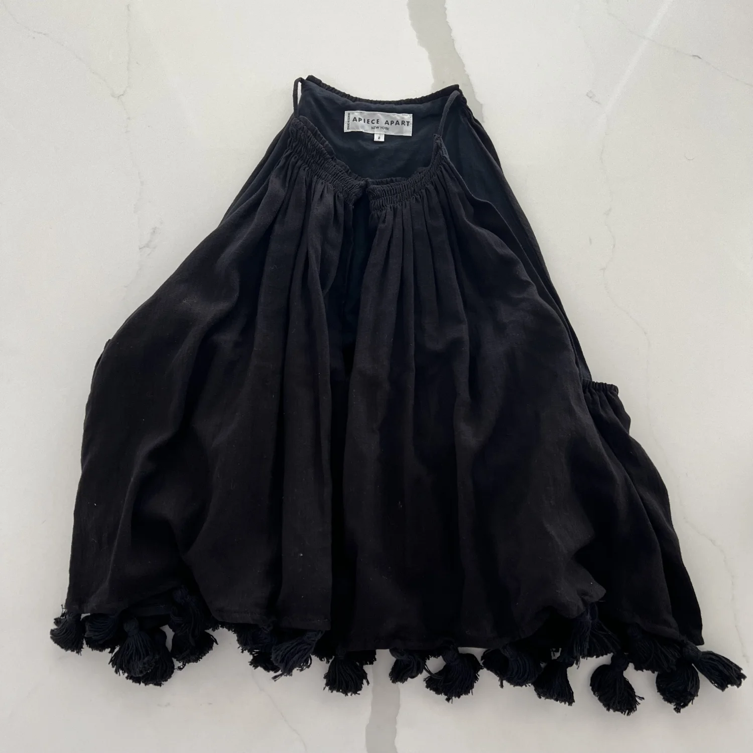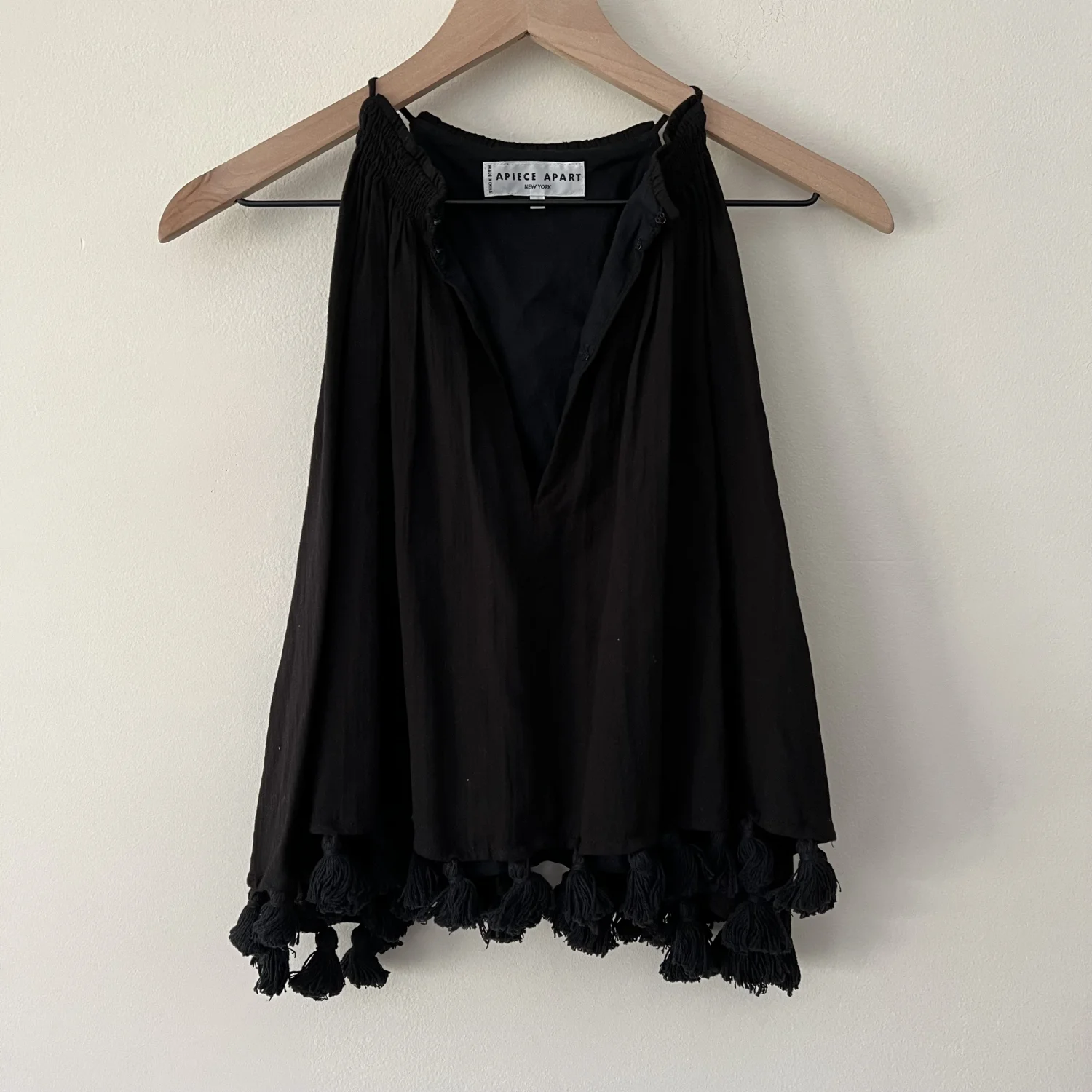 Black tank top by apiece apart. Size 2. 100% cotton. Tassel details.