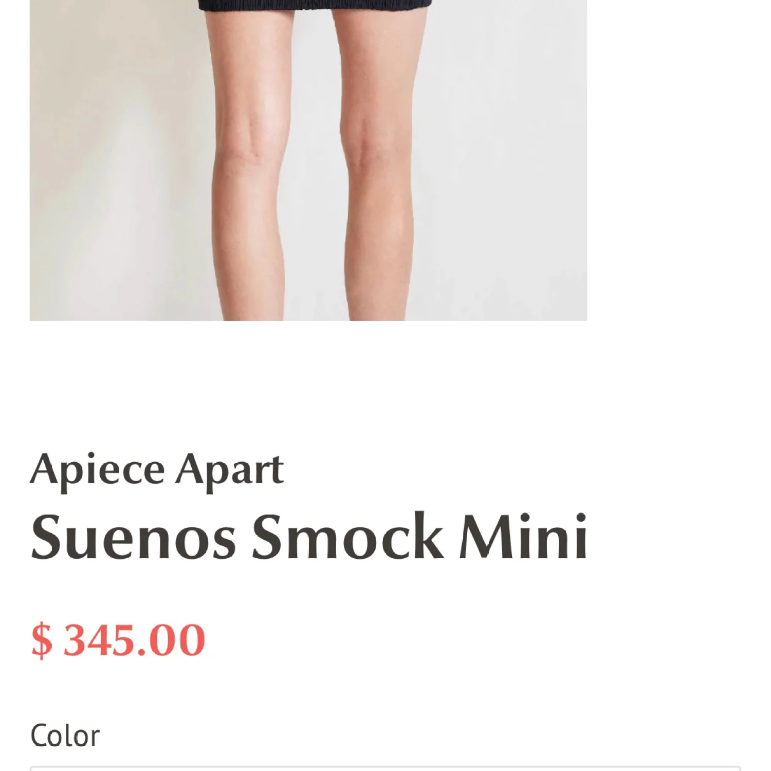Sold out, smocked mini dress by Apiece Apart. Black color. Originally was $345