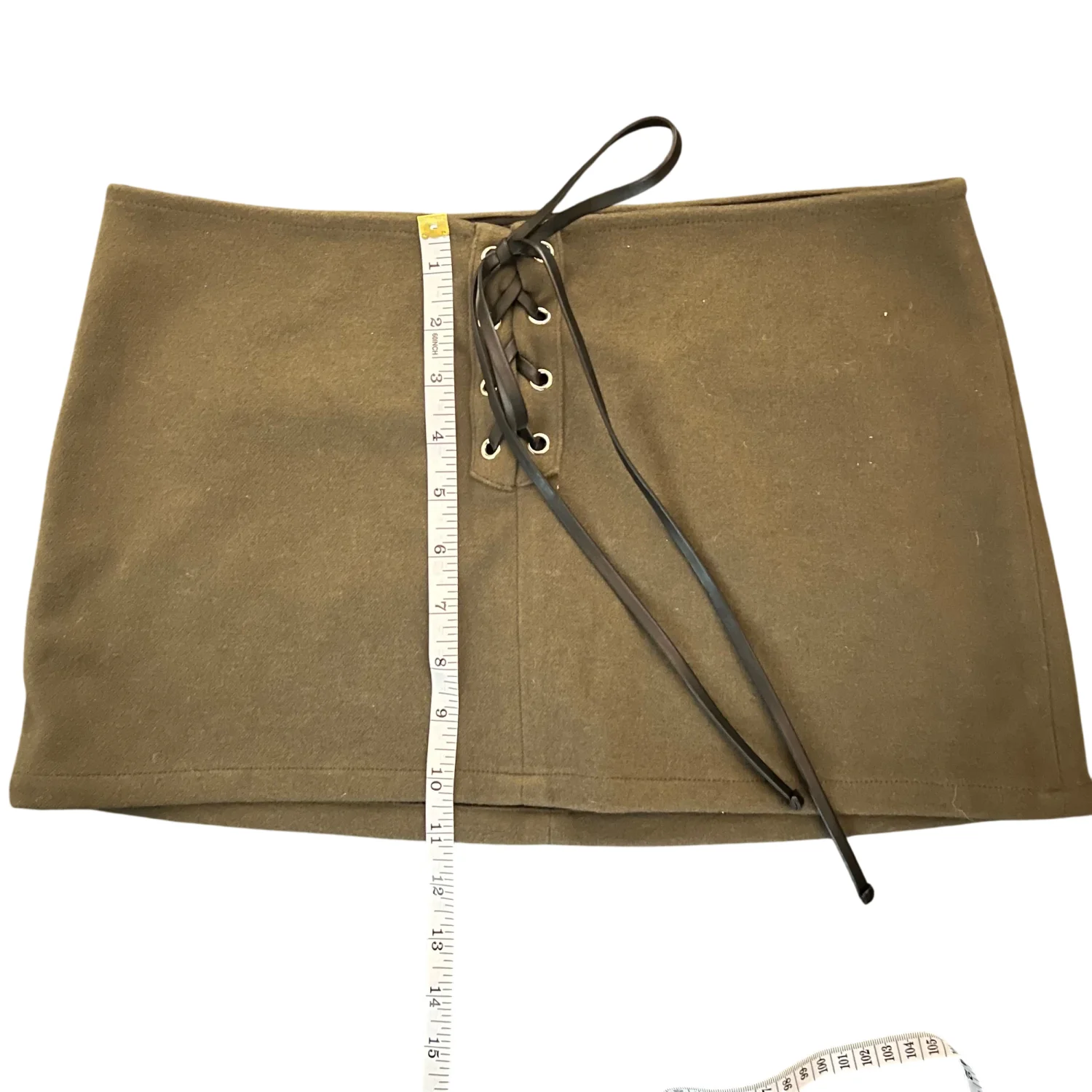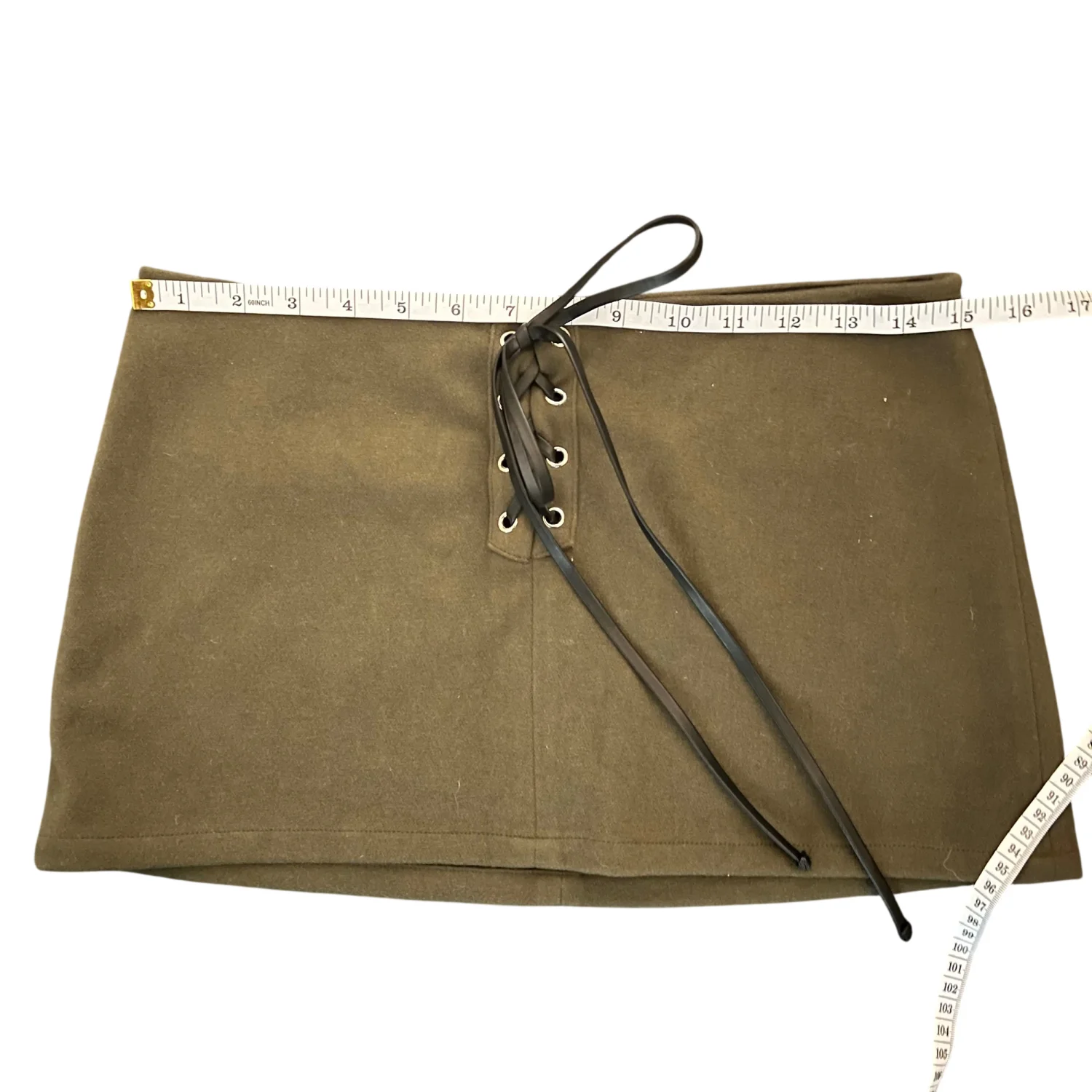 Daniel GUIZO wool mini skirt. There is no size tag as it is a sample but measurements are pictured. ~30” waist There’s a mark on the back that might come off with some brushing