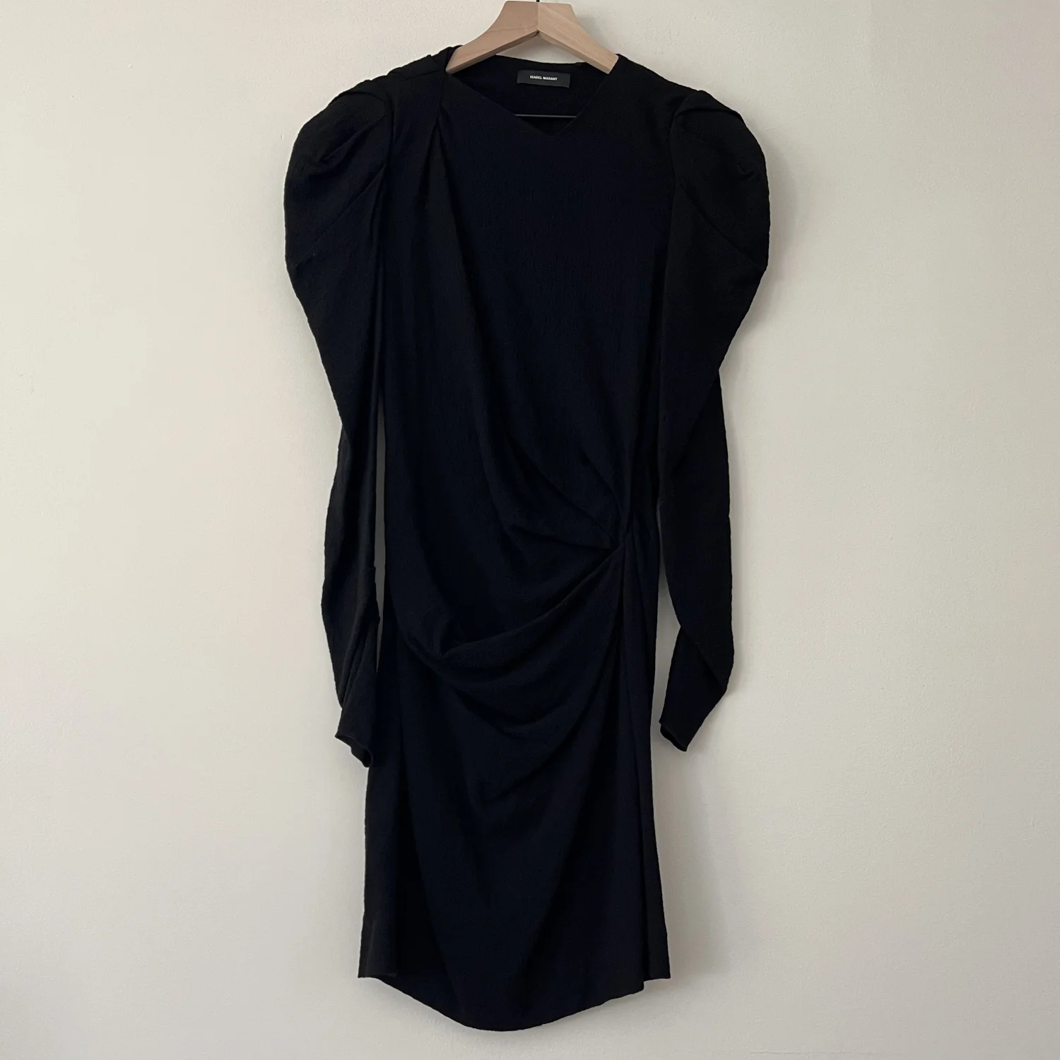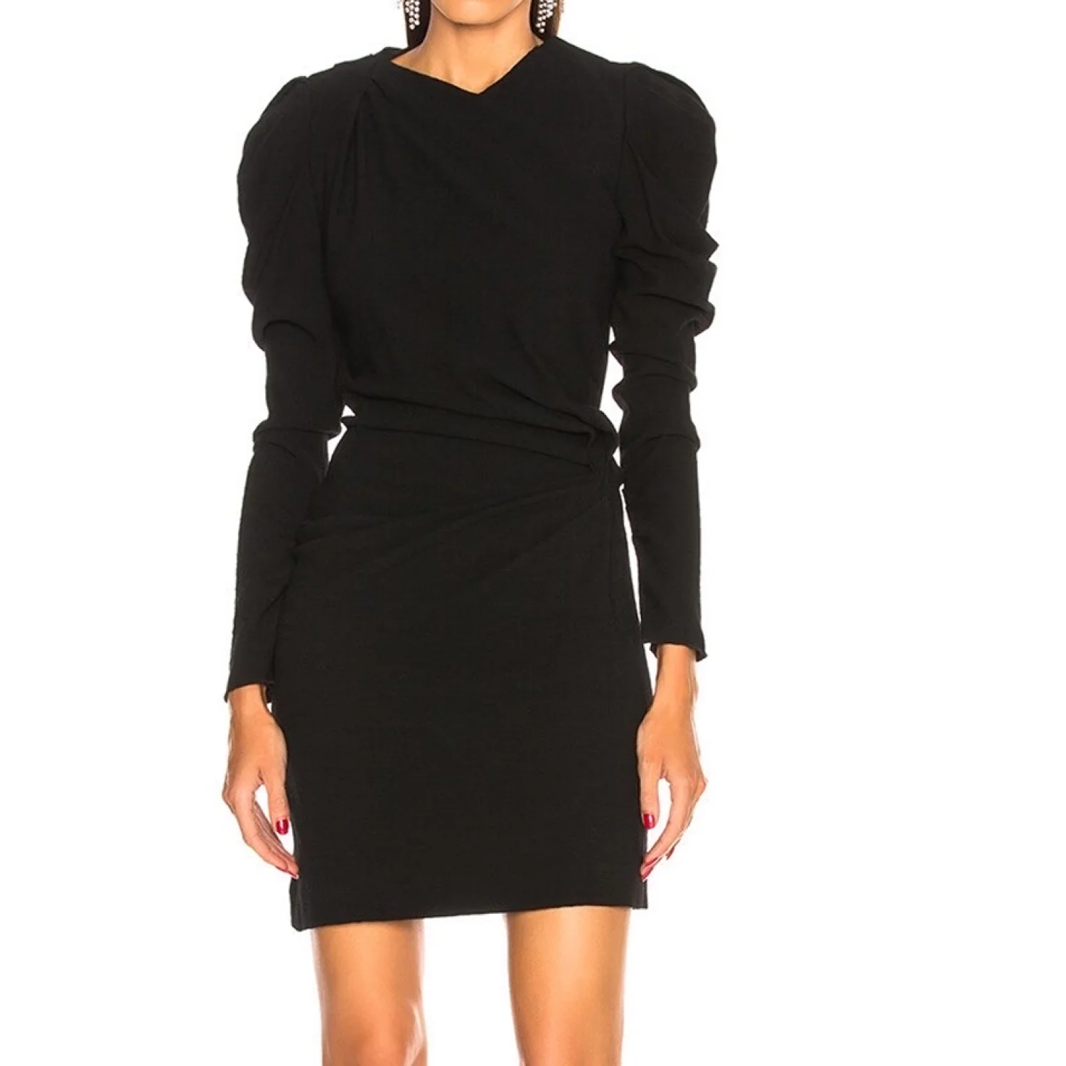 It was originally $795. Isabel Marant “Robe Abeni”. (Belt not included, it’s just as styled in the photos modeling the dress). Super chic black dress.