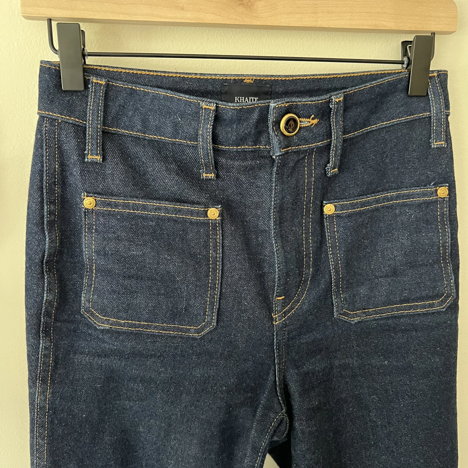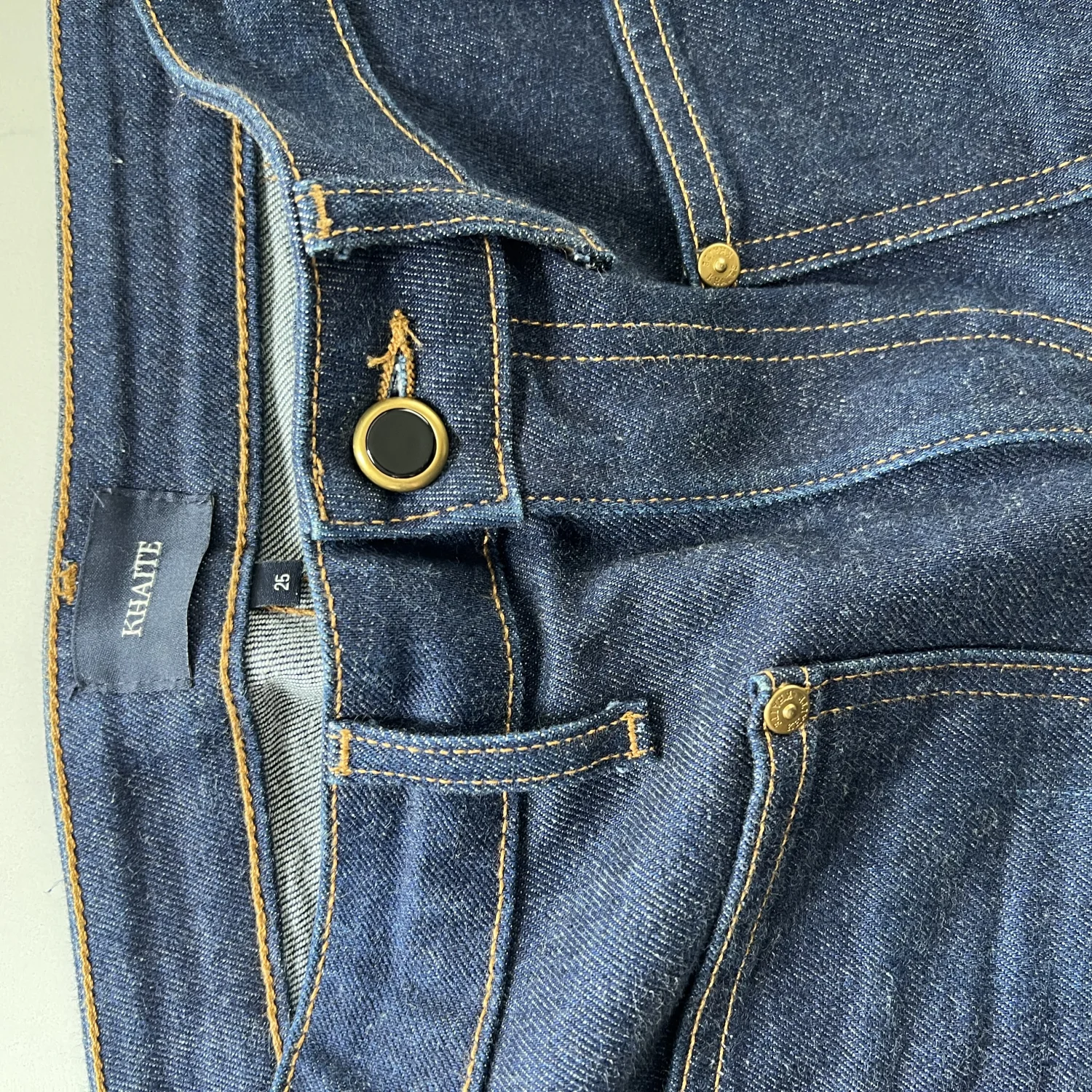 Feel free to message with any questions, like for measurements. Khaite Raquel. Denim jeans, pockets, zipper fly.