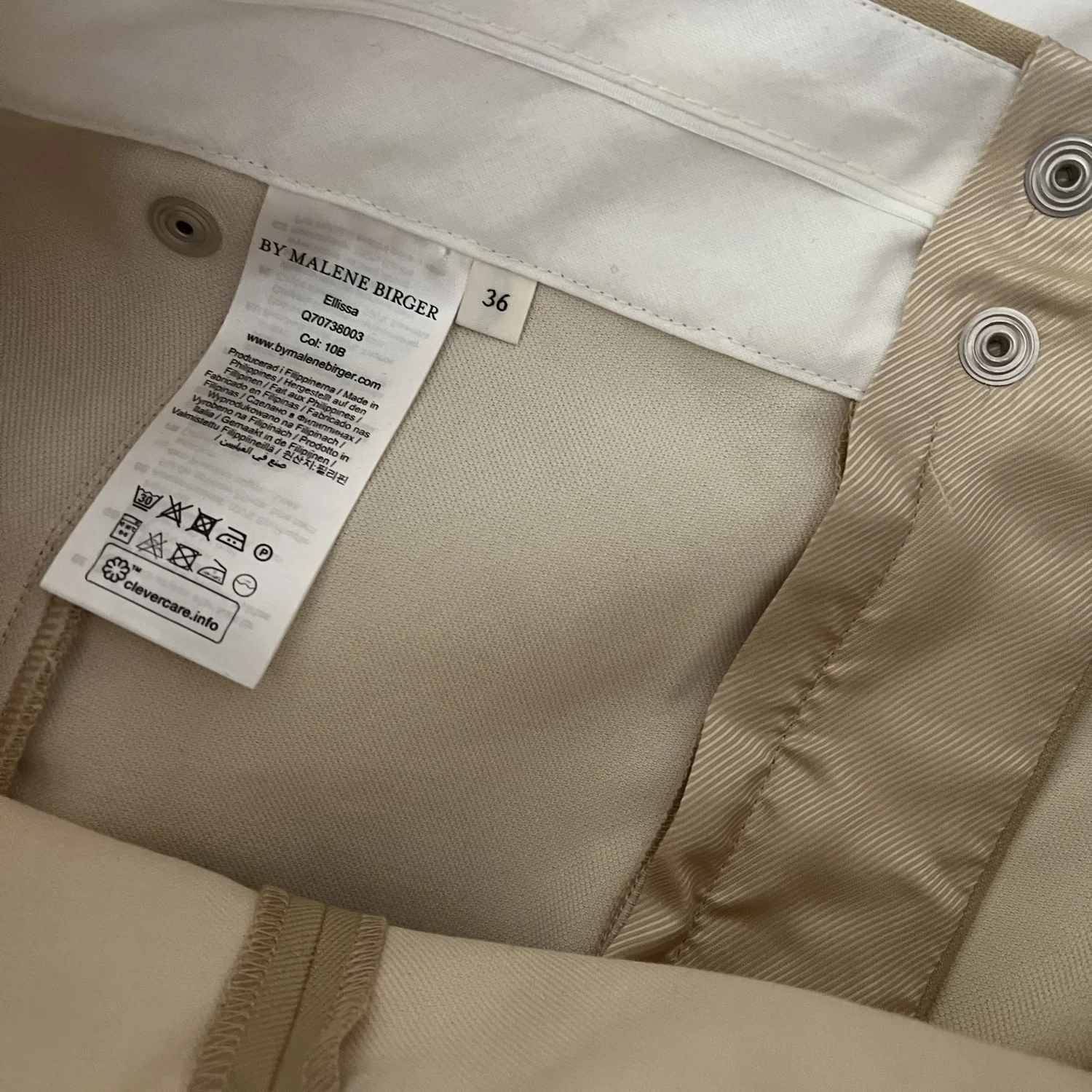 Size 36 = S. Product Details Shorts, Cotton, Belt loops, High-rise cut, Two side slit pockets, Concealed snap and zip fastening at front, Non-stretchy fabric, Mid-weight fabric. 100% Cotton Product Code: 1647597320560819 BY MALENE BIRGER By Malene Birger taps into the cool Copenhagen vibe to create contemporary minimalist pieces for modern women, who want an uncomplicated, yet sophisticated wardrobe and have little time to prepare.