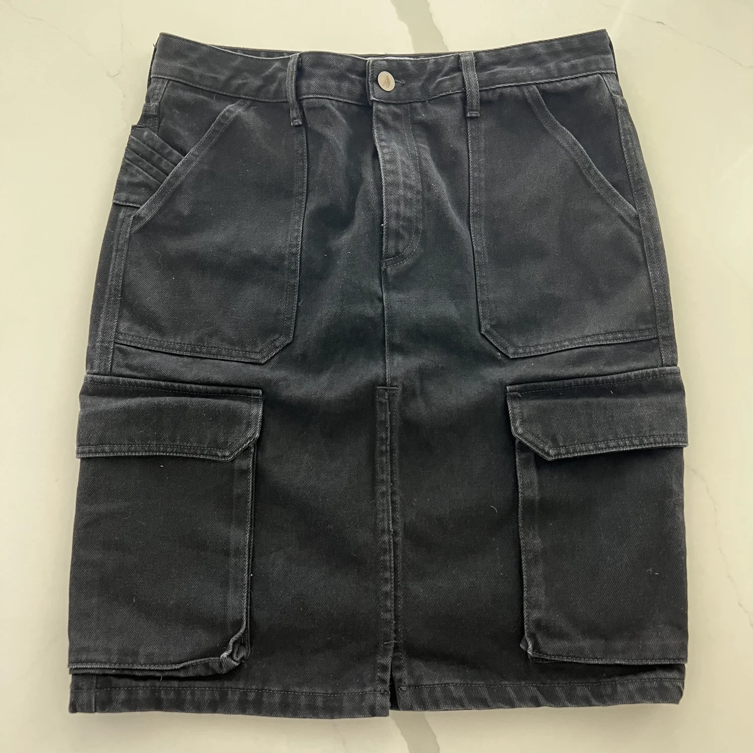 Black denim cargo skirt by the Attico. See pics for dimensions. It’s listed as size 30.