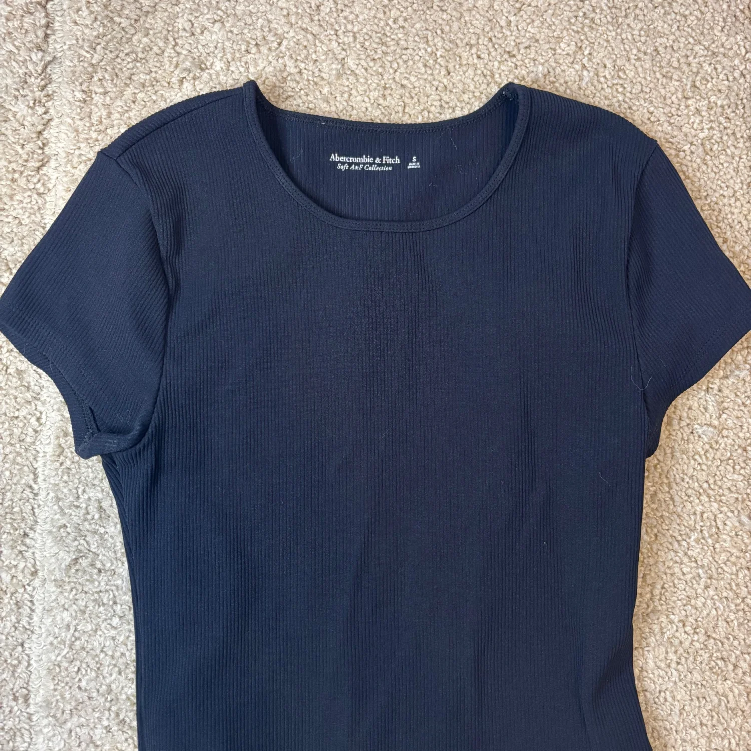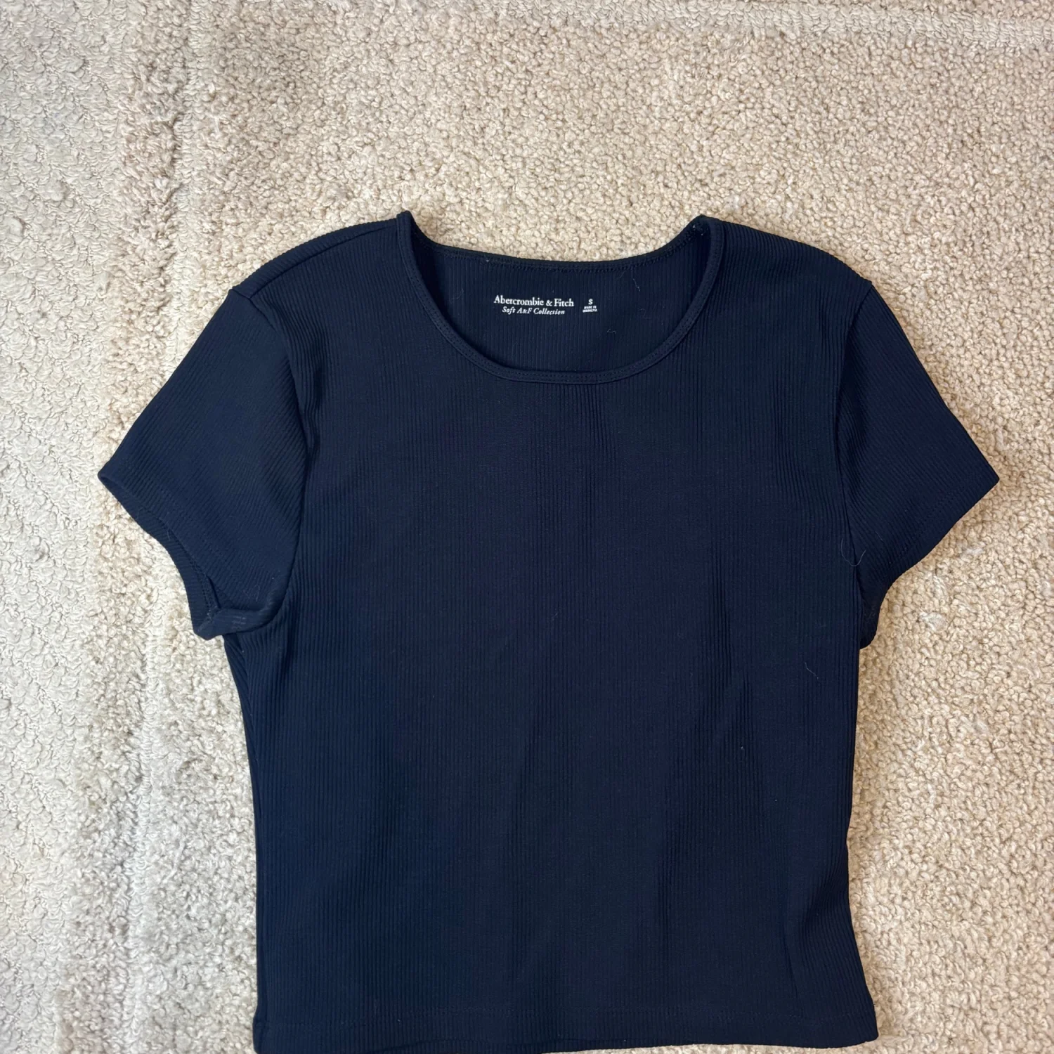 Abercrombie and fitch black ribbed short sleeve cropped tee Size small Super stretchy and comfortable!