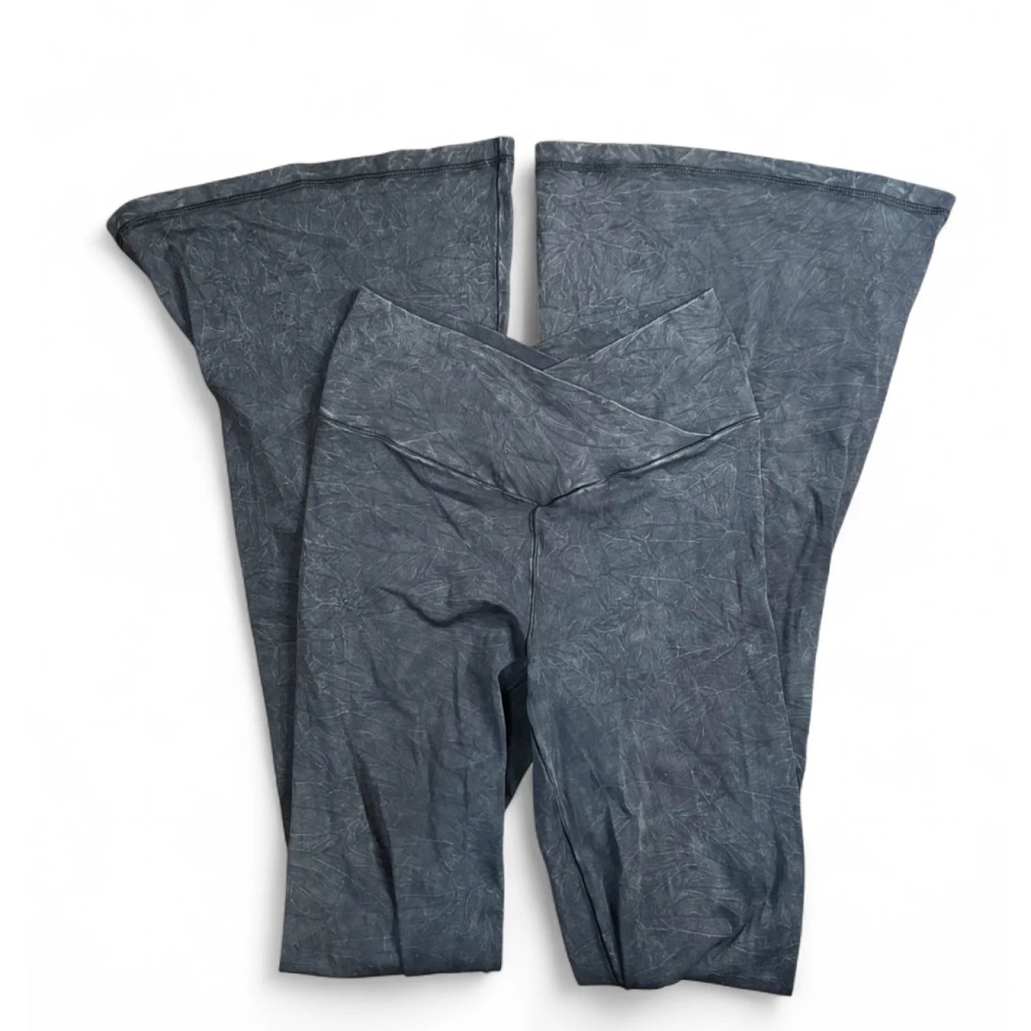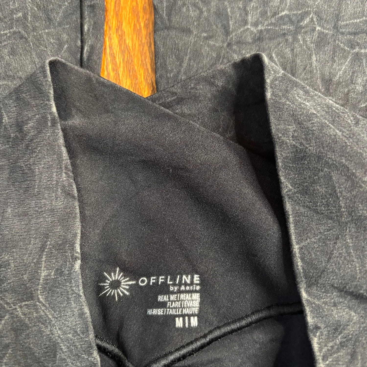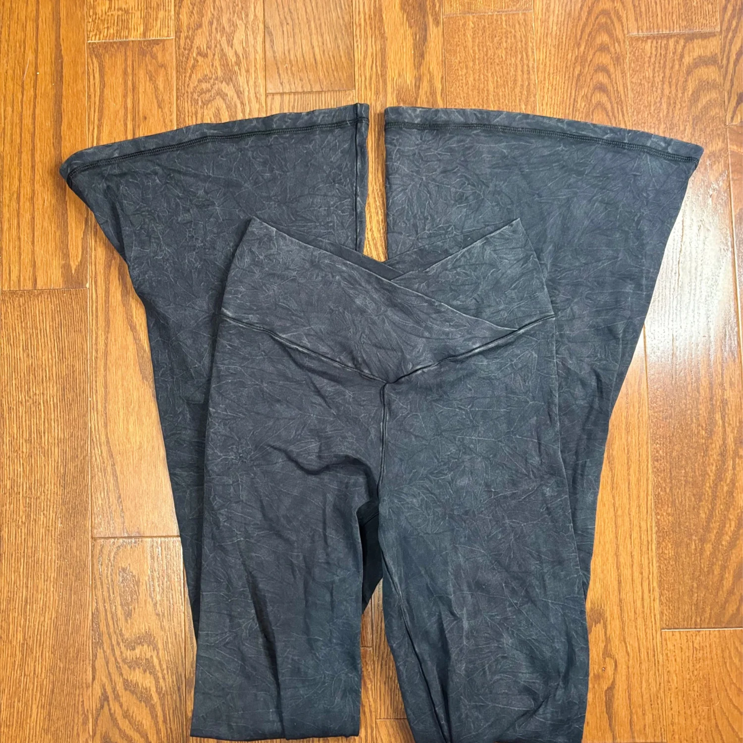 OFFLINE by Aerie Real Me Double Crossover Flare Leggings in a mineral or acid wash. Size medium, Athleisure, clean girl aesthetic, retro, cozy core, loungewear. Nylon, polyester, elastane. Gray color. Great condition