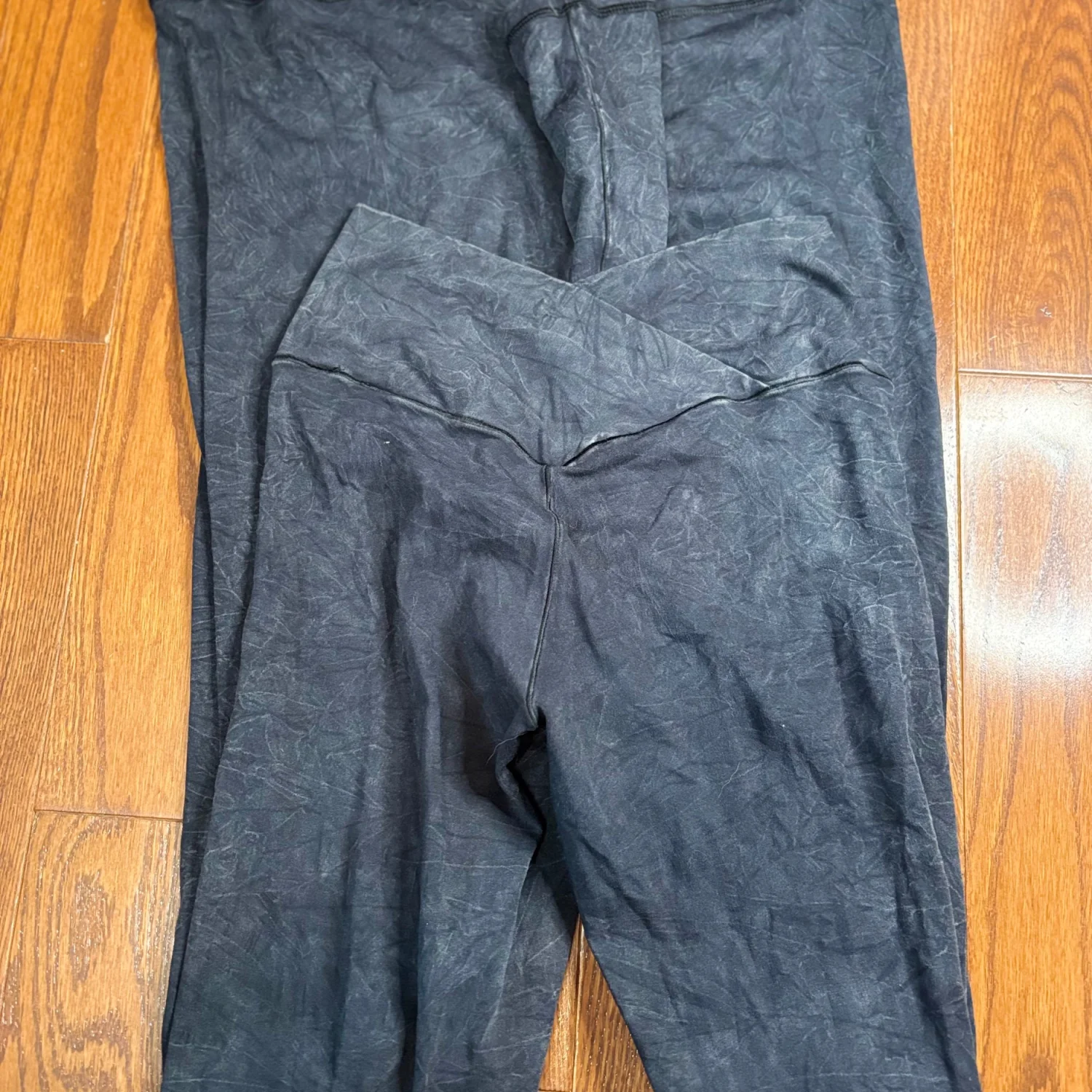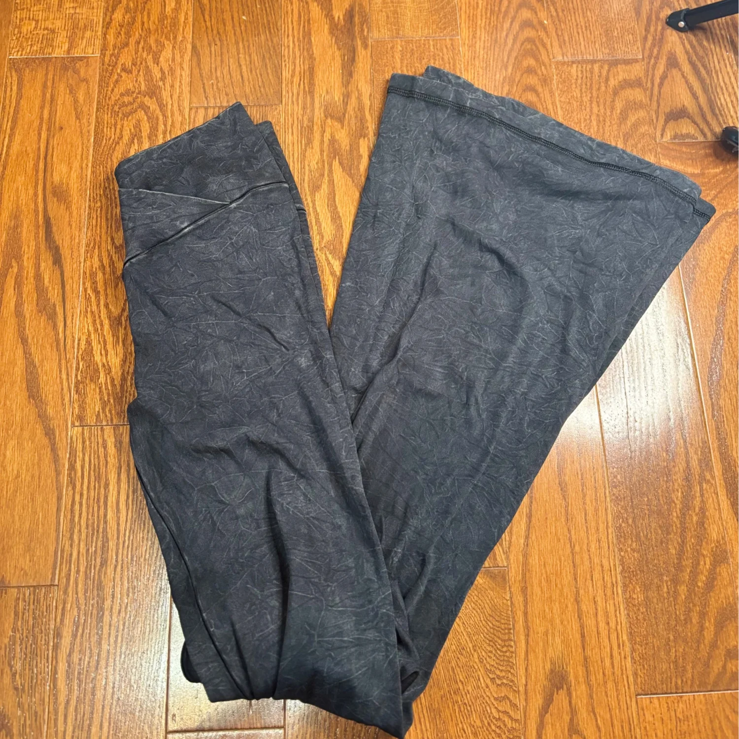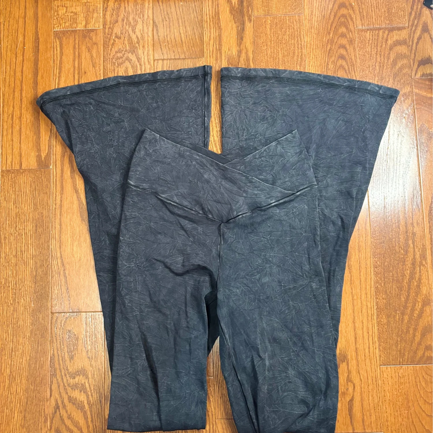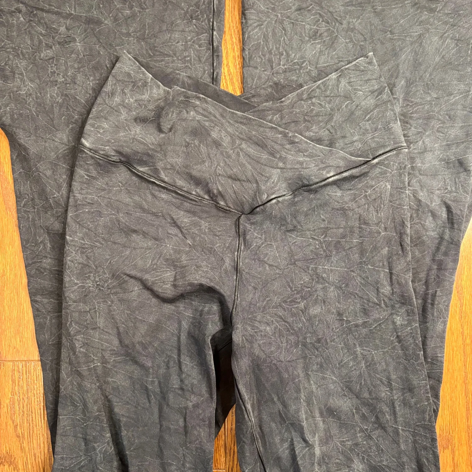 OFFLINE by Aerie Real Me Double Crossover Flare Leggings in a mineral or acid wash. Size medium, Athleisure, clean girl aesthetic, retro, cozy core, loungewear. Nylon, polyester, elastane. Gray color. Great condition