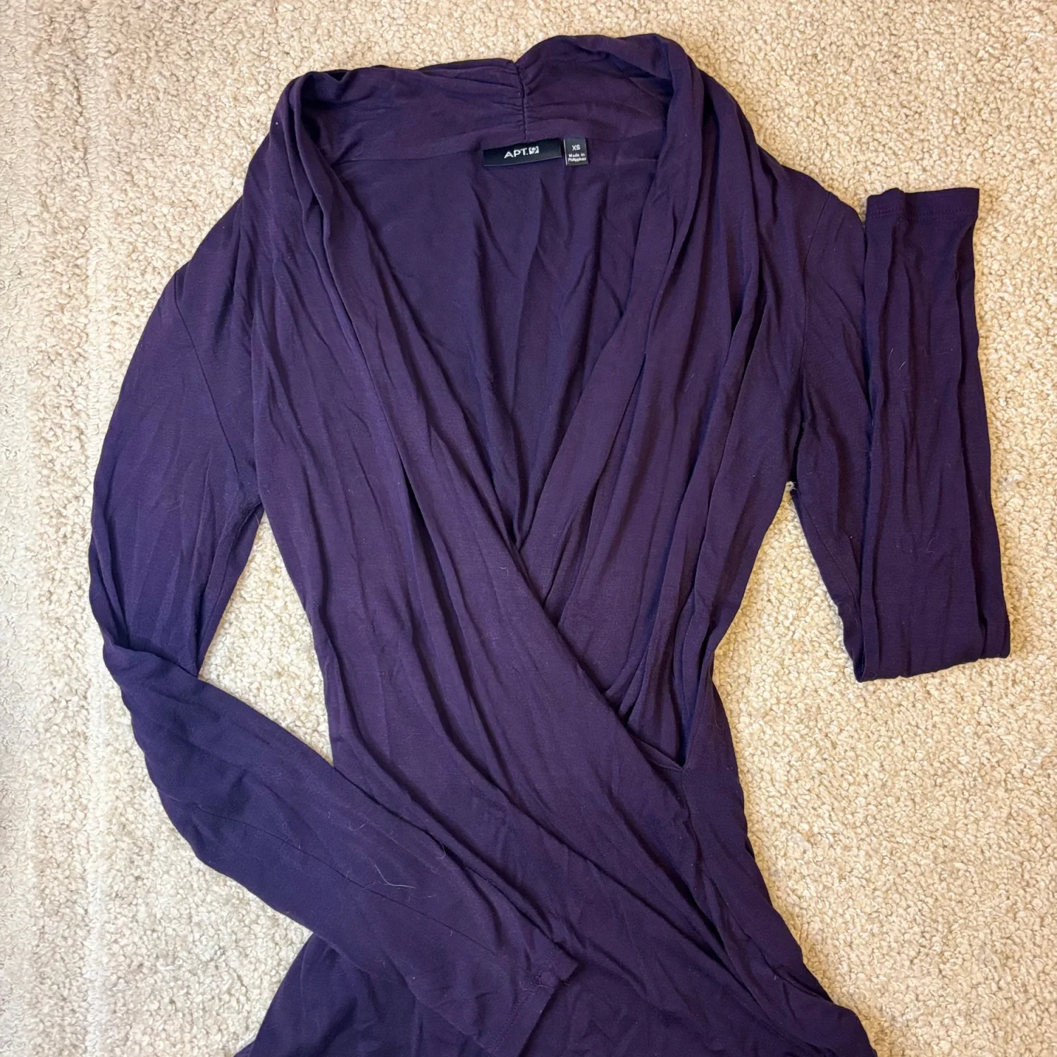 Apt. 9 dark purple long-sleeve crossover v-neck top Size xs Rayon and spandex materials Stretchy and soft material Great condition
