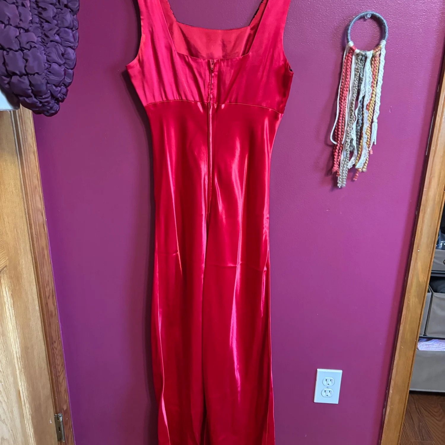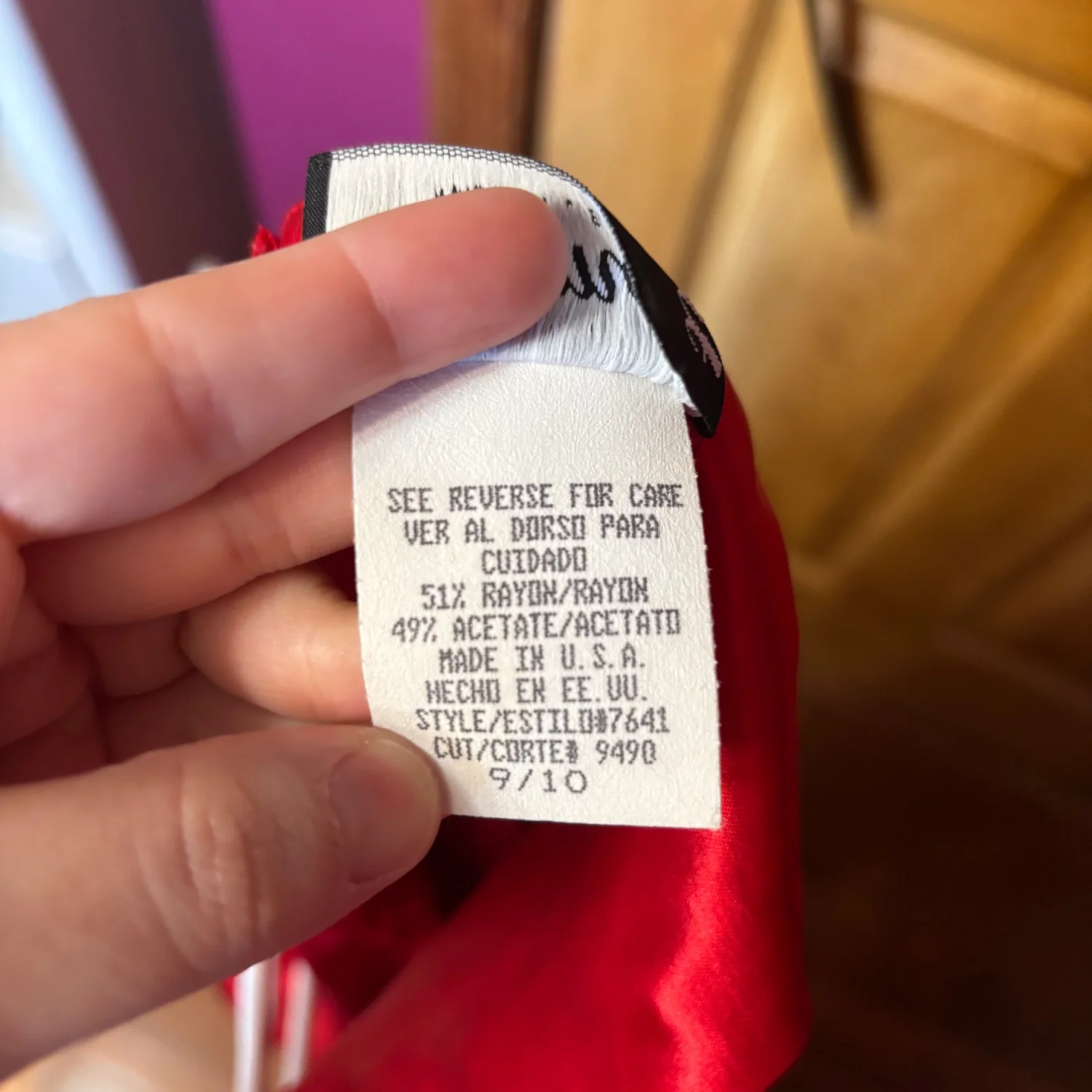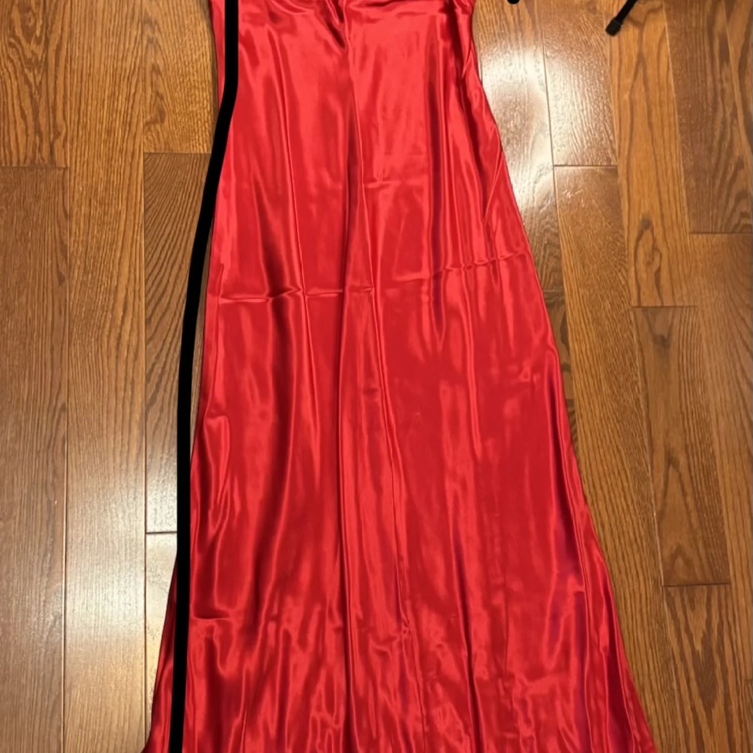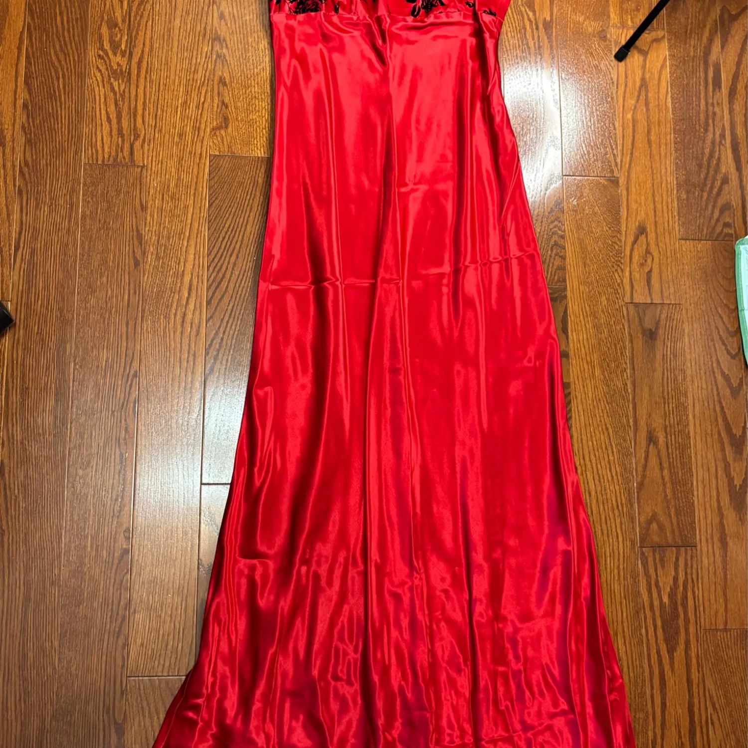 Be smart vintage Y2K red satin gown with black floral details sis 9/10