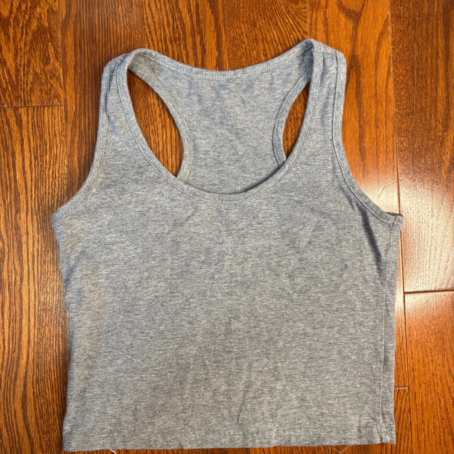 Gray racerback cropped tank top Size small Good condition Workout, athletic, loungewear, casual Pit to pit about 13 inches Pit down about 9 inches