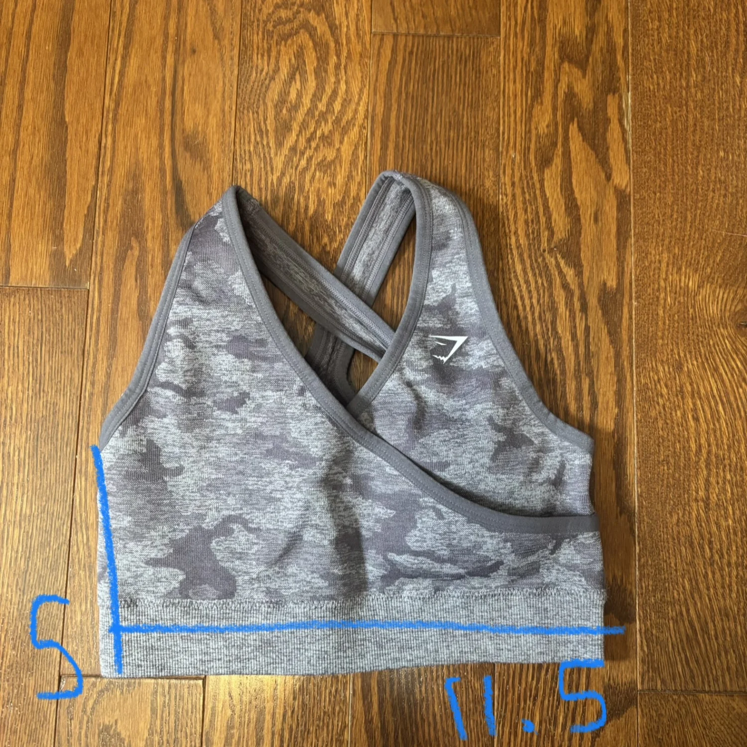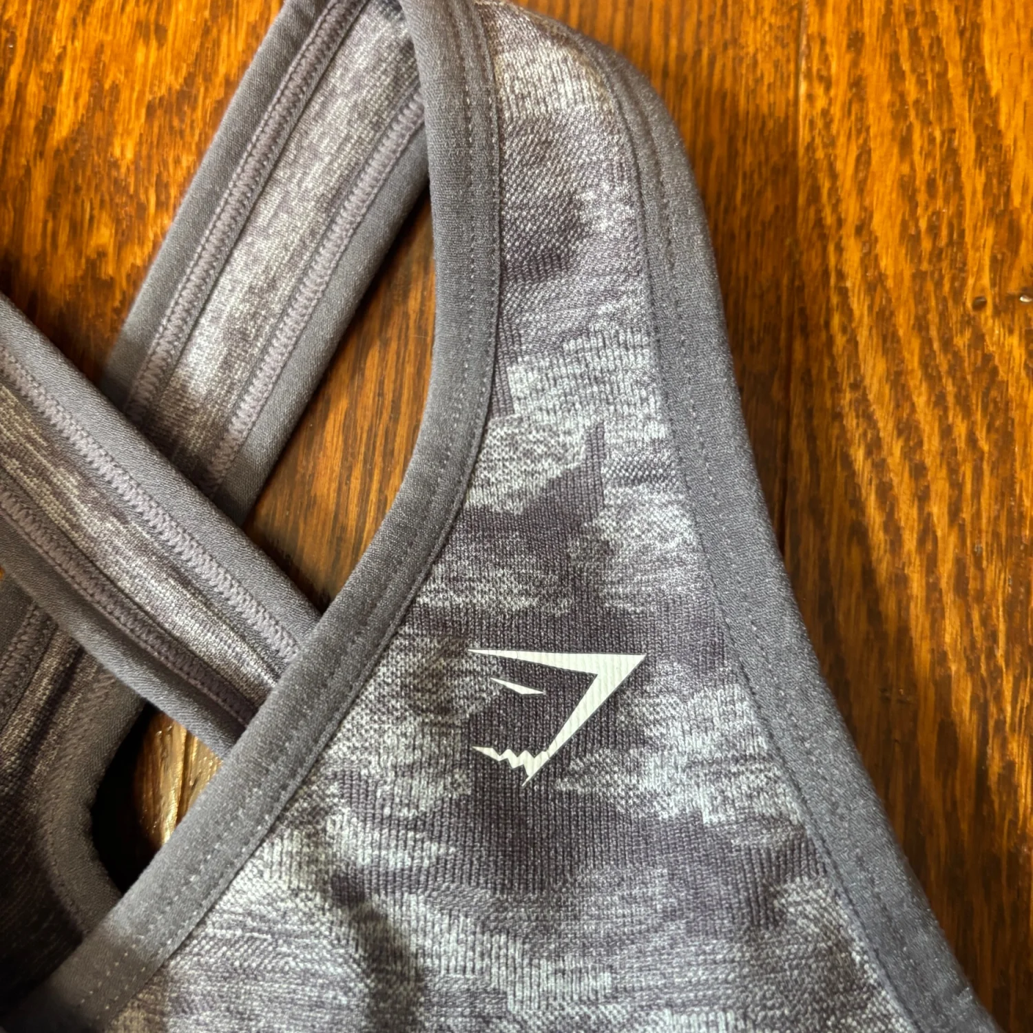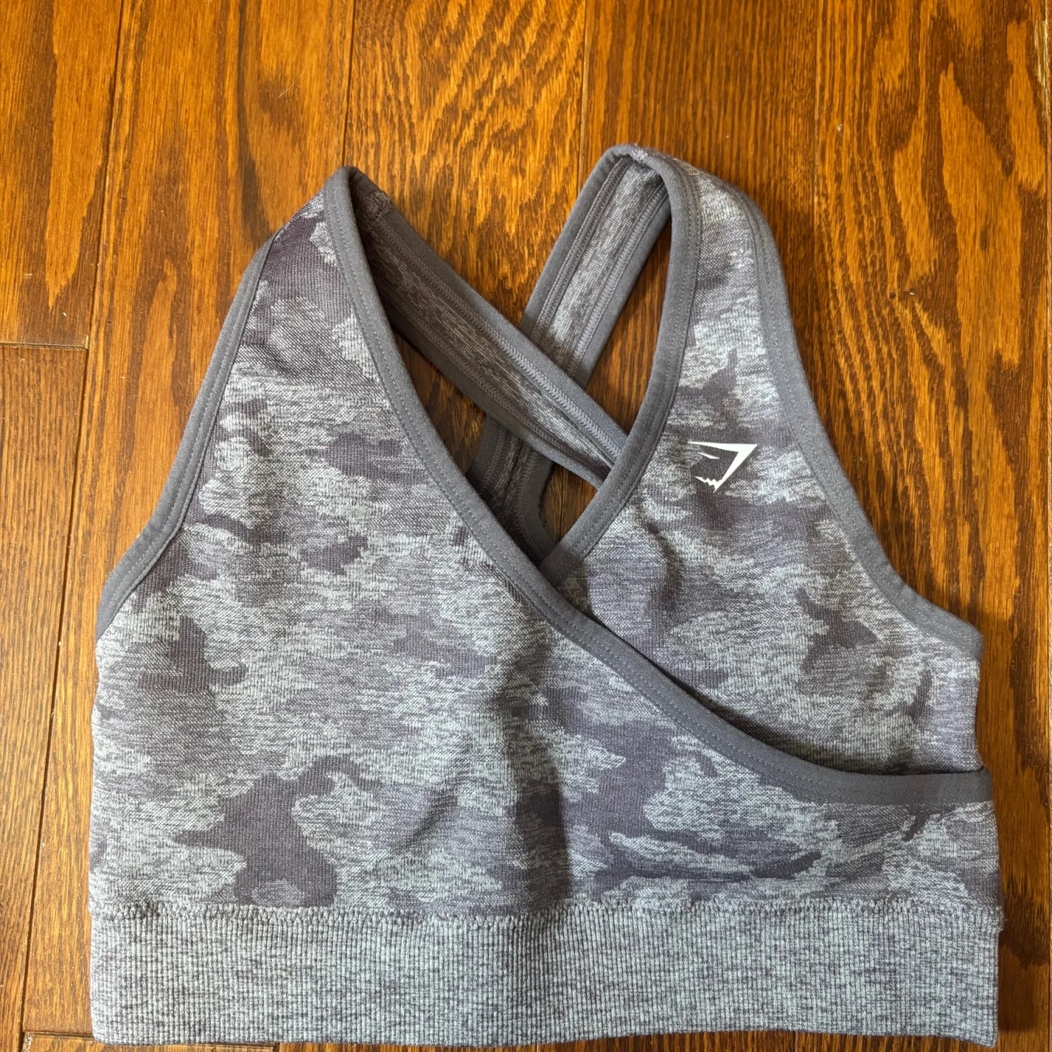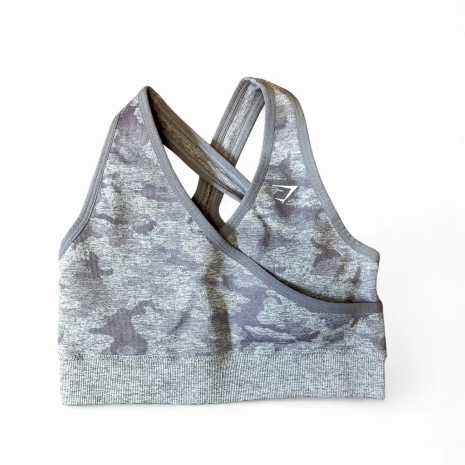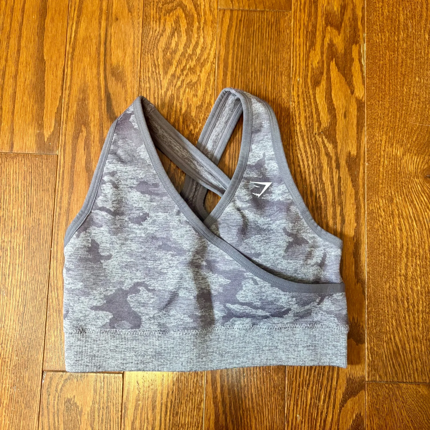 Gymshark Adapt Camo Seamless Sports Bra in a light gray camouflage pattern. Size xs/s Pit down is about 5 inches 11.5 inches across Dark purple color Great used condition Athleisure, workout, performance core