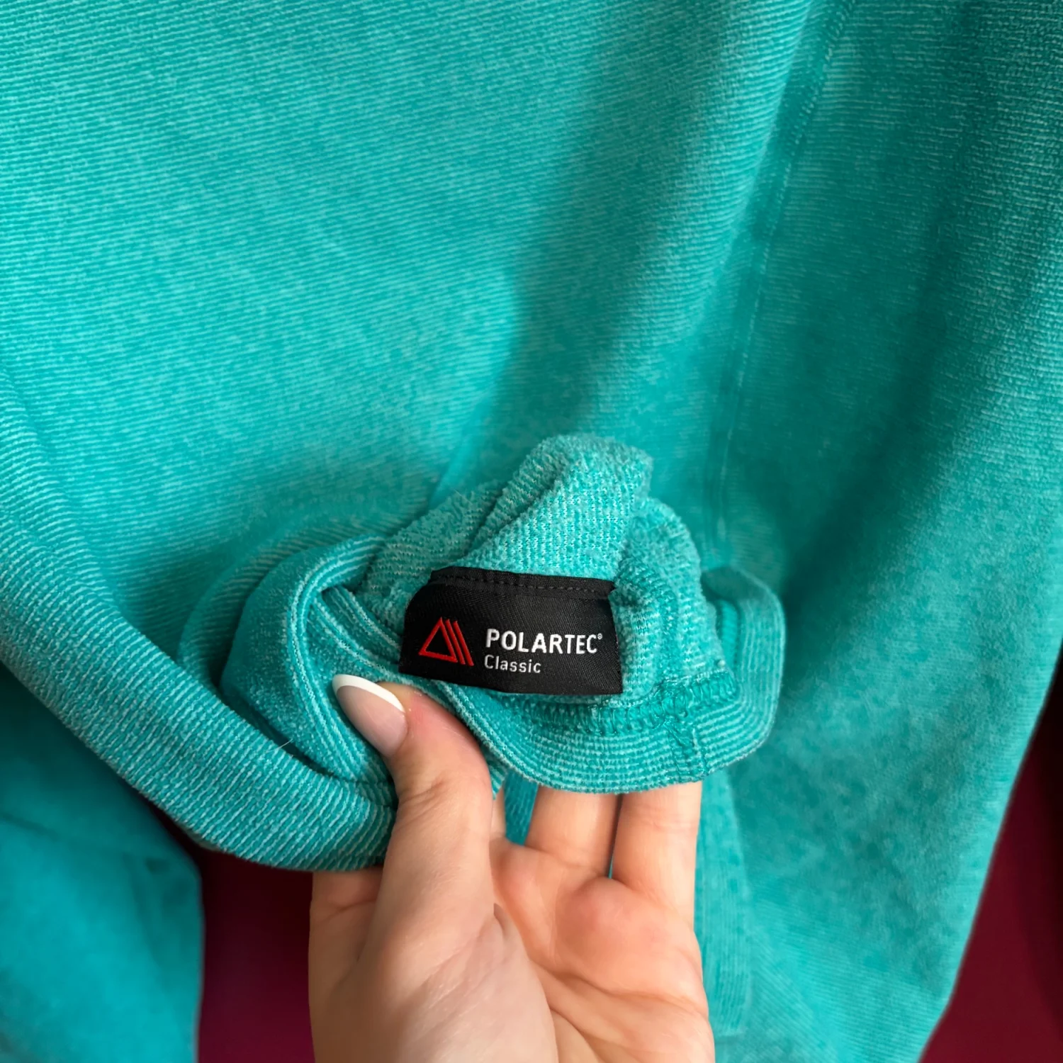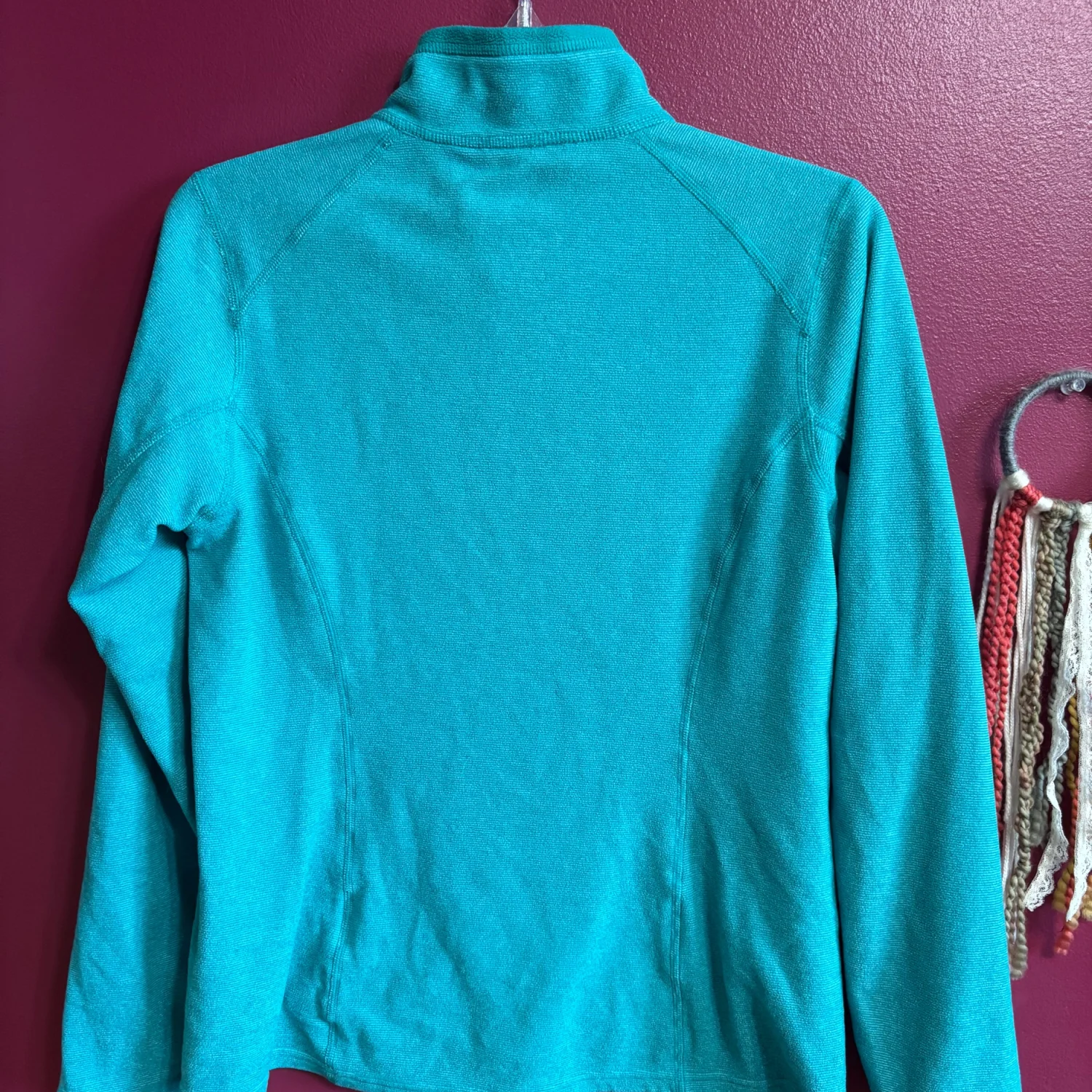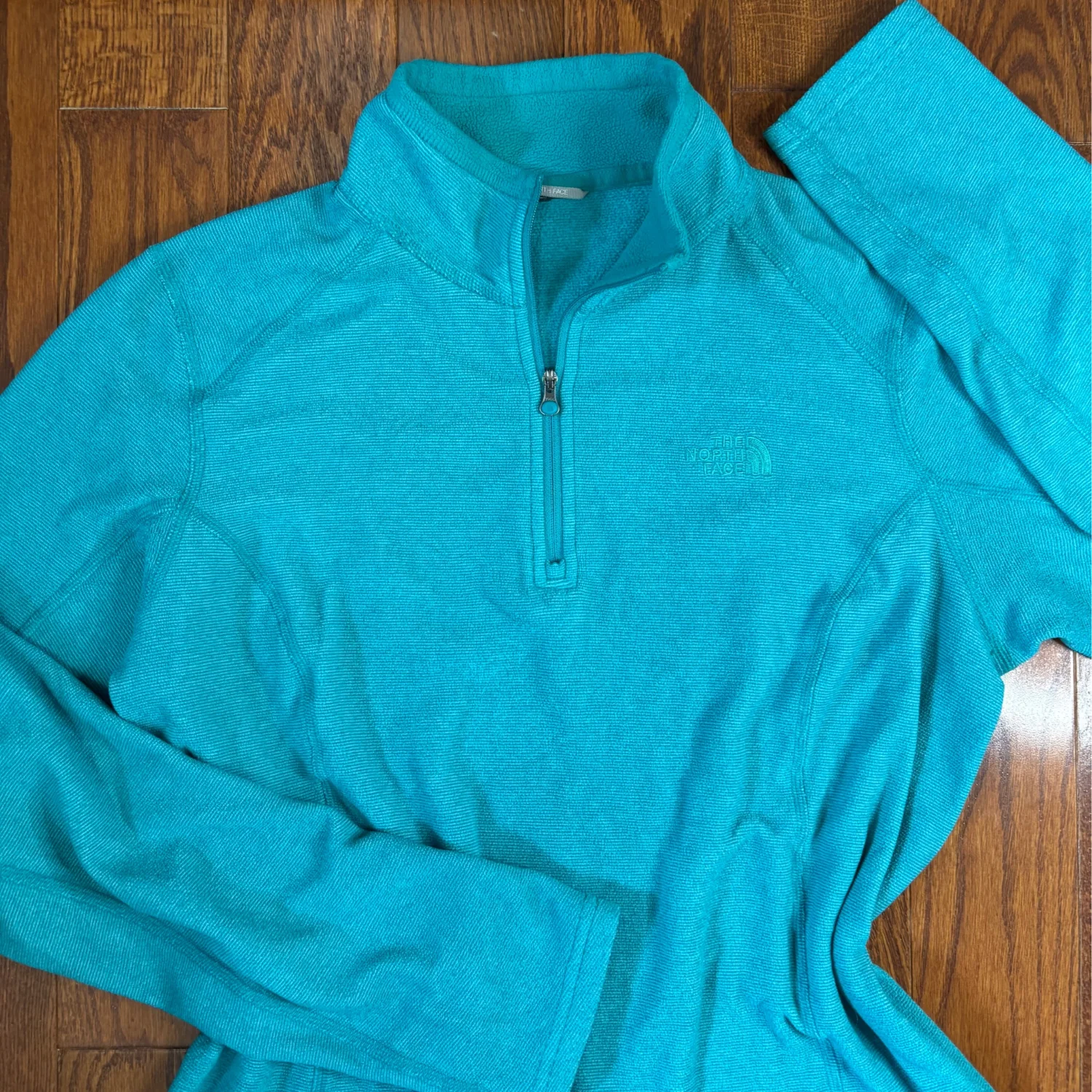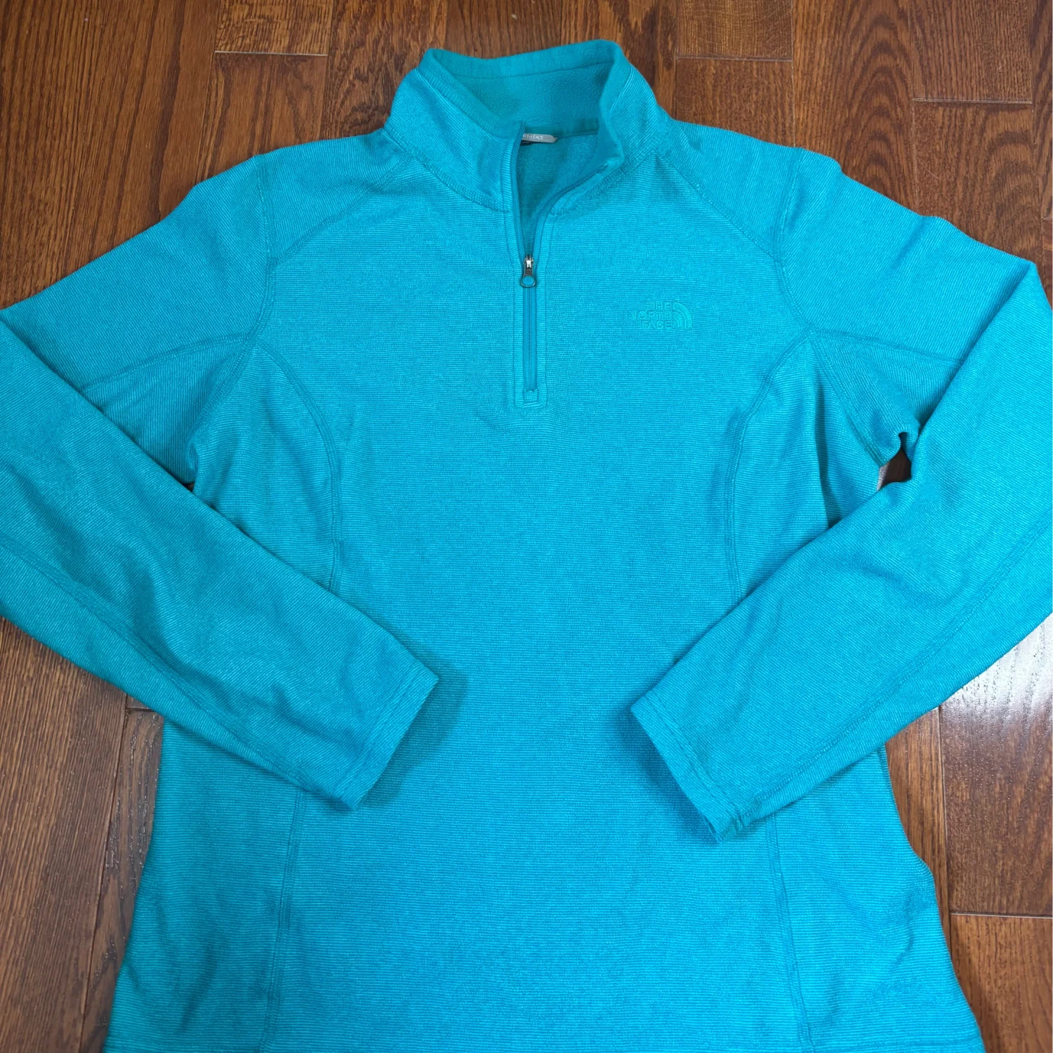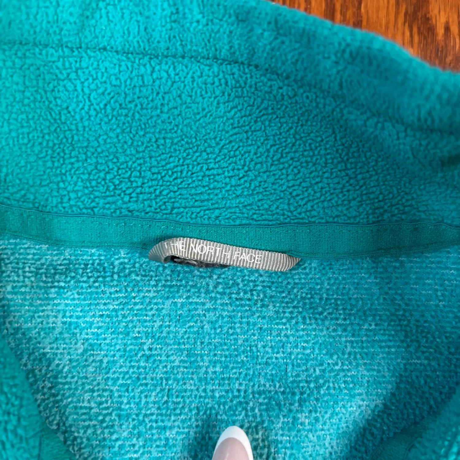 North face women’s blue quarter zip fleece jacket Light weight and warm Appears to fit a size small best. Measurements included Pit to pit about 18.5 inches Pit down about 14 inches Arms about 20 inches