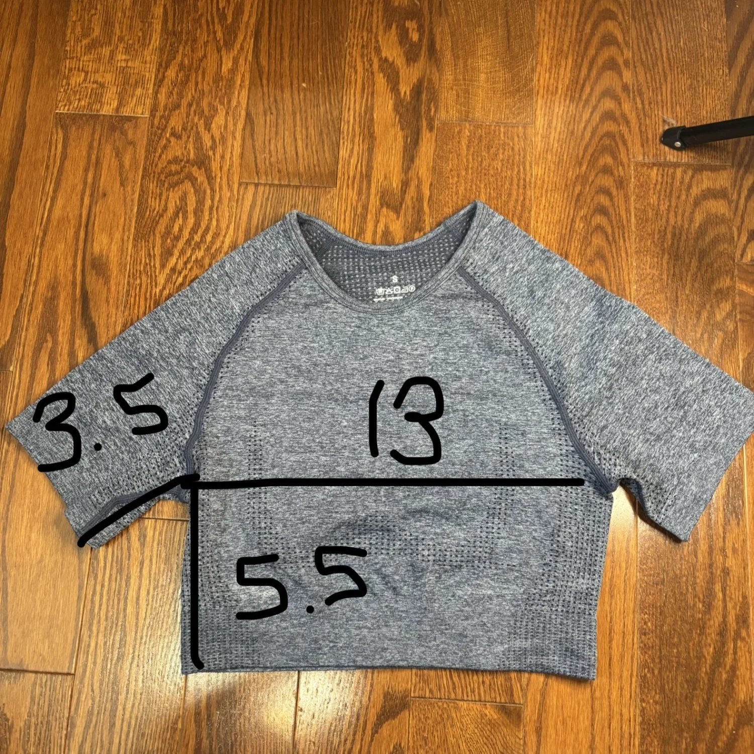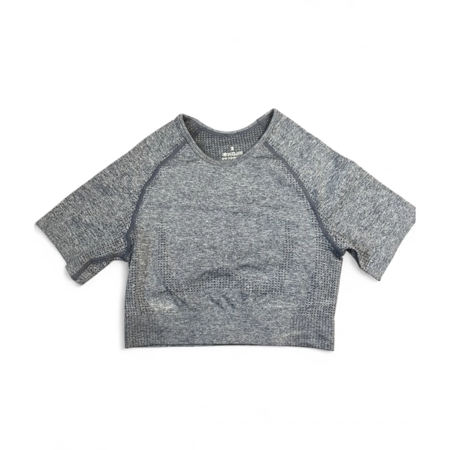 seamless blue cropped workout top Size small Pit to pit about 13 inches Pit down about 5.5 inches Sleeve about 3.5 inches Stretchy, cropped, athletic, Athleisure, workout, fitness