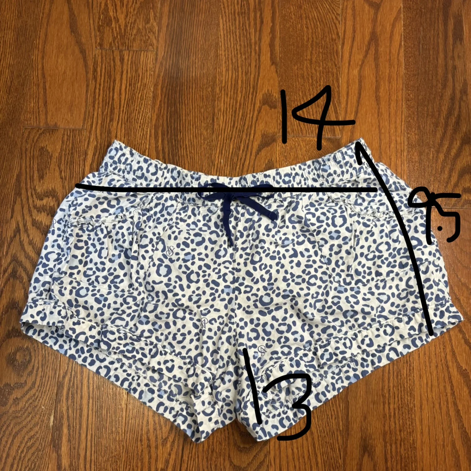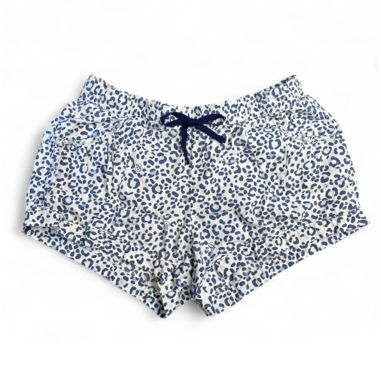 Victoria’s Secret blue and white cheetah print pajama shorts Size small Cotton and modal materials Drawstring waist Soft and in well loved condition/ used Waist about 14 inches/ 24 waist size Inseam about 3 inches Length about 9.5 inches Sleepwear, soft, comfortable, loungewear, sleep