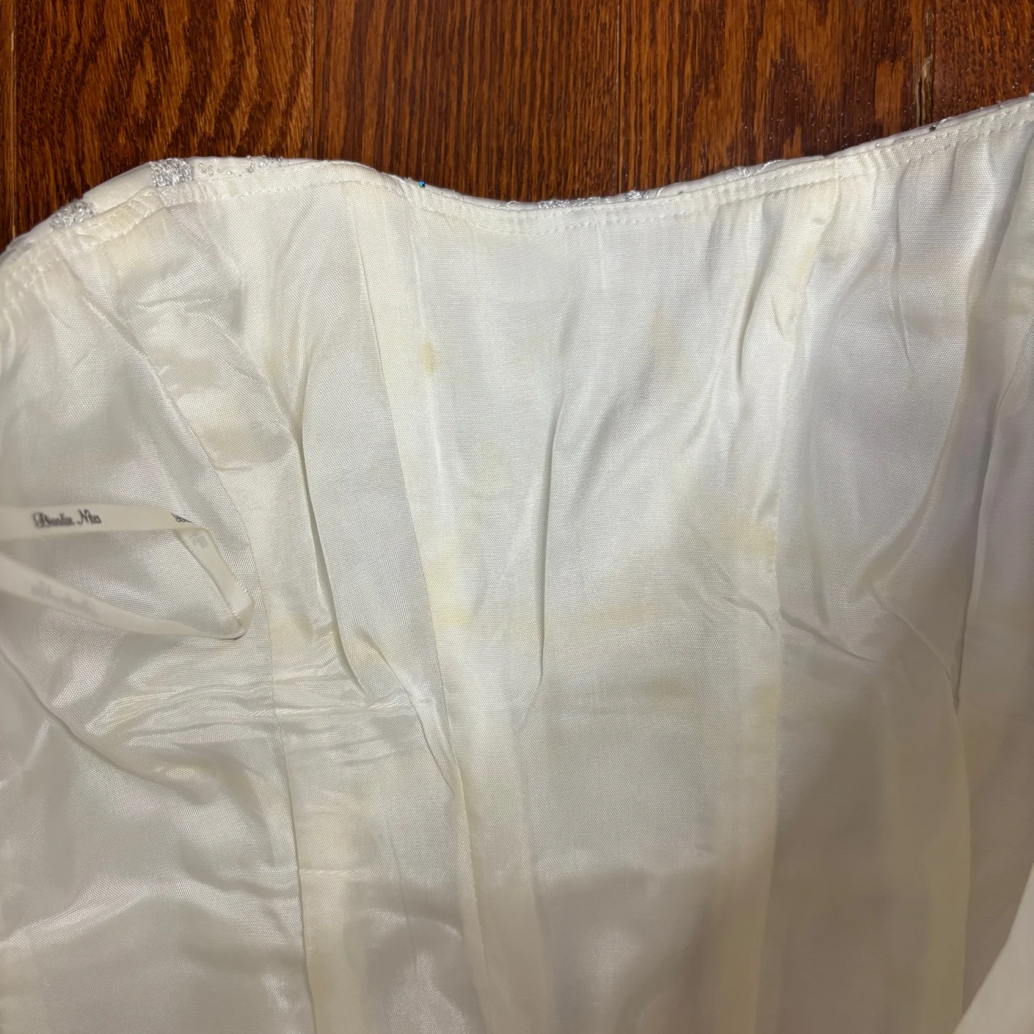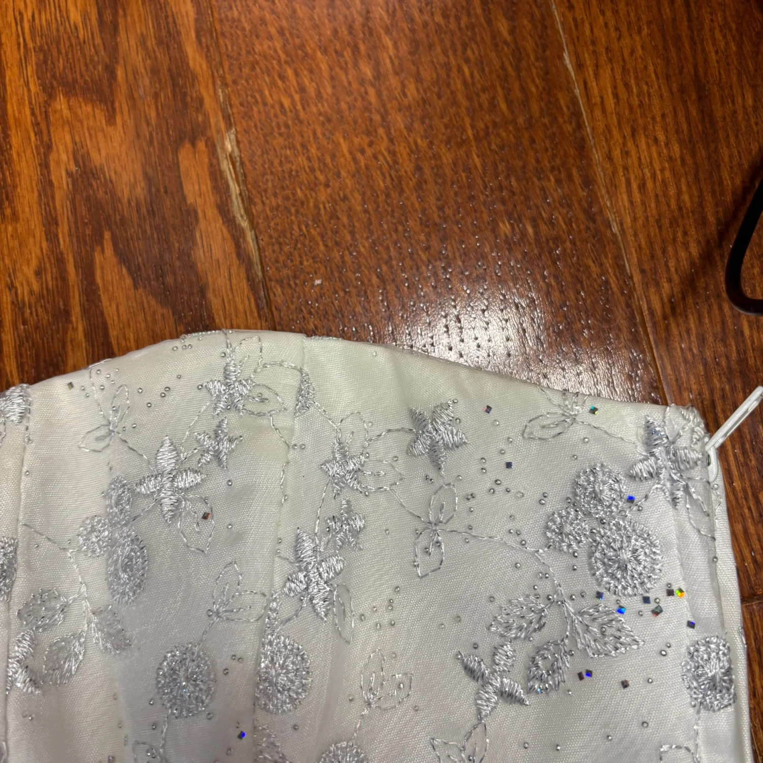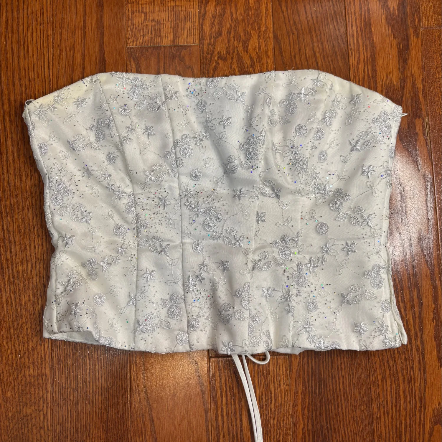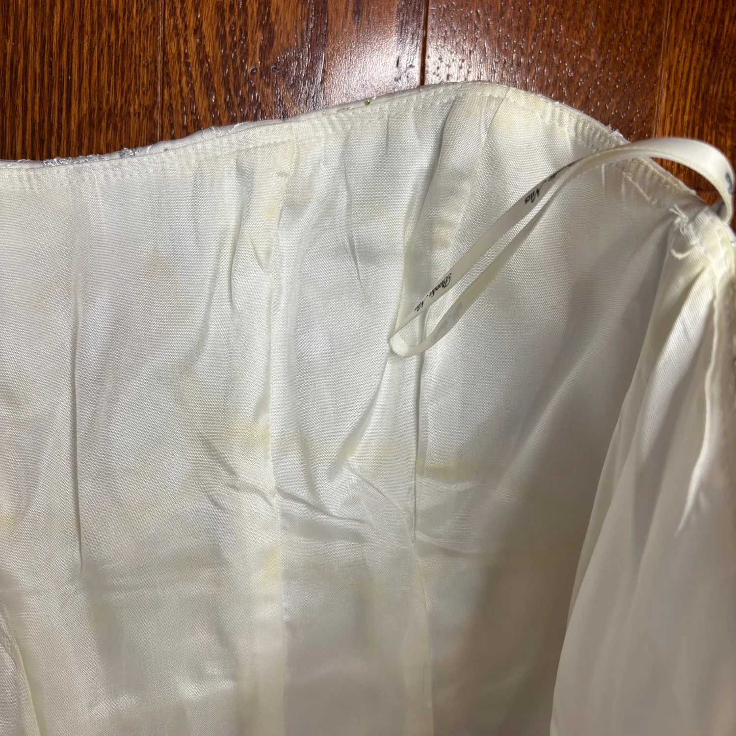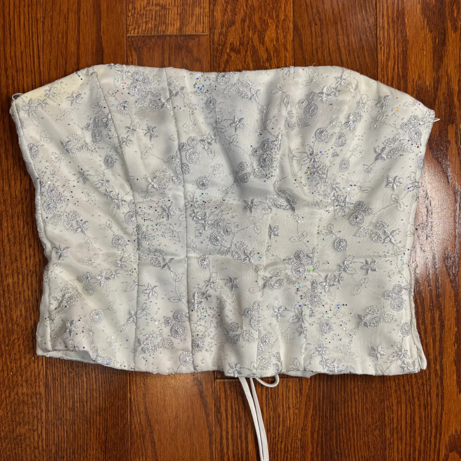 Vintage beaded floral embroidery blondie nites white/ivory corset top with lace up back and side zipper By Linda Bernell Polyester and acetate Size 5 Pit to pit about 15-16 inches Pit down about 9.5 inches Spotting near arm pits and inside top, unsure if dry cleaning will do the trick! Selling as is
