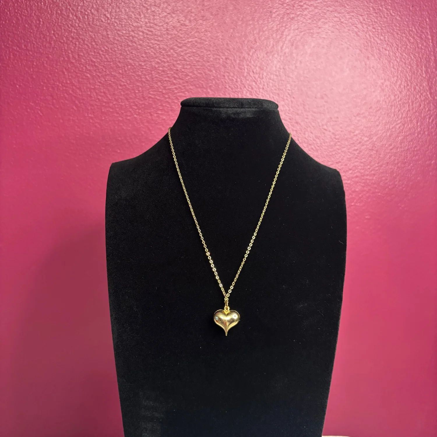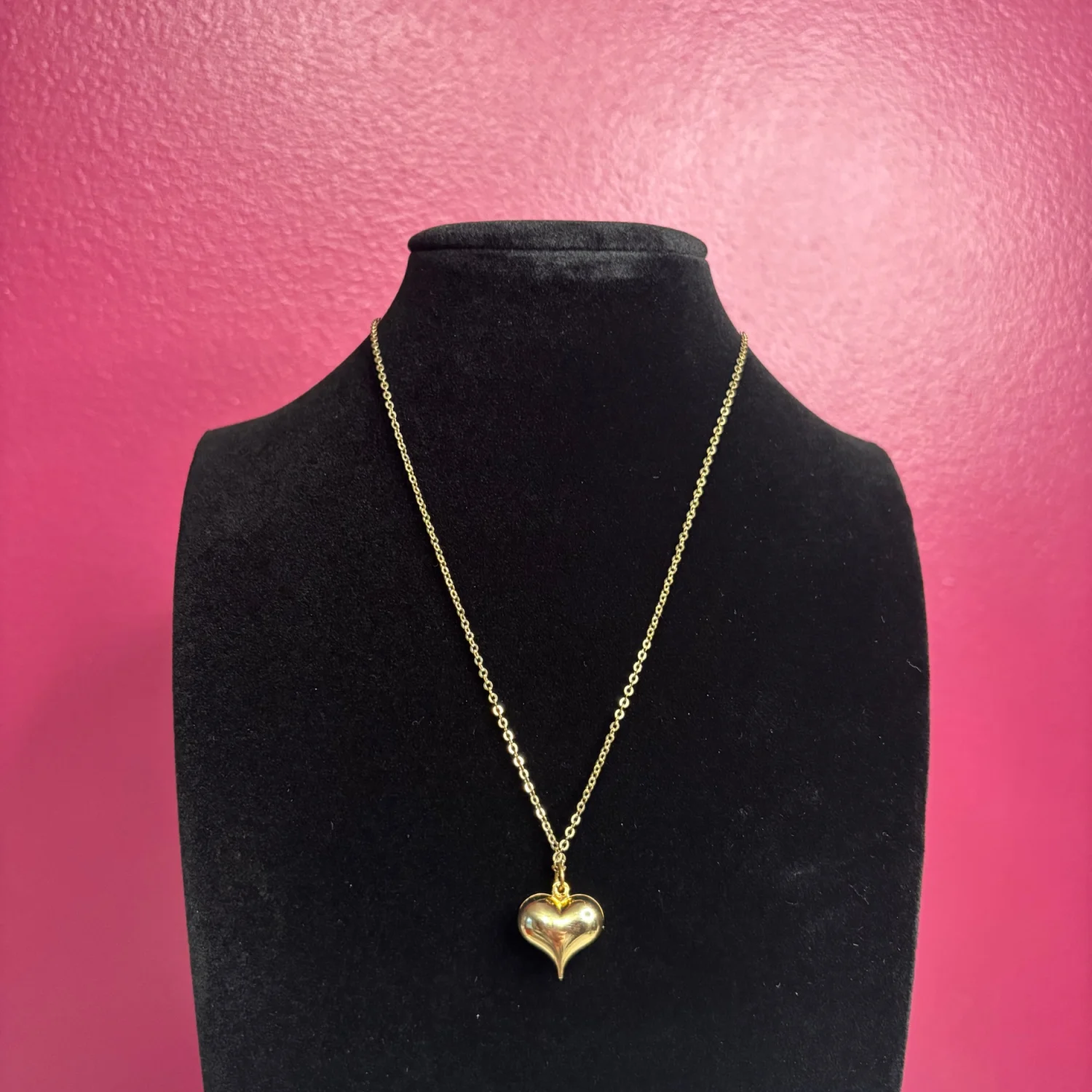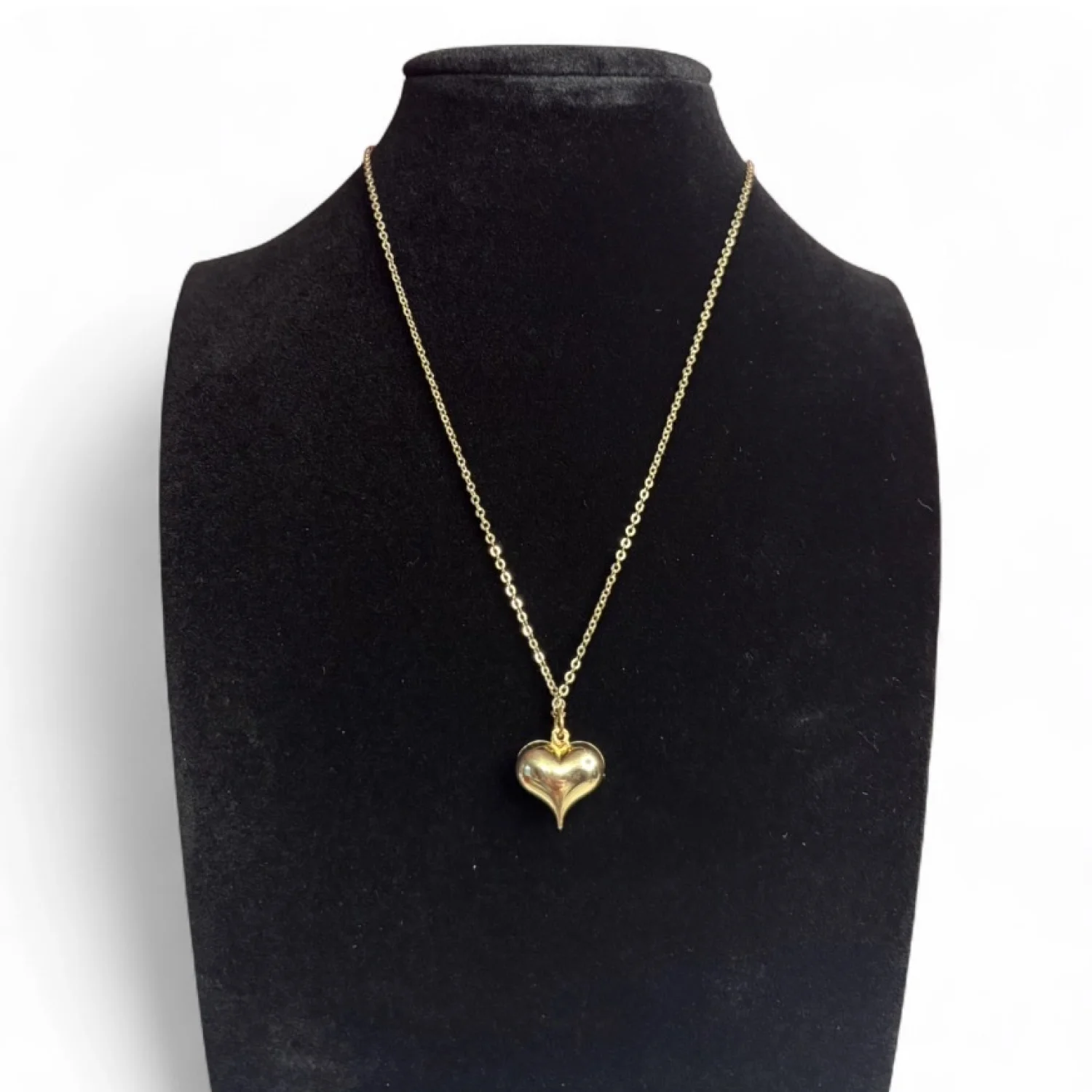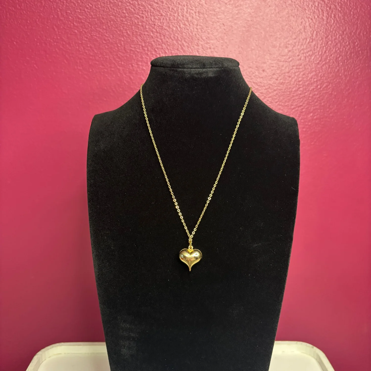 Vintage gold tone puffy heart pendant necklace Super unique and stylish About 8.5 inches long Coquette, ballet core, love, vintage, romantic, soft girl, old money