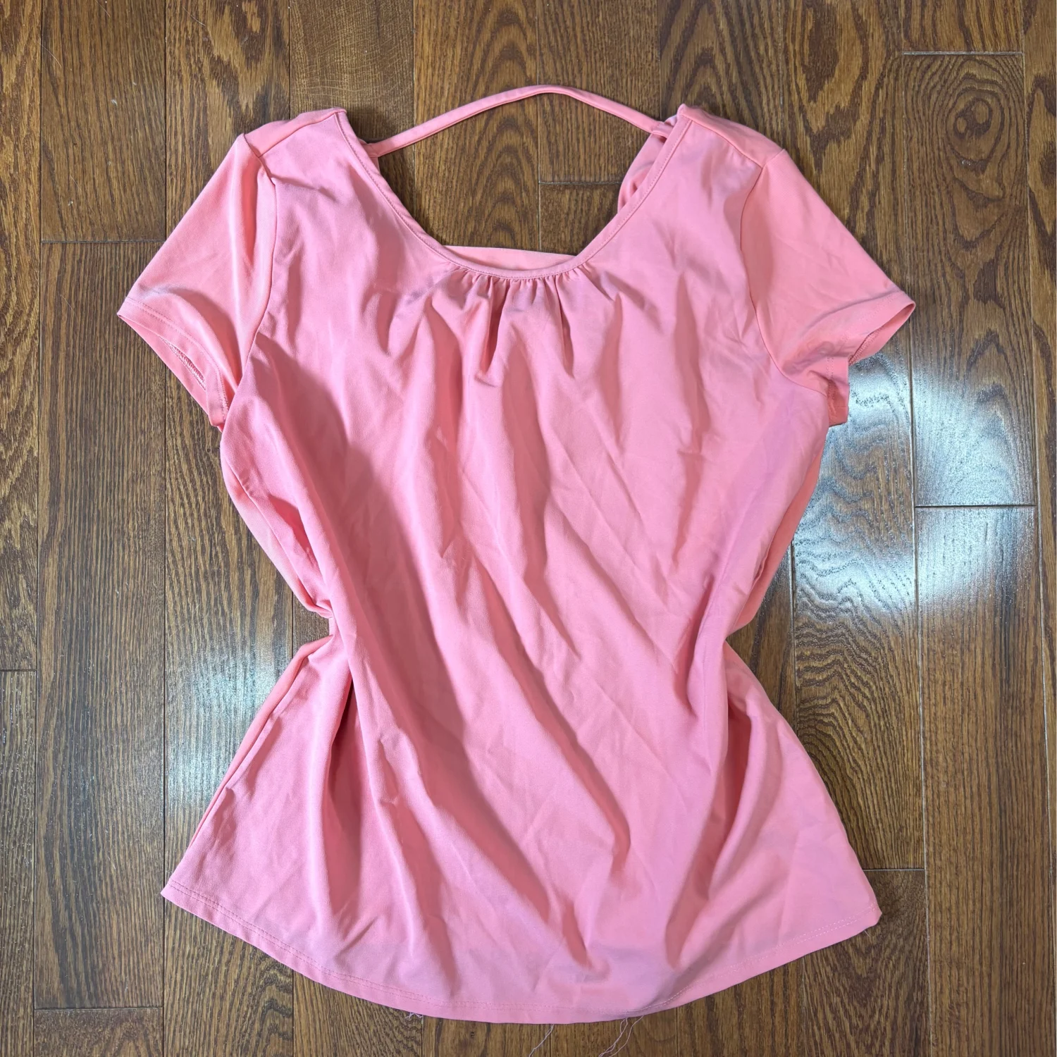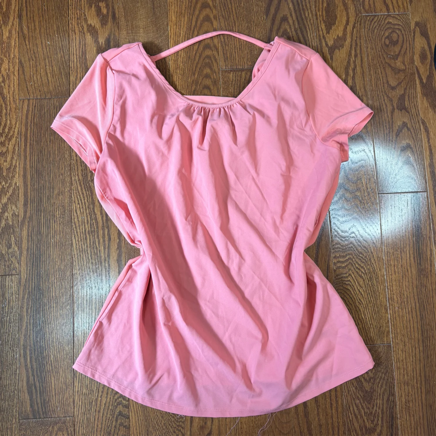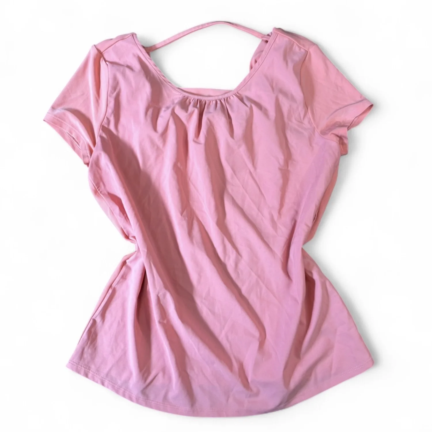 White House black market pink stretchy open back short sleeve top