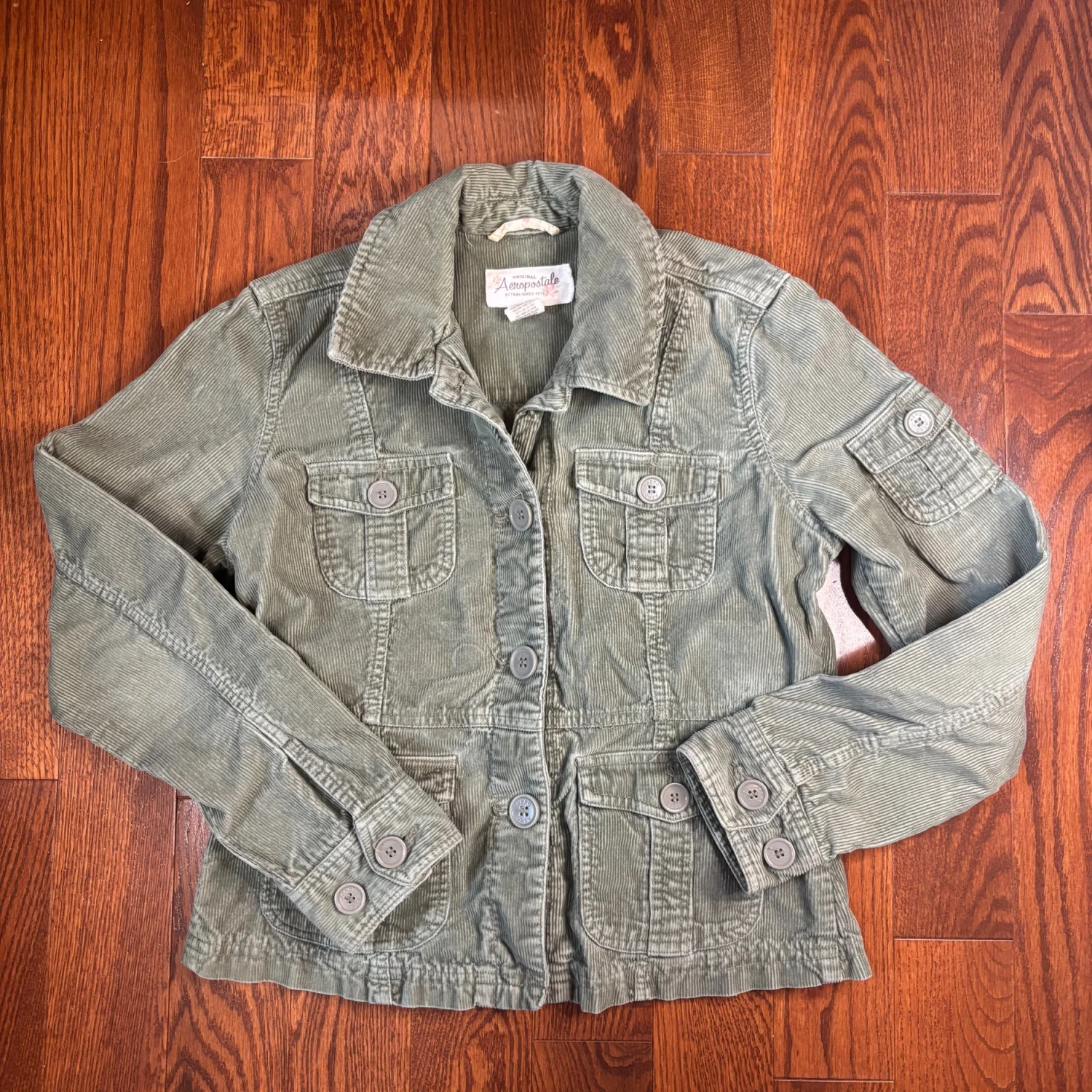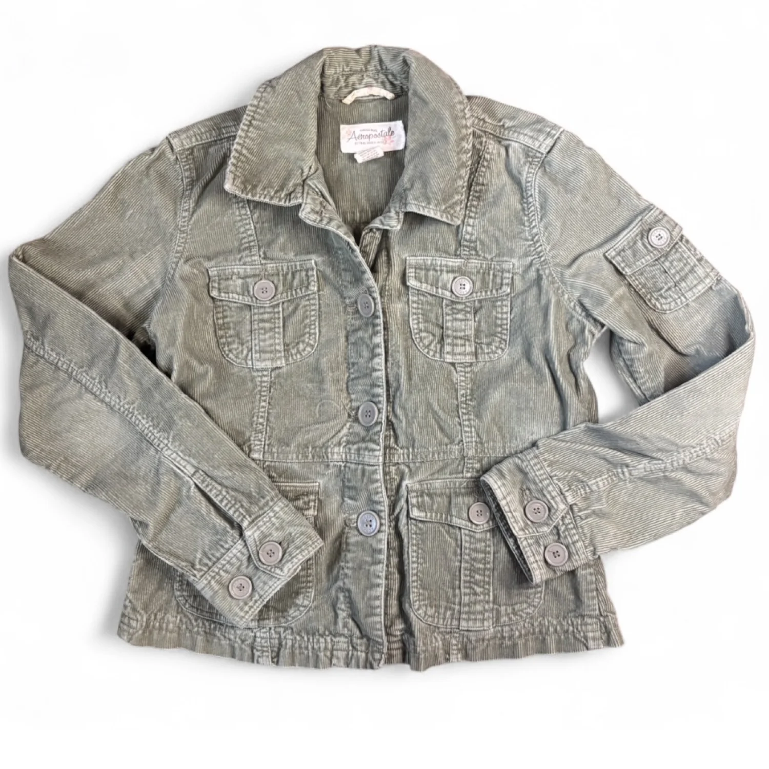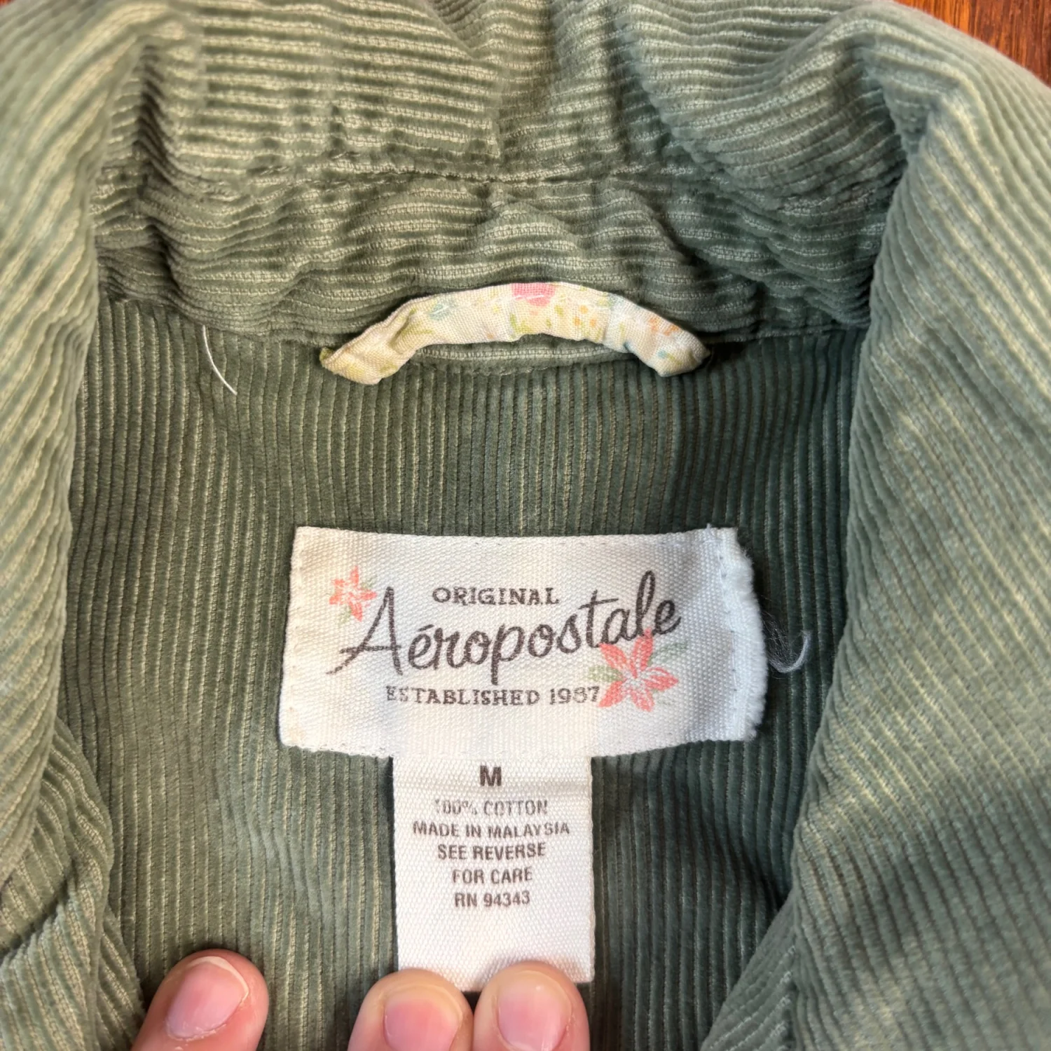 This item is a Y2K Aeropostale green corduroy utility jacket featuring a button-up front and multiple pockets. Size medium but may fit a small best Pit to pit 18 inches Pit down 12 inches Arms 17 inches Small spot on bottom left shown in photos Otherwise In Great condition! I die, Y2K, cottage core, tomboy chic, coastal cowgirl 100% cotton