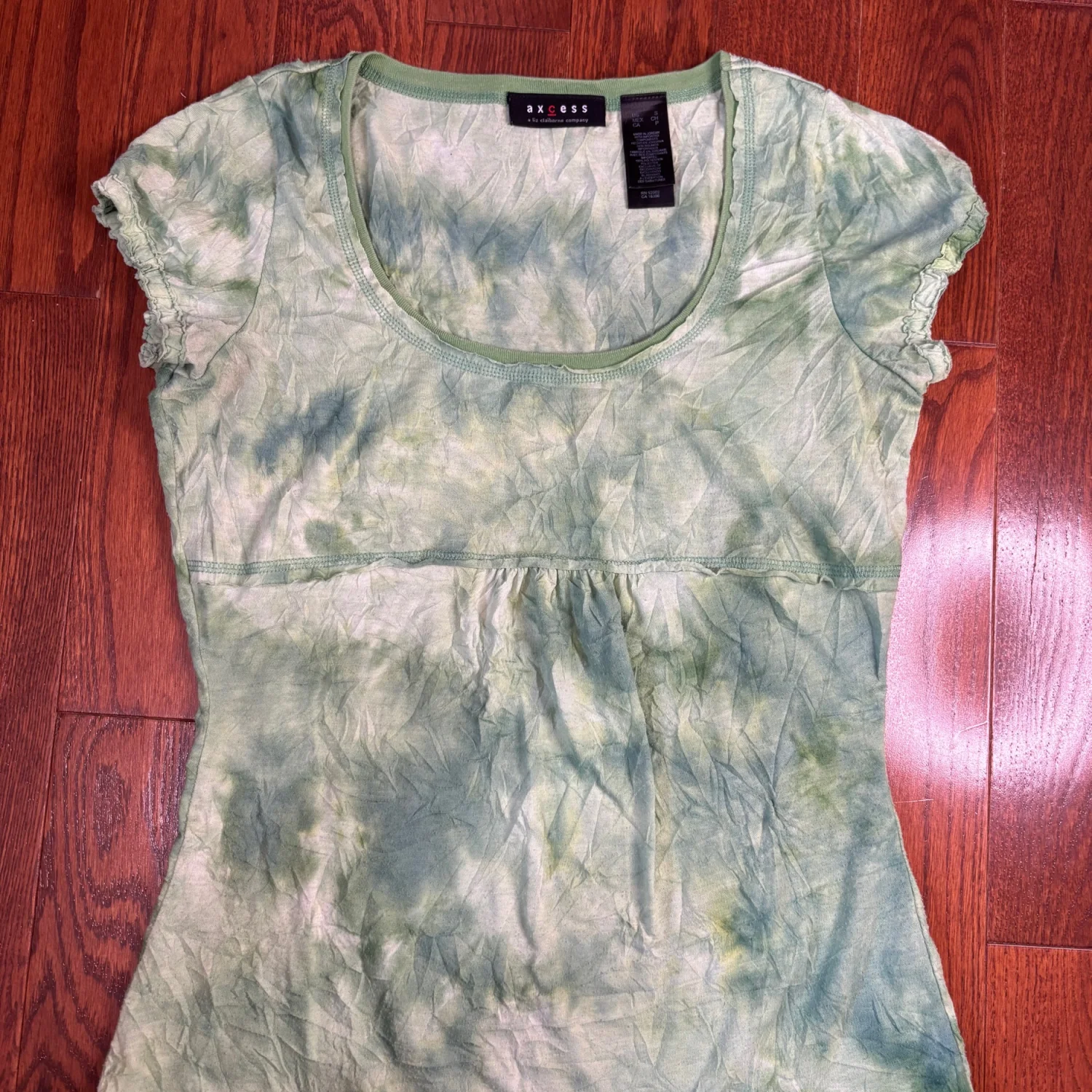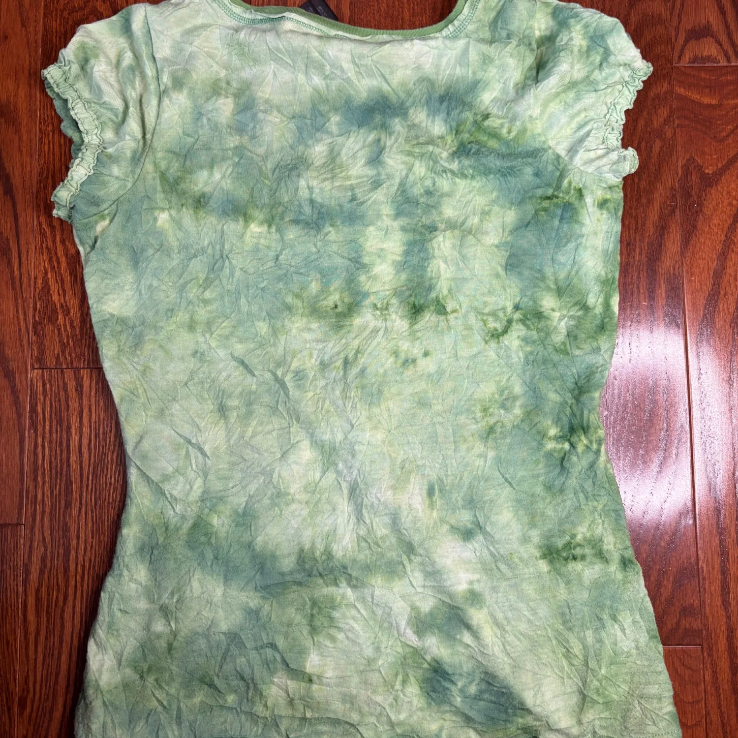 Y2K vintage green ruffle tie dye short sleeve top from Axcess. Size small, great condition, material is slightly see through, with general wear to material (pilling). Super cute and perfect for warm weather Vibrant green color