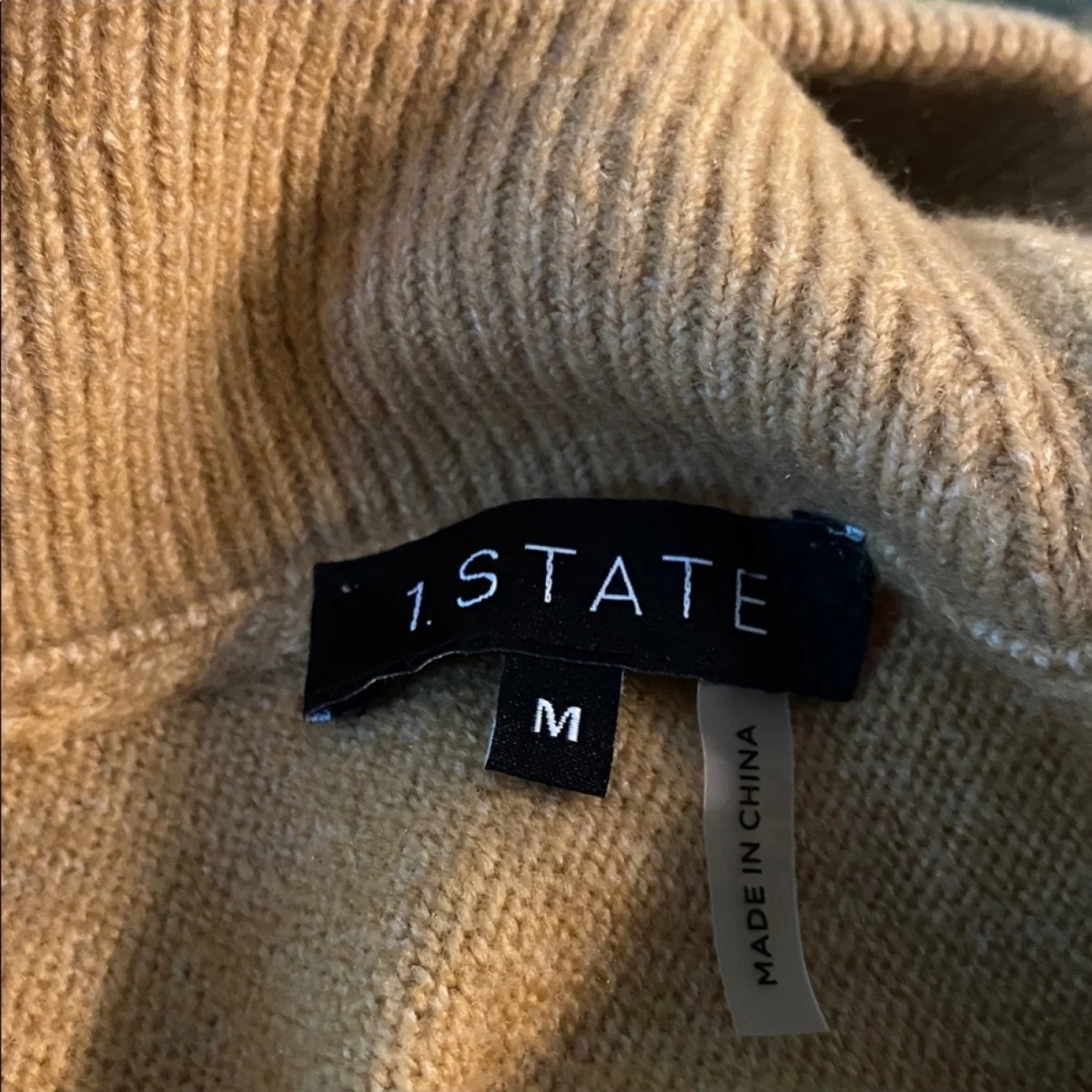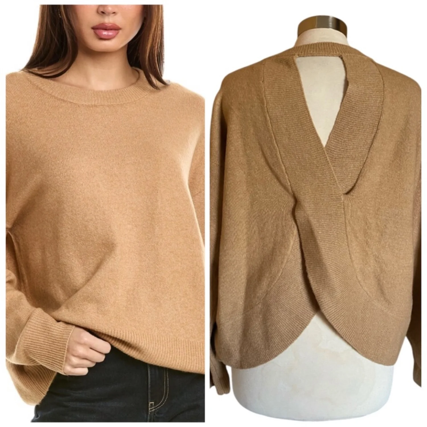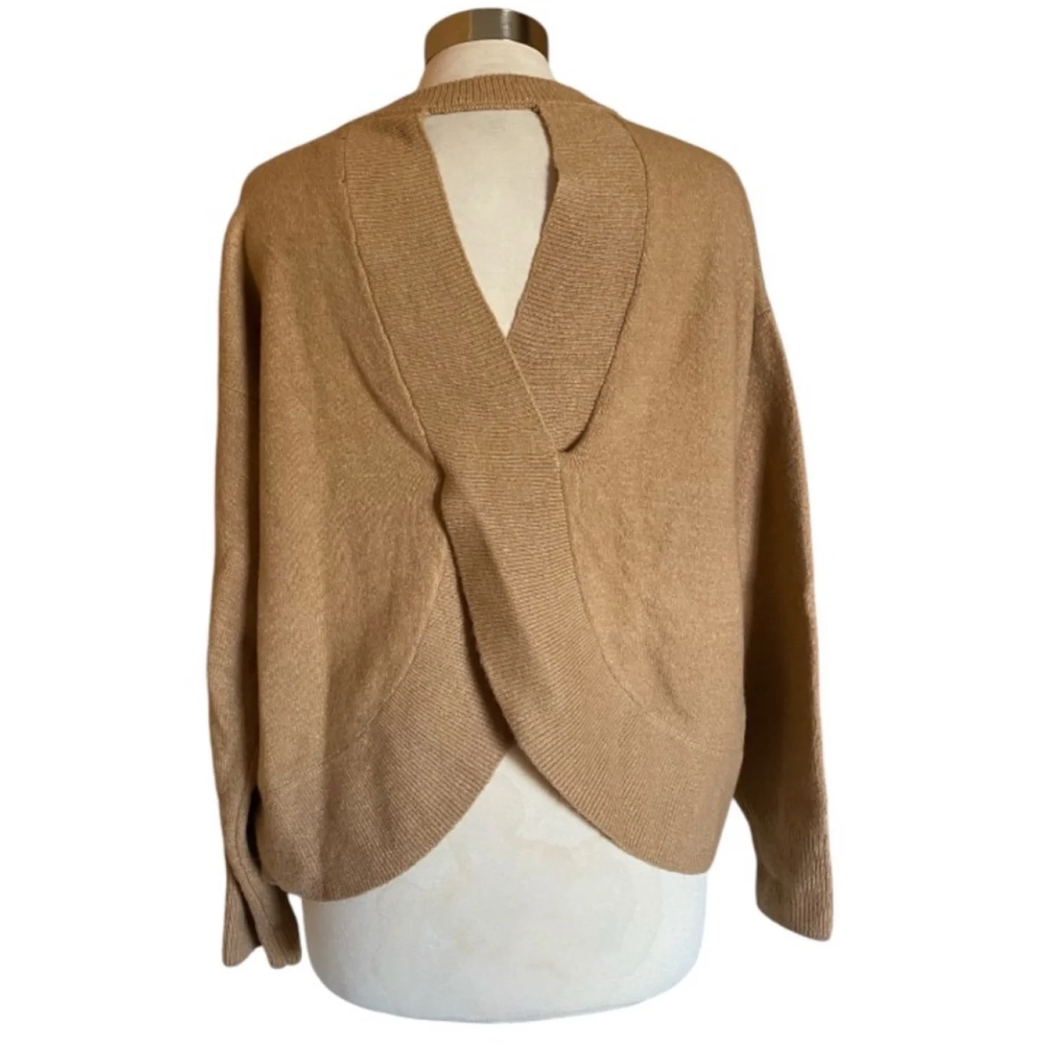 1.state Crossback Sweater In Camel M Size: Medium Condition: very good, no noted flaws • Crewneck • Long sleeves, ribbed cuffs • Pullover style • Cutout detail at back neck • Ribbed hem, crossover detail at back hem • Imported SIZE & FIT • Fits true to size, order your normal size • Designed for a relaxed fit • Model measurements: 5'10" height, 33.5" bust, 23.5" waist, 34.5" hips, wearing a size small MATERIALS & CARE • 73% acrylic/24% polyester/3% spandex • Hand wash Laying flat, measuring from: Pit to pit is approx. 22in. Shoulder to hem approx. 22.5in.
