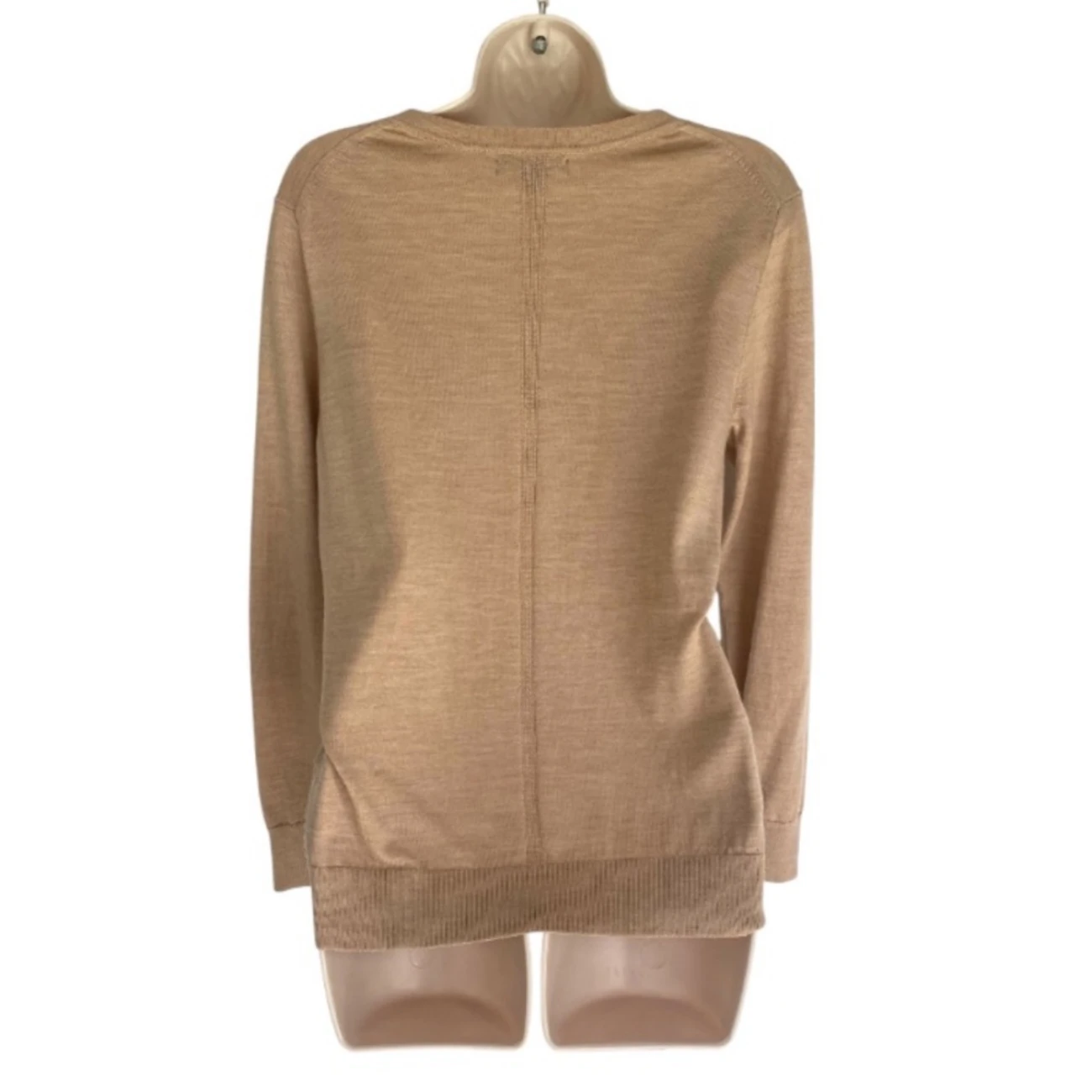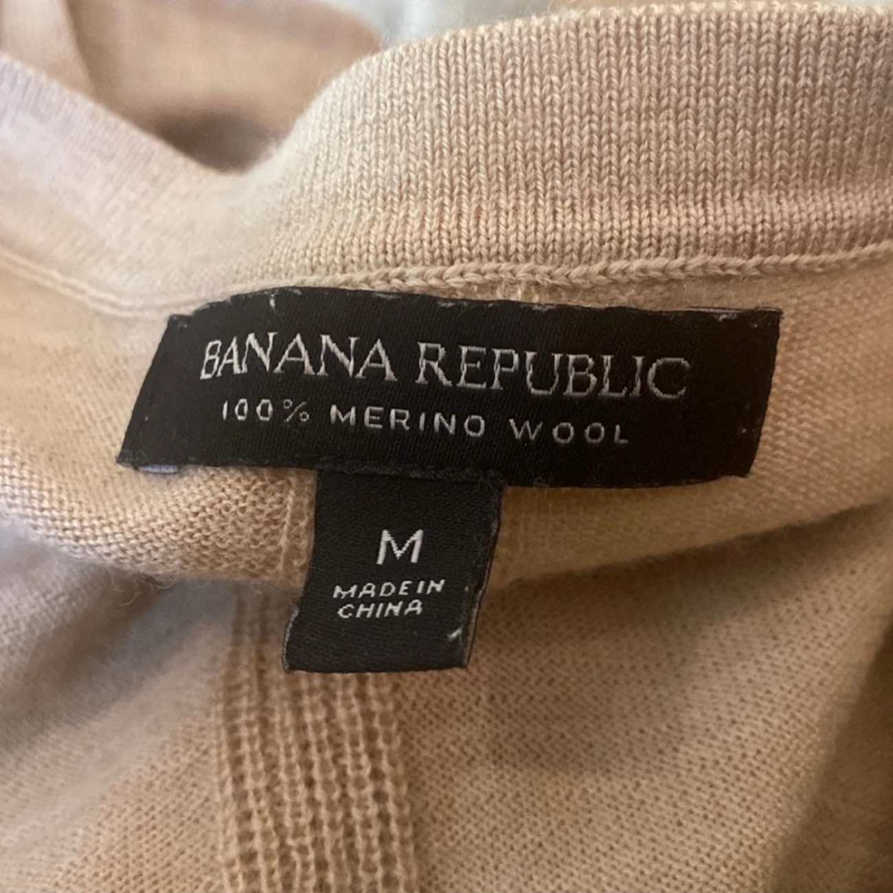 Banana Republic WASHABLE MERINO V-NECK SWEATER M Neutral Tan Size: Medium Condition: very good, no noted flaws Great to wear alone in the fall or under a blazer for extra warmth Wardrobe staple Versatile Laying flat, measuring from: Pit to pit is approx. 18in. Shoulder to hem approx. 25in.