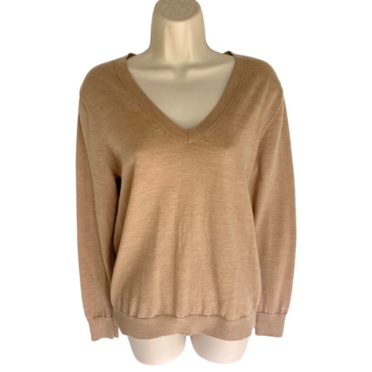 Banana Republic WASHABLE MERINO V-NECK SWEATER M Neutral Tan