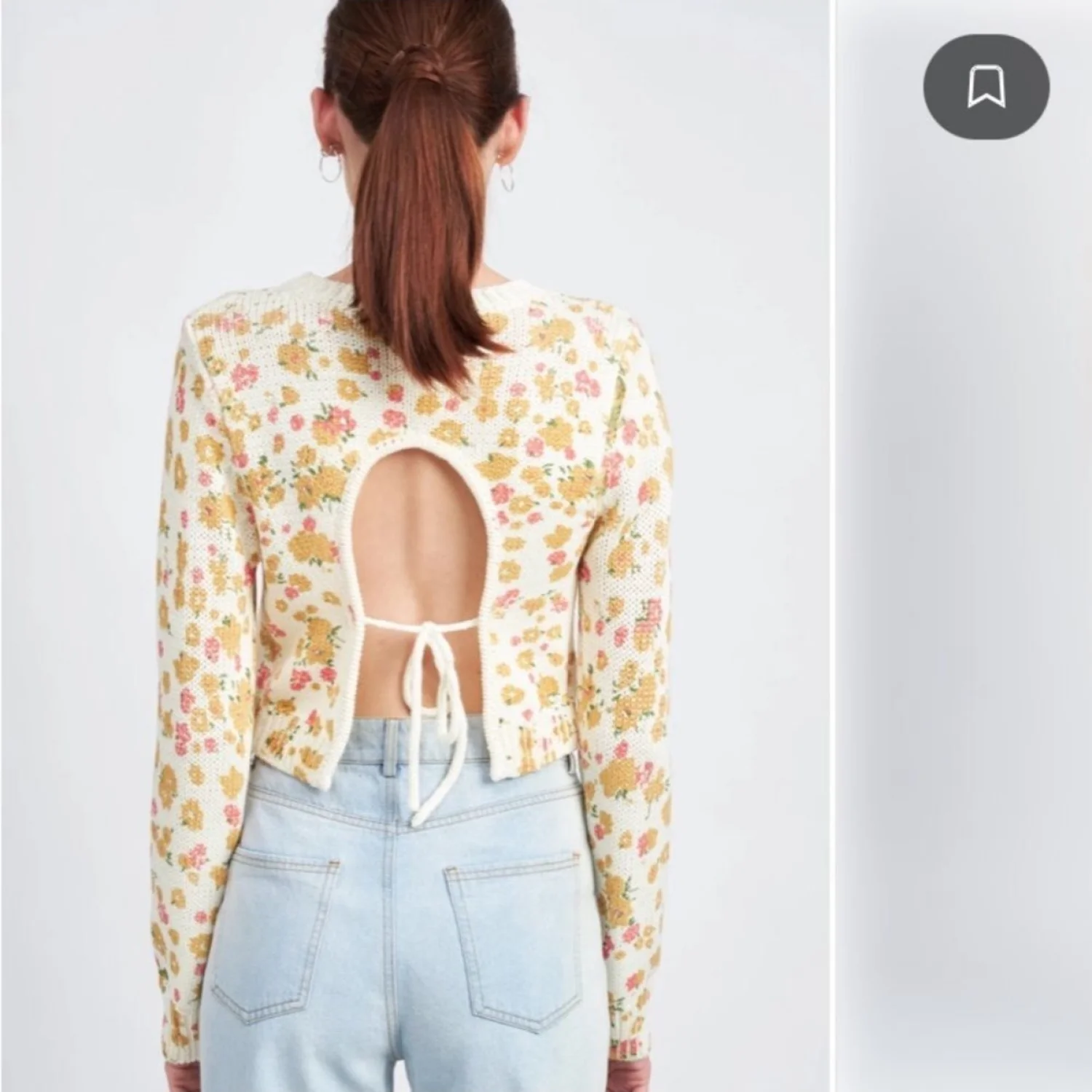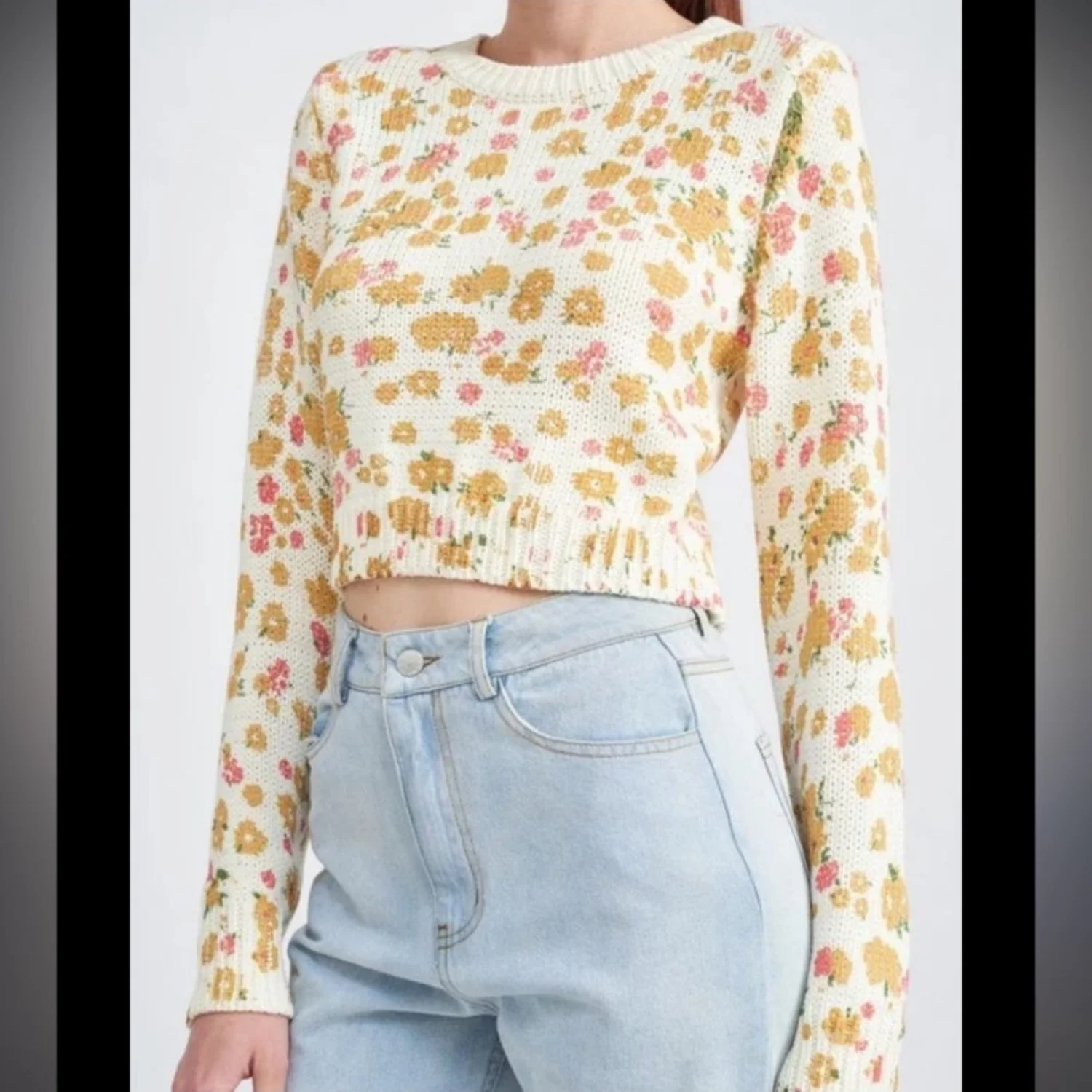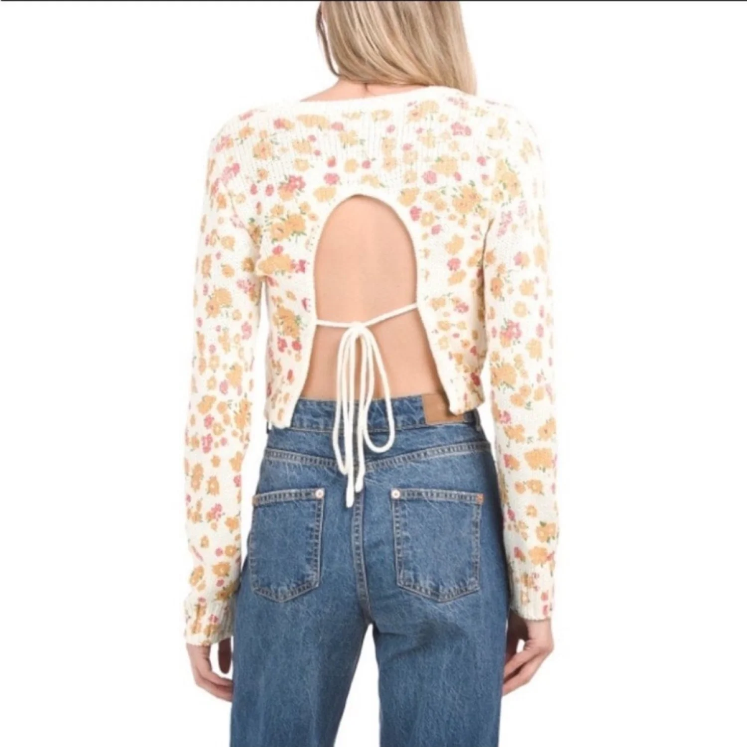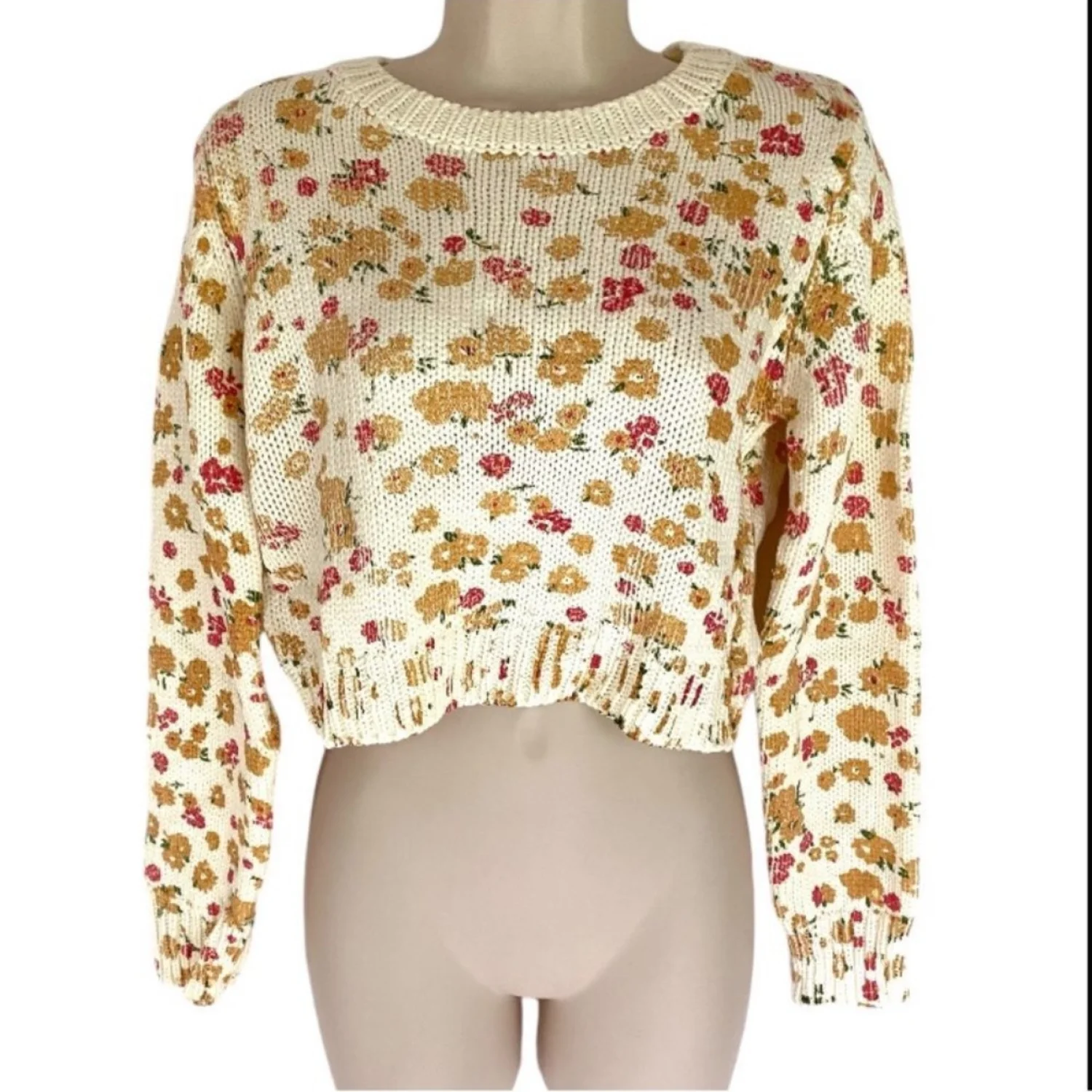 Emory Park Everly Sweater Open Back Floral S NWT Size: Small Condition: New with tags Features: Add Spring colors to your closet with this crewneck pullover sweater from Emory Park. This floral patterned long-sleeve sweater brings an updated look to your wardrobe. Fashioned in a comfortable mid-crop fit, it features an adjustable back tie with ribbed cuffs and hem. • 100% Acrylic Imported • Contrasted Sweater Top With Back Cut Out MSRP $75 Laying flat, measuring from: Pit to pit is approx. 17.75in. Shoulder to hem approx. 16in.
