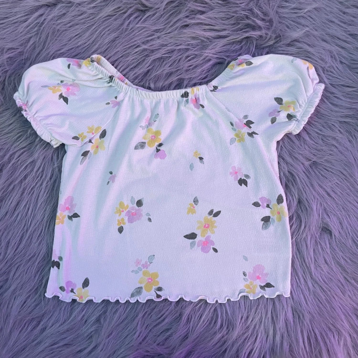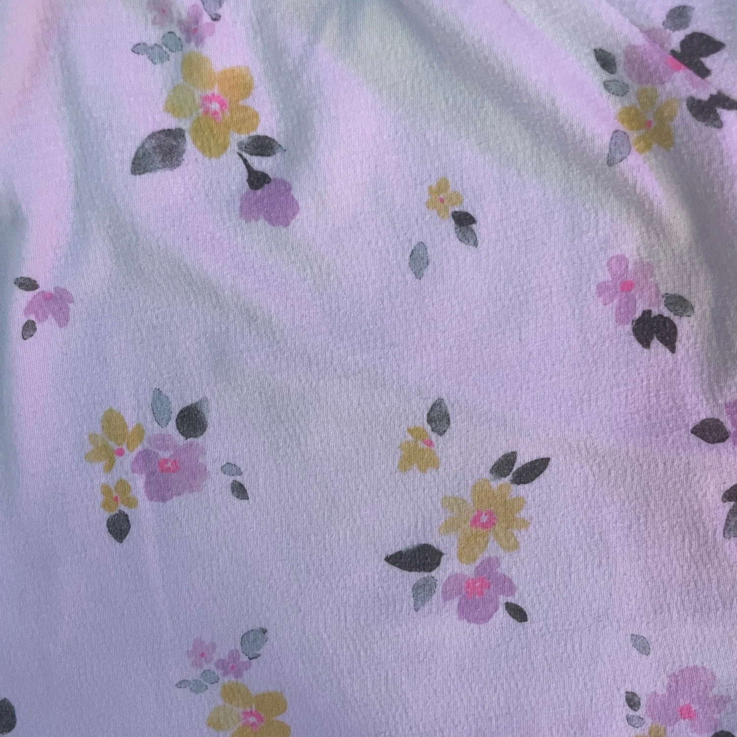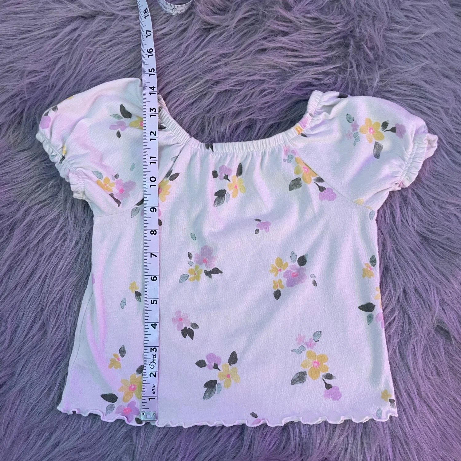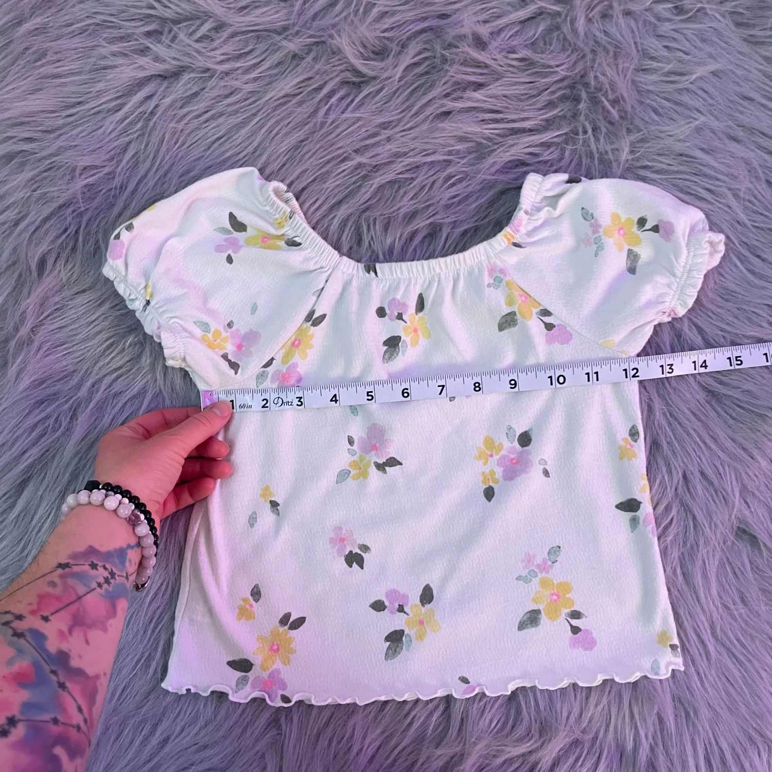 Soft white tee with subtle floral accents. Lightweight and comfy. Cute casual piece for everyday outfits.