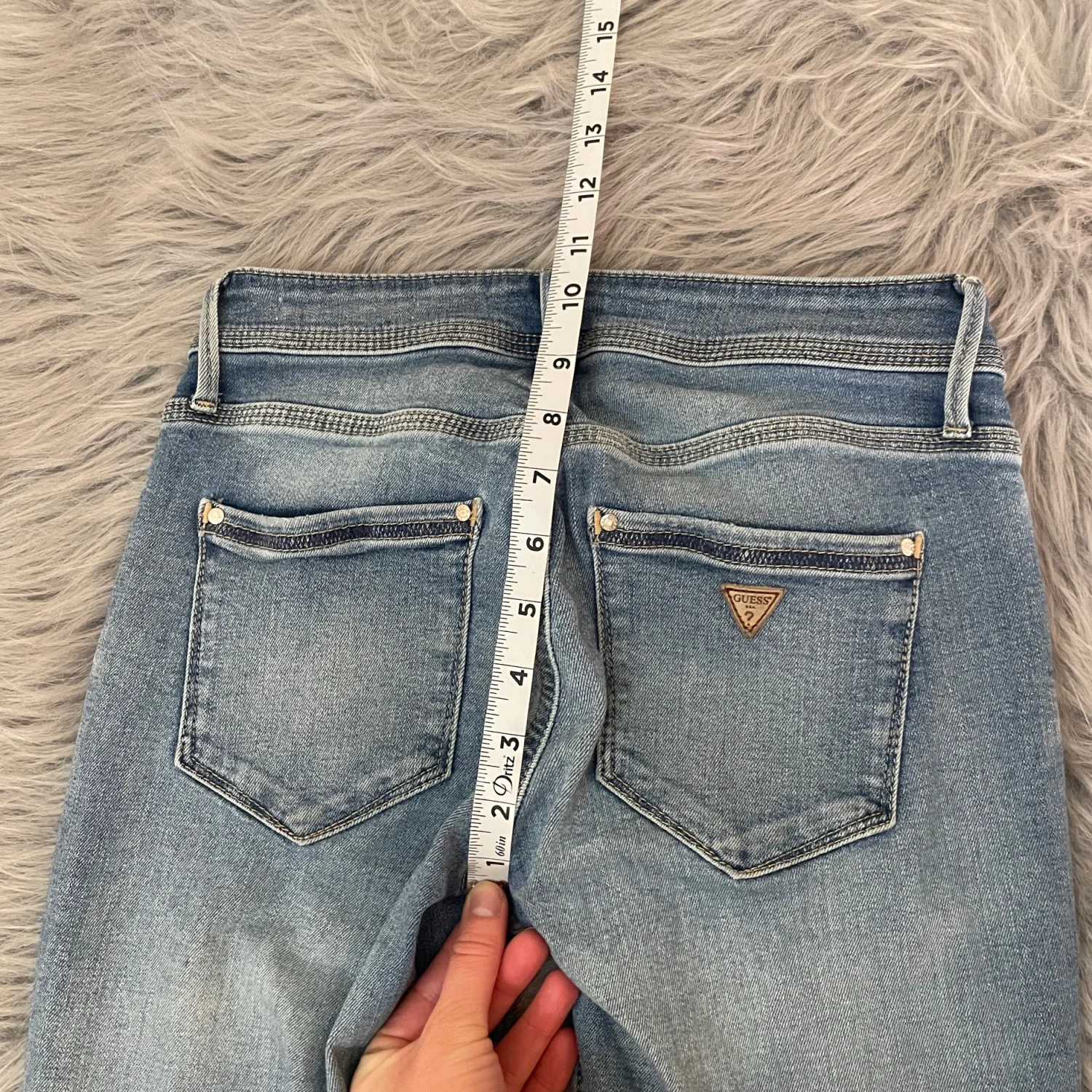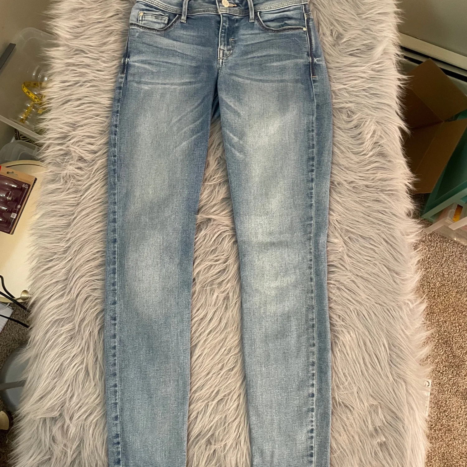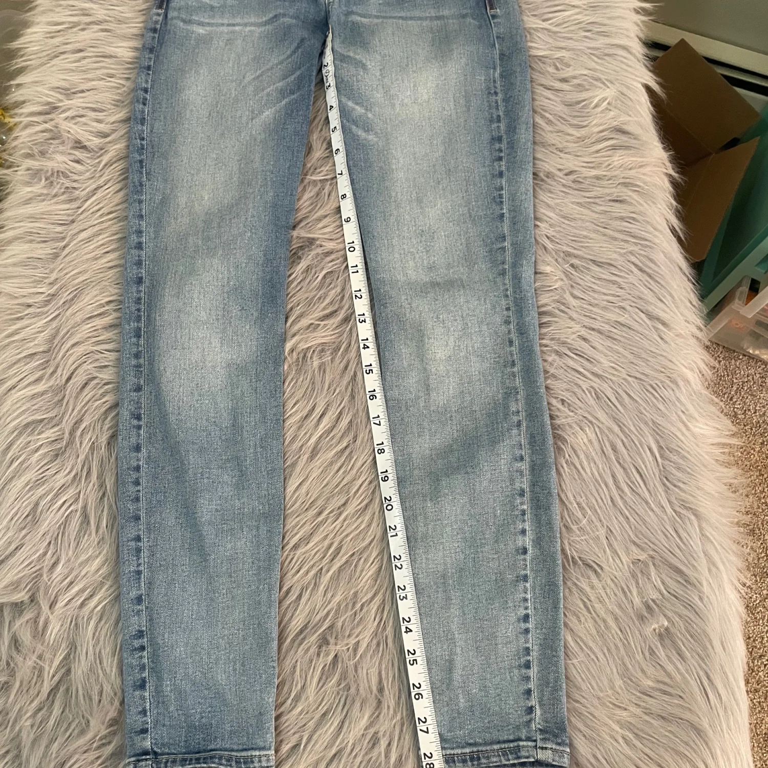 Slim fit skinny jeans with light wash and subtle fading. Stretch denim for comfortable wear. Clean, versatile silhouette for casual outfits. In great condition!