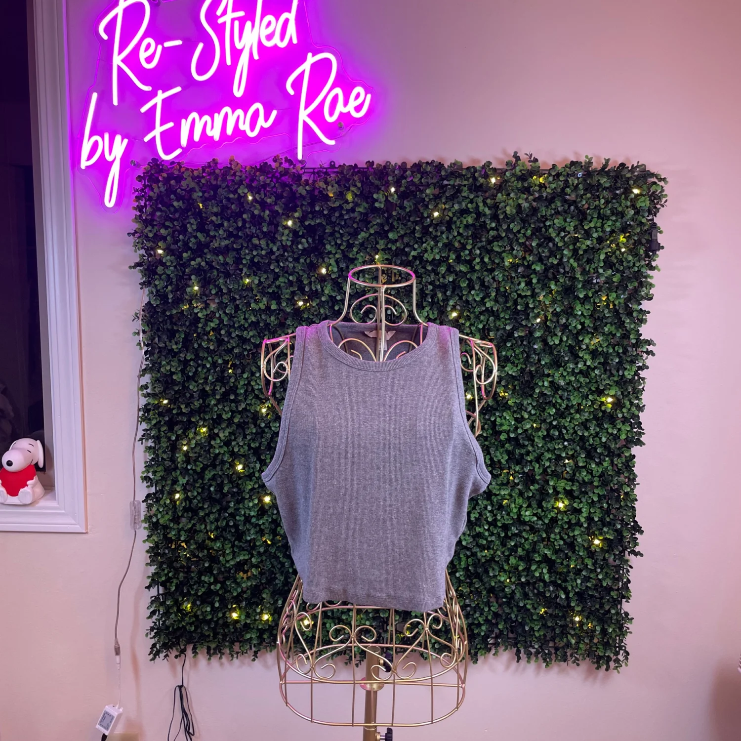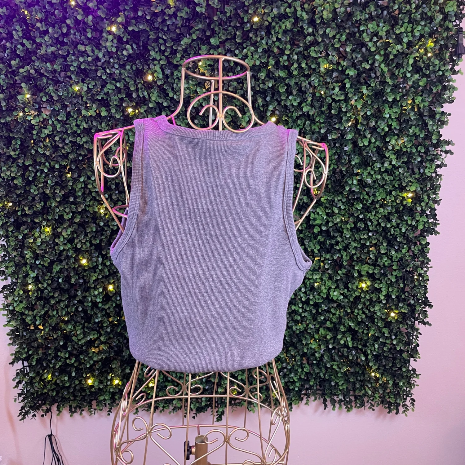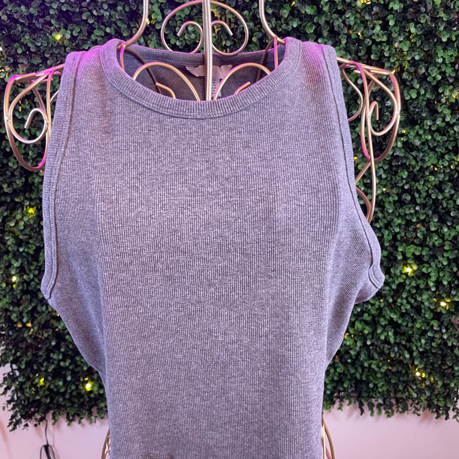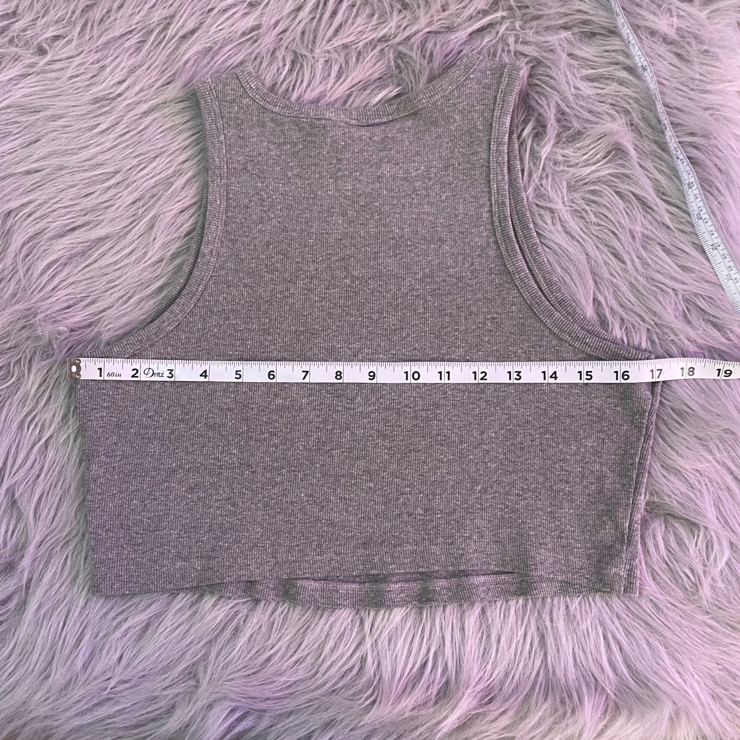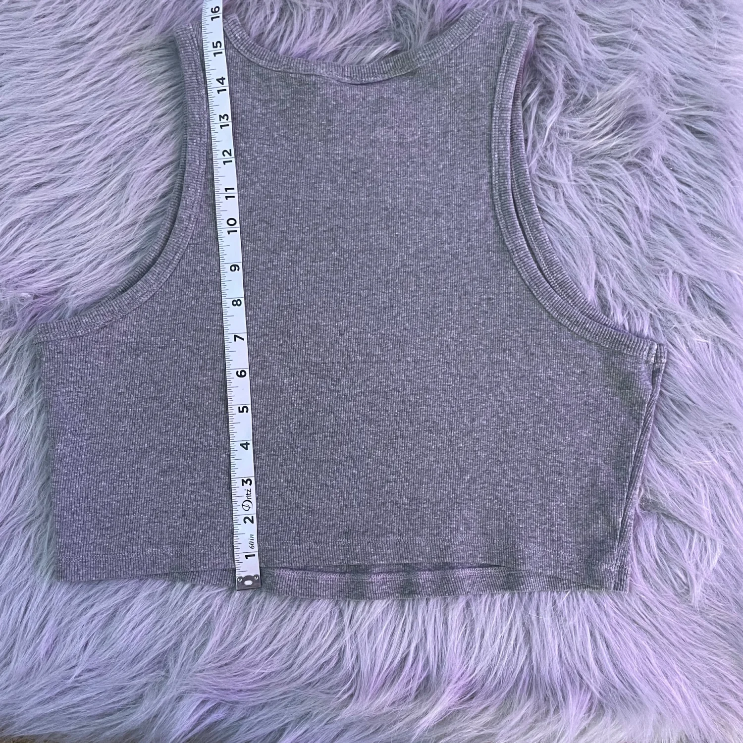 Ribbed knit sleeveless crop top by H&M. Soft stretch fabric with a rounded neckline. Clean, minimalist design for everyday wear.