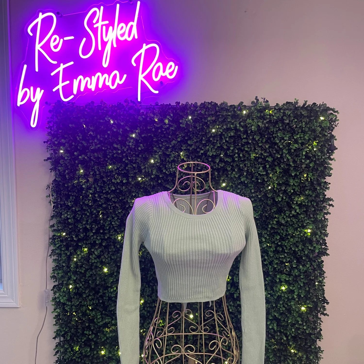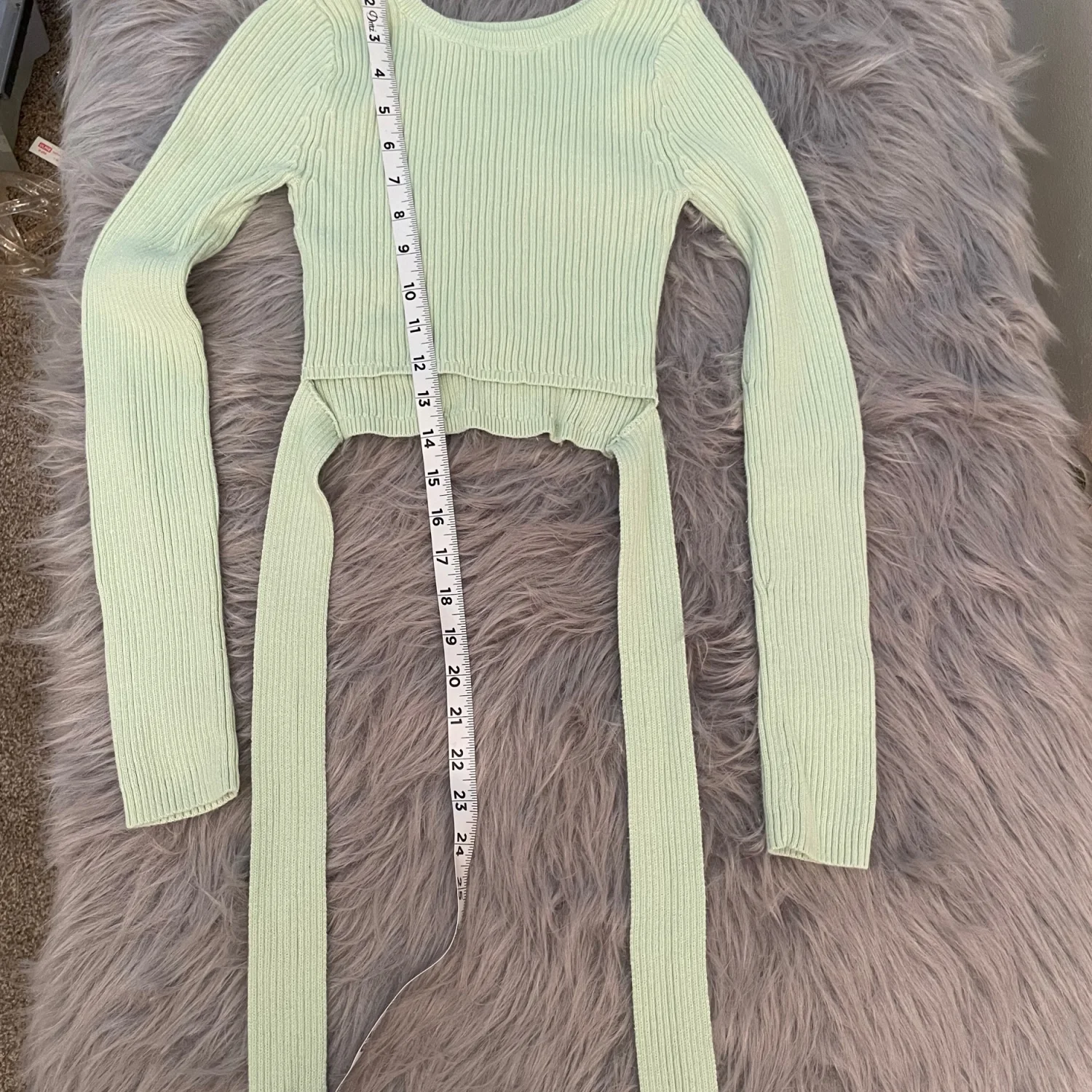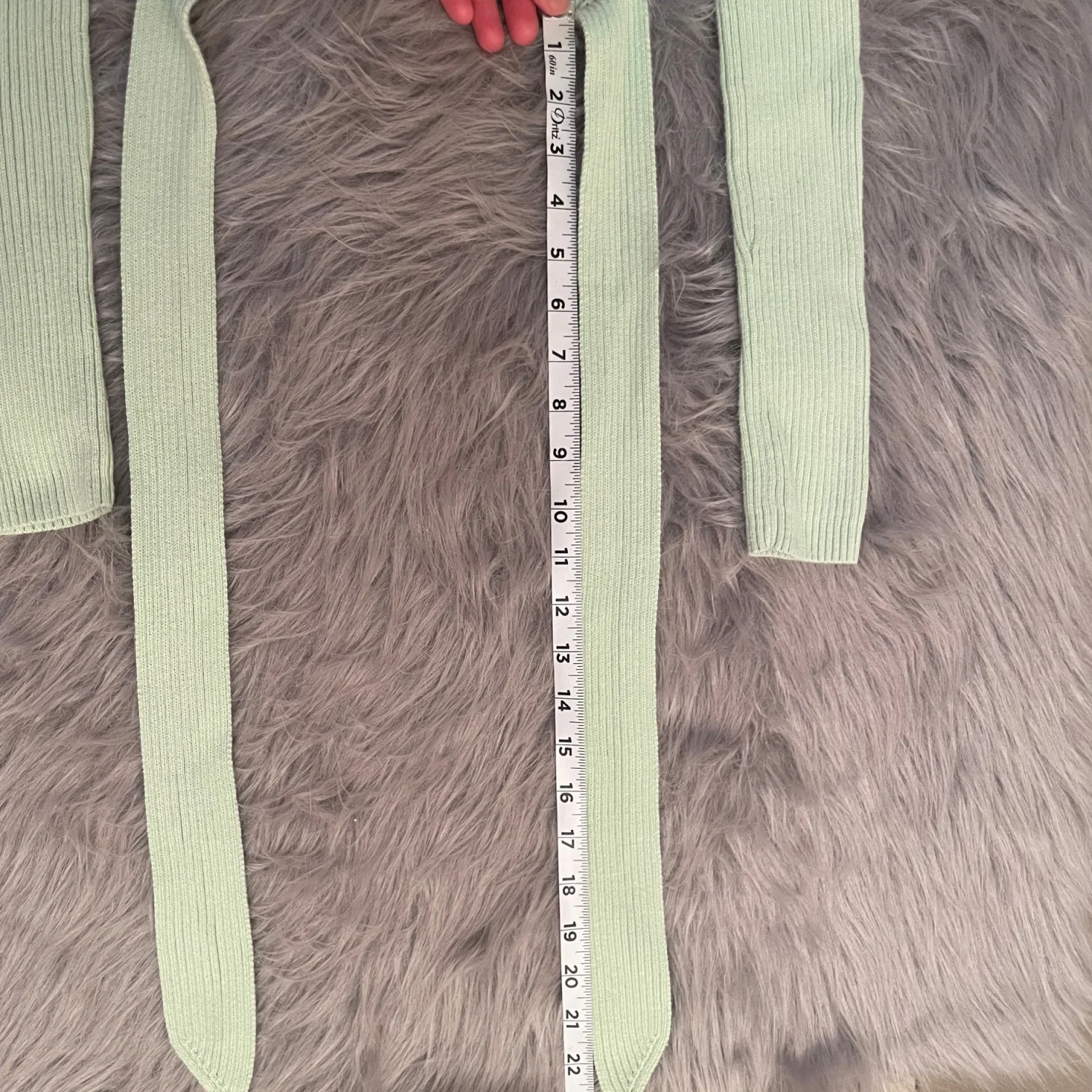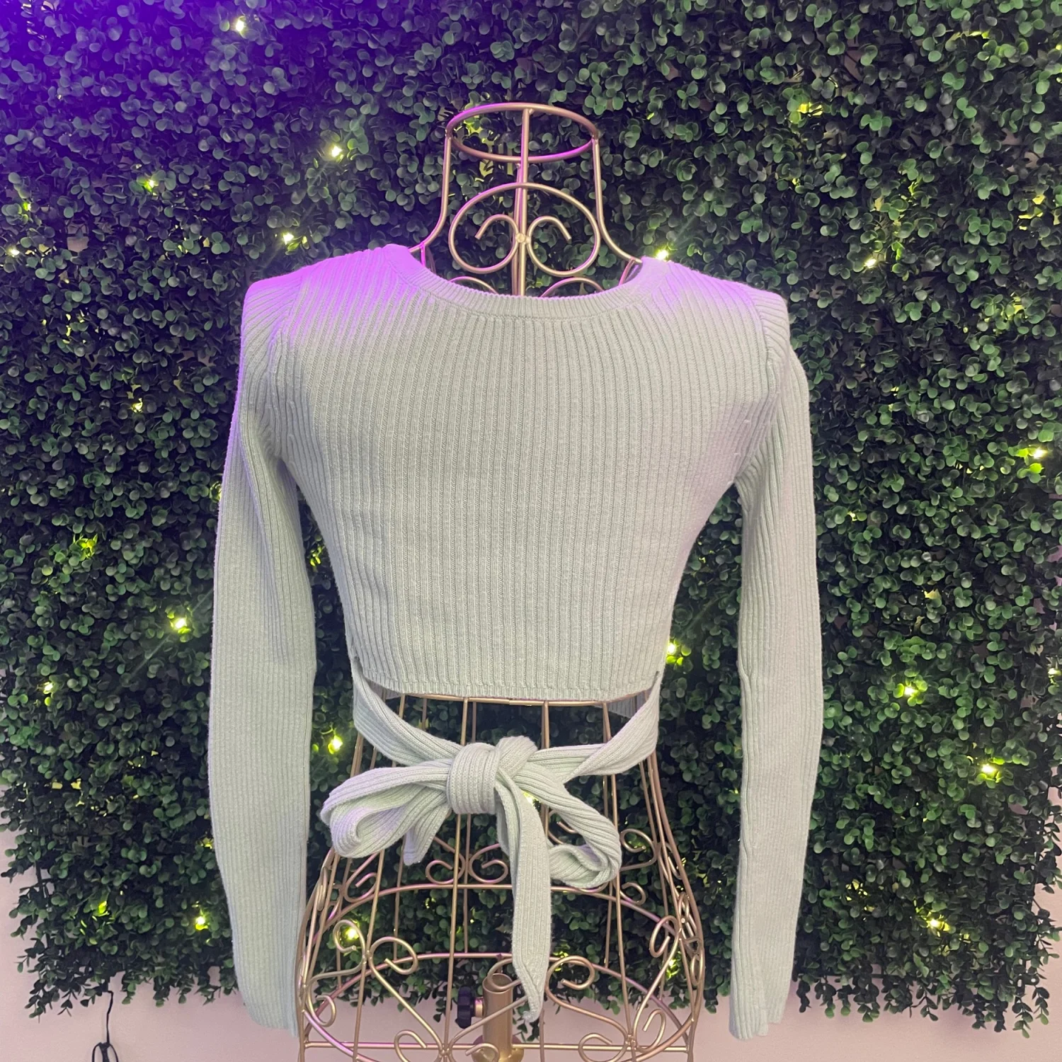 Chic light green ribbed knit top. Features long sleeves and stylish design. Cropped Teen