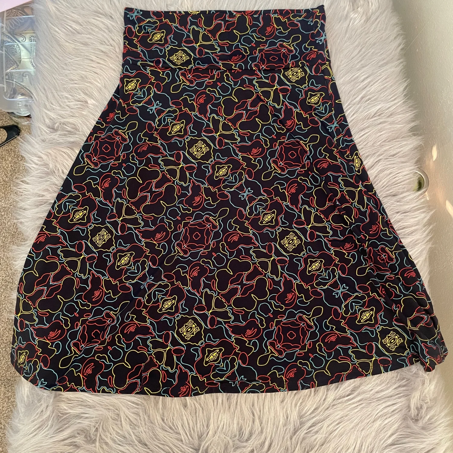 Chic skirt by LuLaRoe. Black base with red and yellow abstract design. Perfect for any occasion. In perfect condition