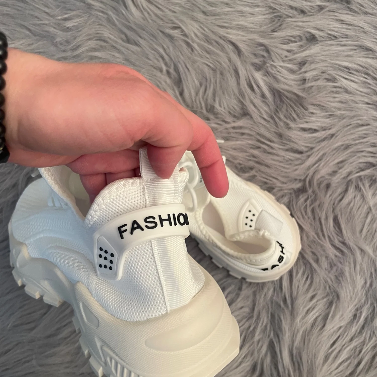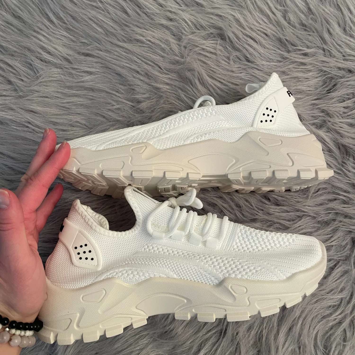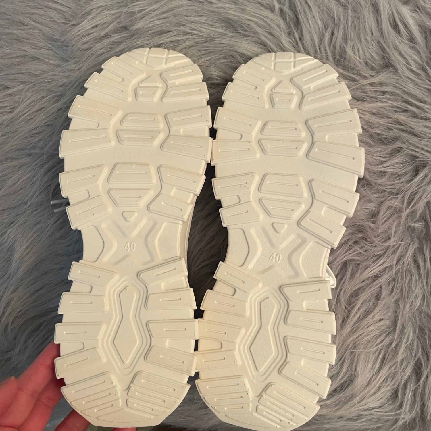 Stylish white sneakers with a modern design. Perfect for casual wear. Never worn. Still have bag they came in. Size 40; so size 9/9.5