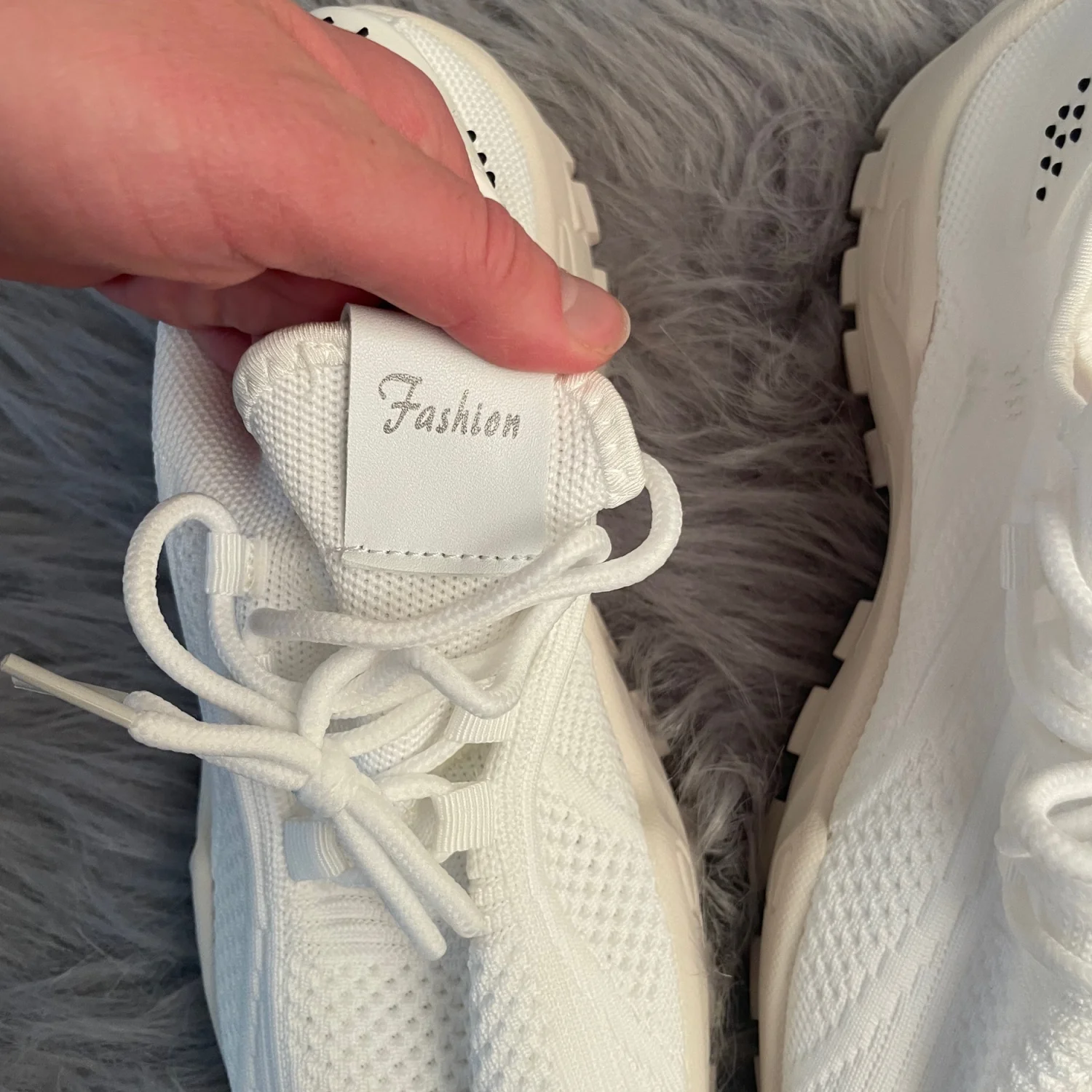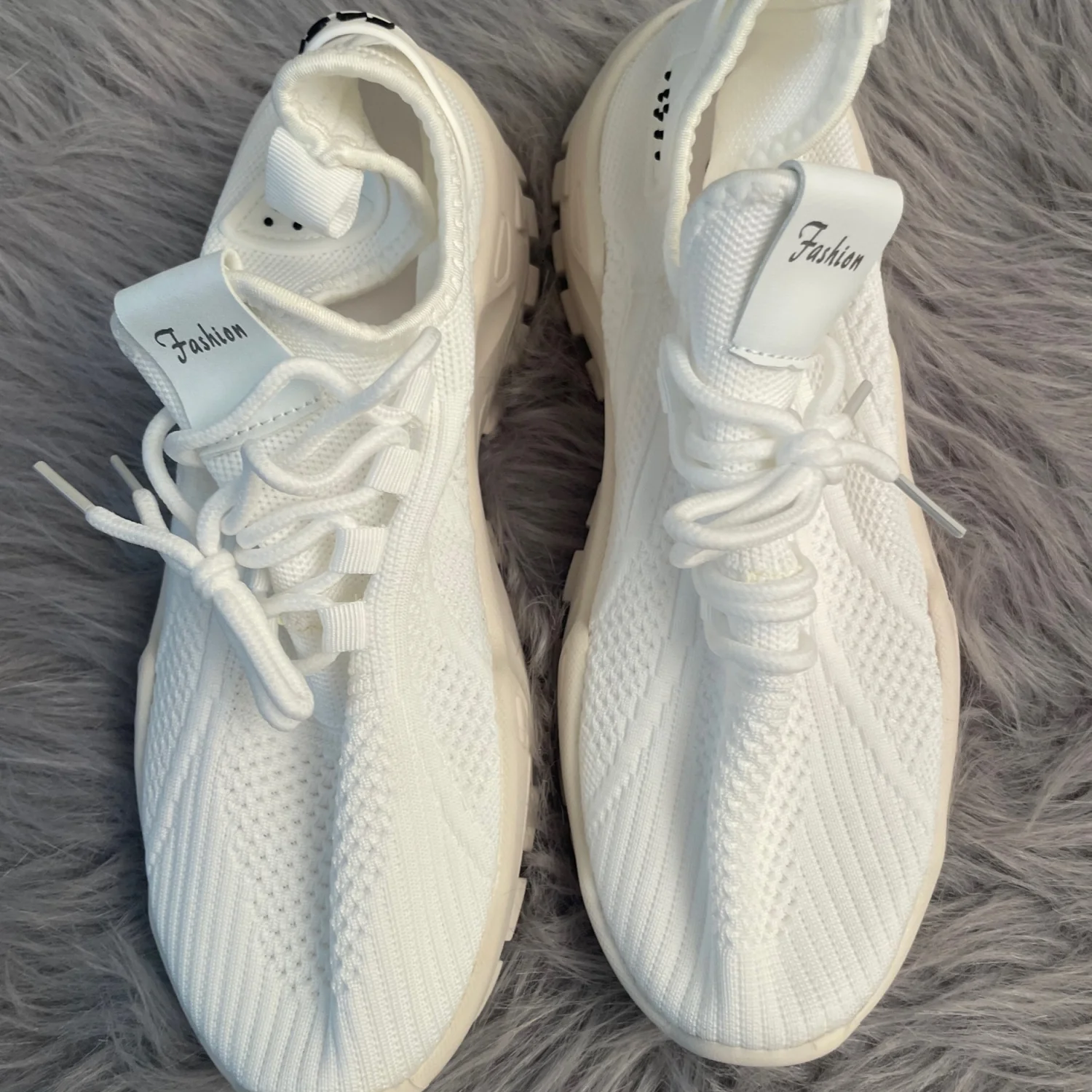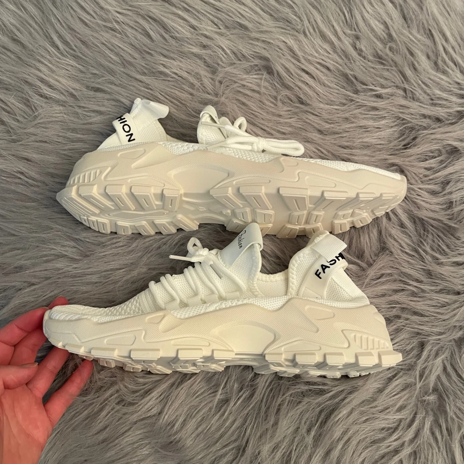 Stylish white sneakers with a modern design. Perfect for casual wear. Never worn. Still have bag they came in. Size 40; so size 9/9.5