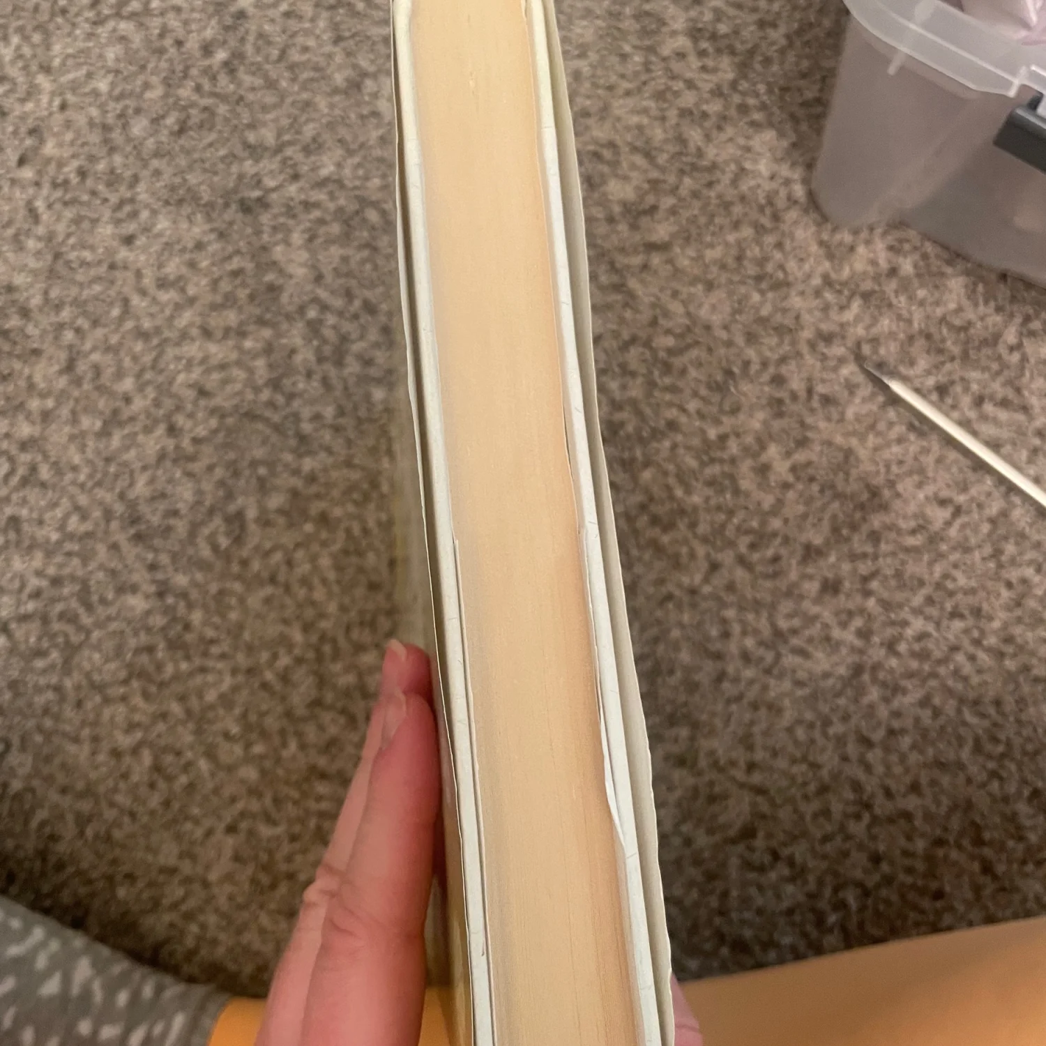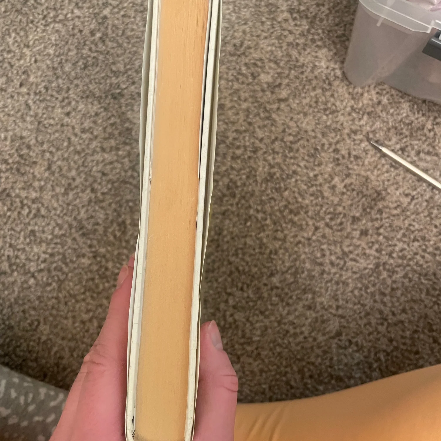 Some staining on front. I did get if from Goodwill so the sticker is partially still on there. There could potentially be underlining or notes.