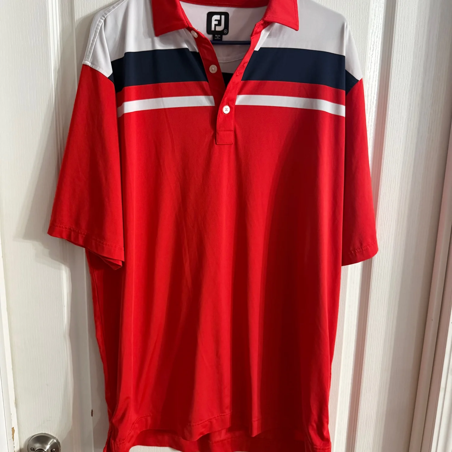FJ FootJoy Men’s Red White Blue Men’s Polo Sz XL. F-166