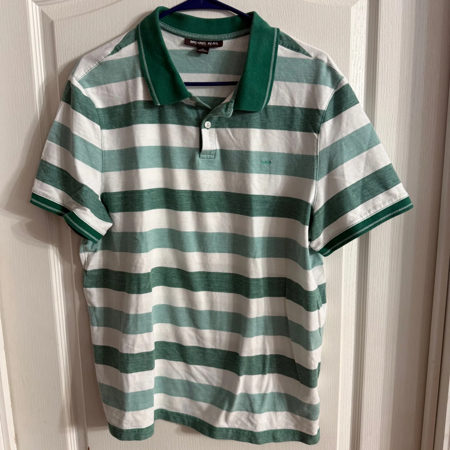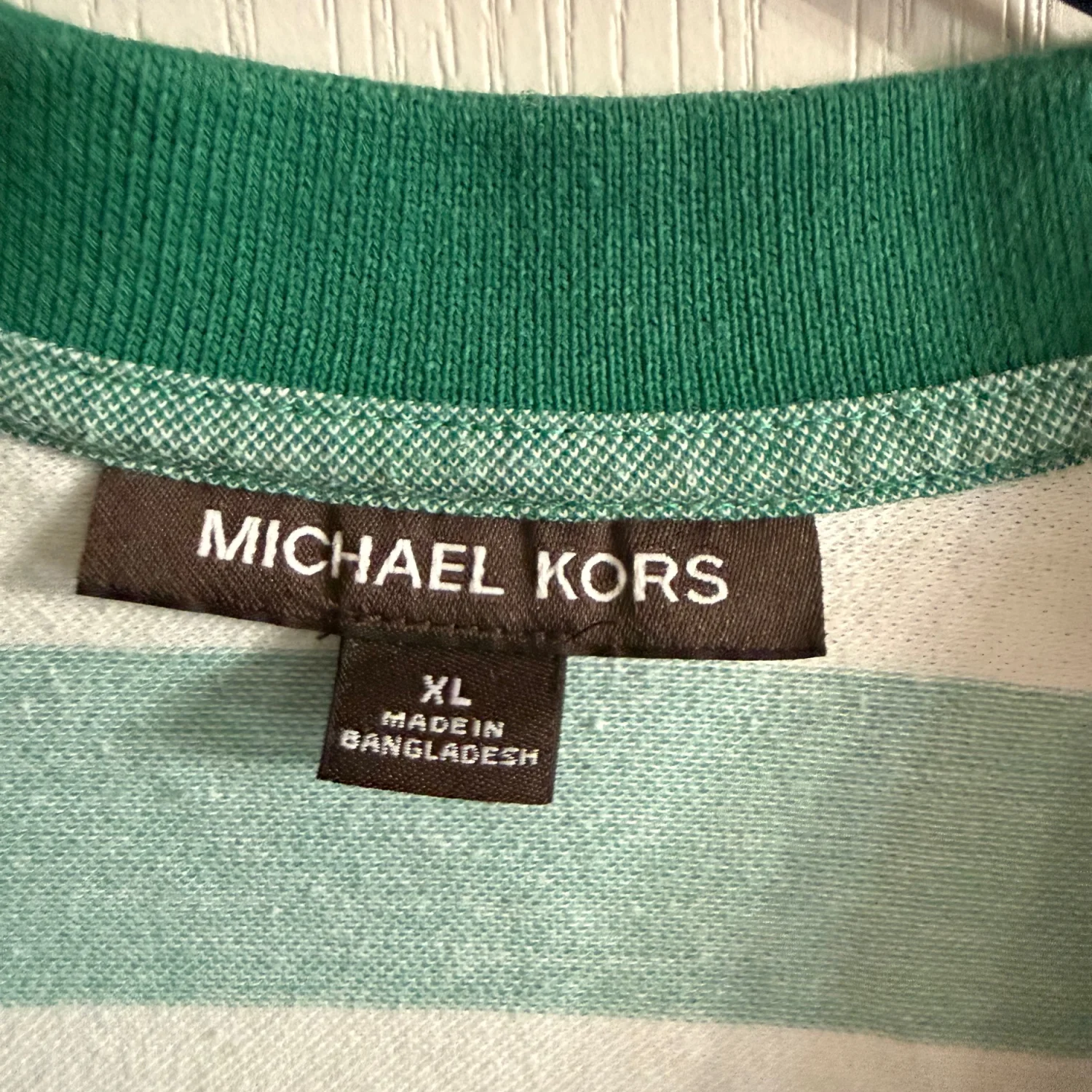 Michael Kors Green White Striped Polo Sz XL. F-164