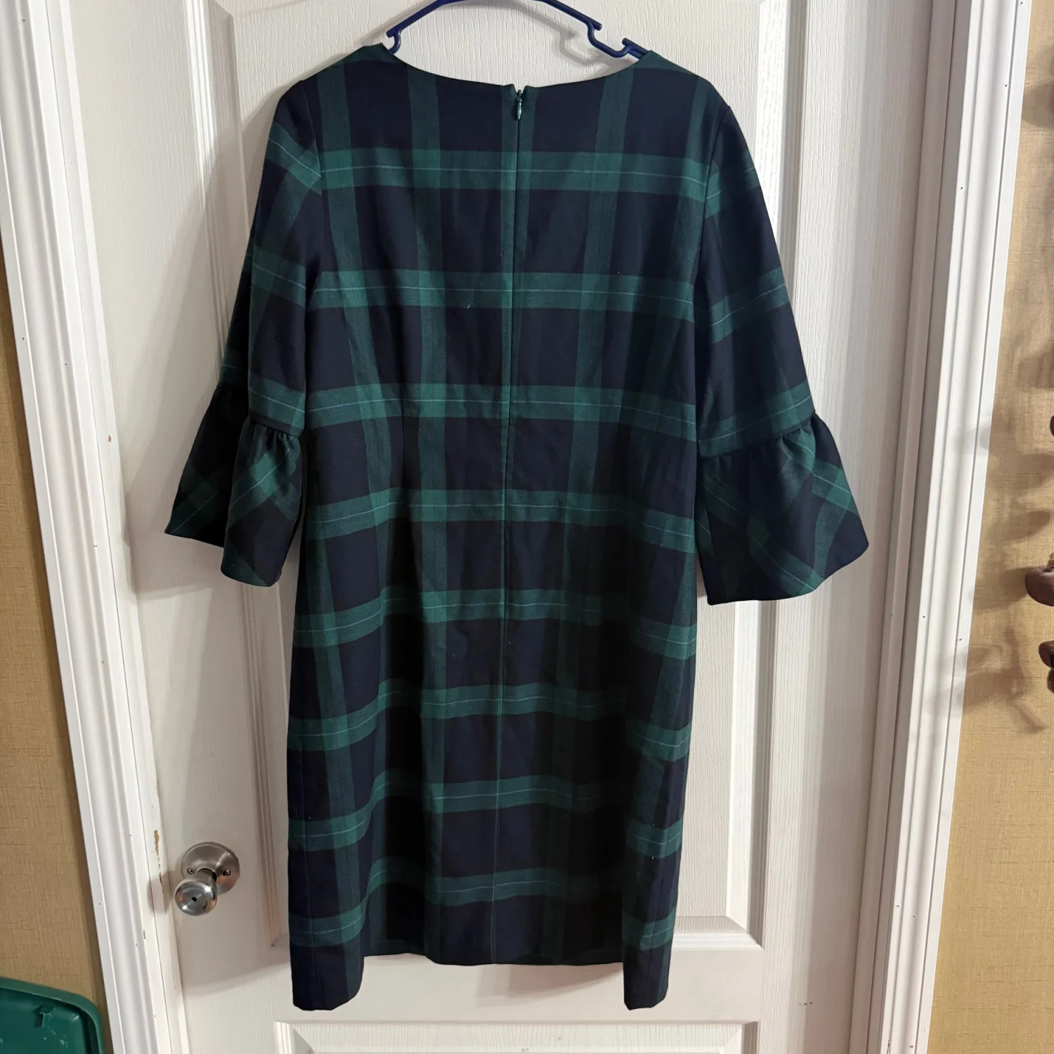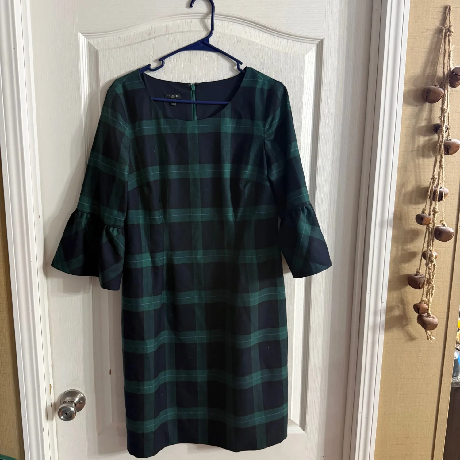 Talbots Petite Women’s Green Plaid Bell Sleeve Dress Sz 12P. F-163