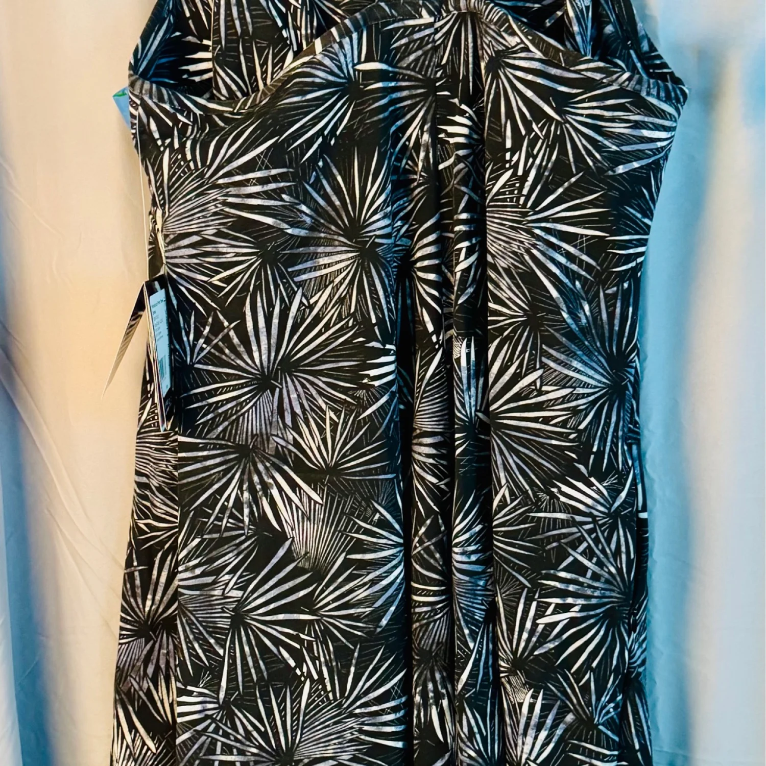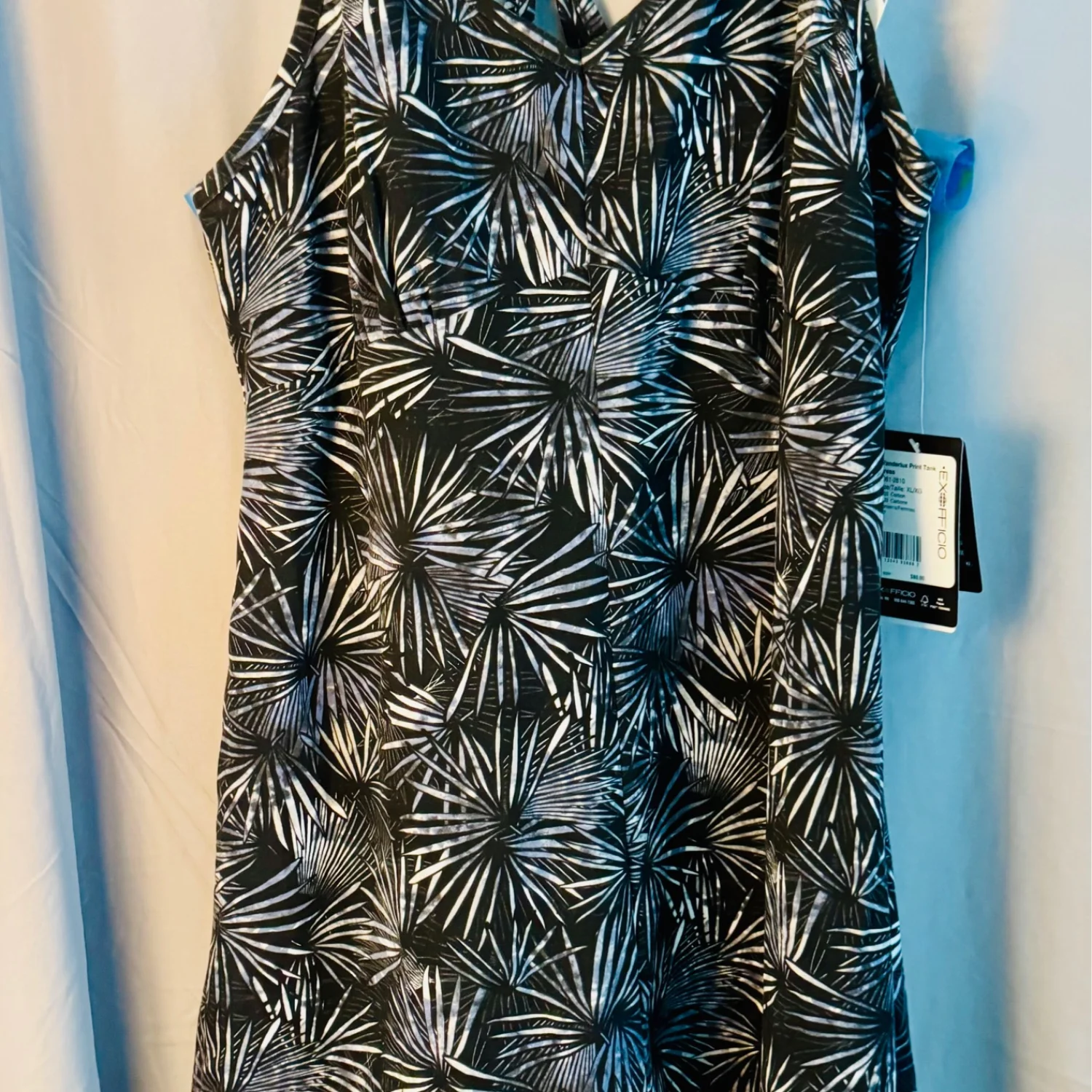 This EXOFFICIO gray tank dress in size X-Large features a stylish palm print pattern with a sleek V-neckline and sleeveless design. Made from a blend of polyester, spandex, and lyocell, the dress offers a comfortable and stretchy fit perfect for travel and casual occasions. With zip pockets, built-in bra, UPF 30 protection, odor resistant and quick drying, this dress combines practicality with a touch of beachy style, making it an ideal choice for summer, fall, and spring seasons. Ideal for travel and outdoor activities. Size S. Tags: #SunProtection #TravelWear #LeafPrint.
