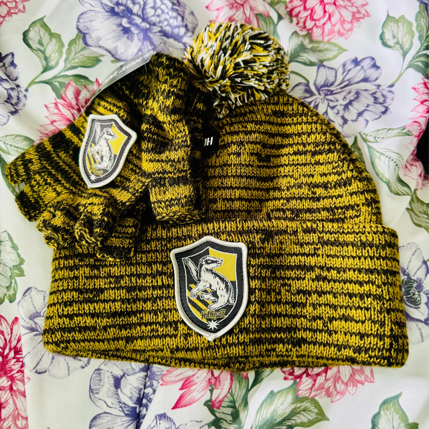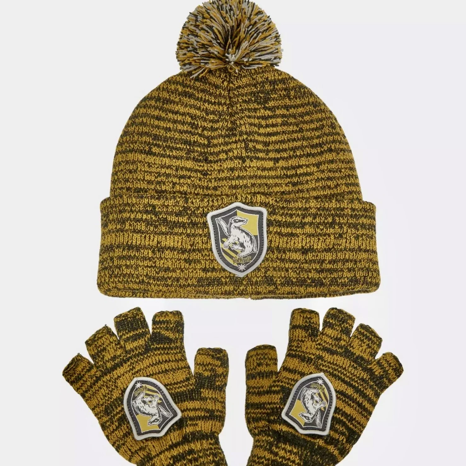 Harry Potter - Hufflepuff Marled Glove & Beanie Set -NEW