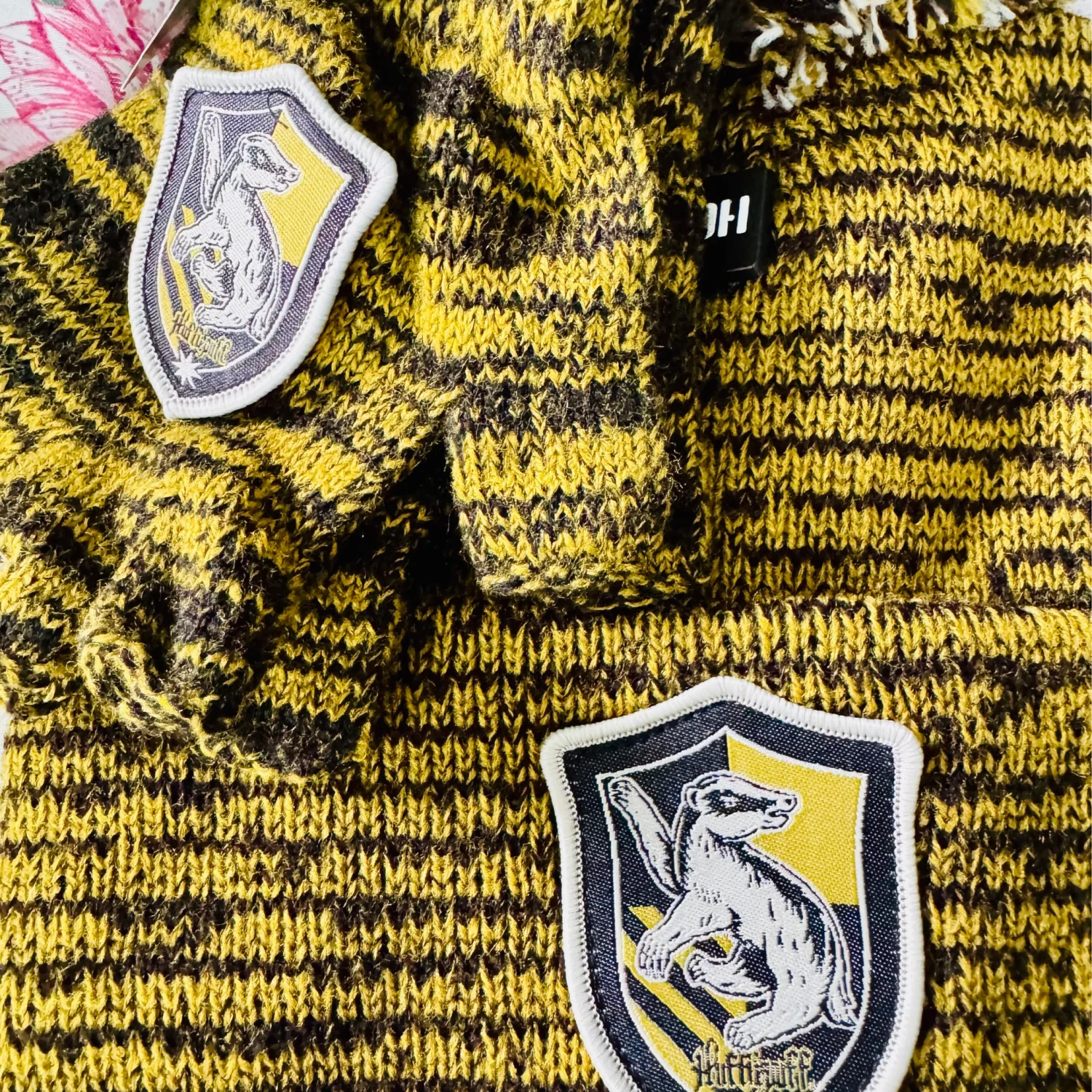 This This Harry Potter Hufflepuff Marled Glove & Beanie Set from Hot Topic is a must-have for fans of the magical world. The multicolor design, featuring the iconic Hufflepuff colors, and stretchy knit material make it perfect for the winter, fall, and spring seasons. The beanie and glove combo is ideal for both men and women, and the Hufflepuff theme adds a touch of magic to your outfit. Whether you're heading to school or just want to showcase your love for Harry Potter, this set is a stylish and cozy choice. #winter #knitwear #casual
