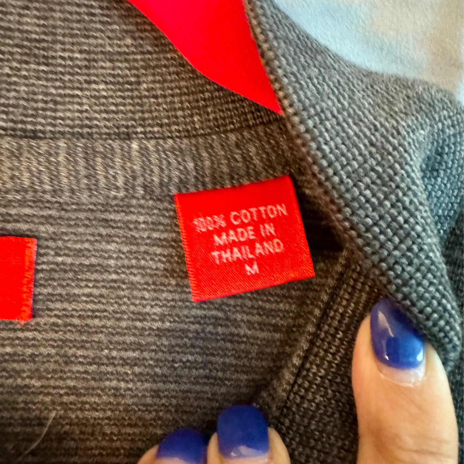 Mens The Izod Men Large Polo in Gray Striped with Texture is a stylish and versatile addition to any man's wardrobe. This long sleeve sweater features a collared neckline and a convenient pullover closure, making it perfect for travel, casual outings, or even business meetings. Made of comfortable polyester knit fabric, this polo also includes accents like the brand logo, adding a touch of sophistication to a classic design. The regular M size ensures a comfortable fit, while the striped pattern and textured detail give it a unique and fashionable look. #Casual #Menswear #Polo