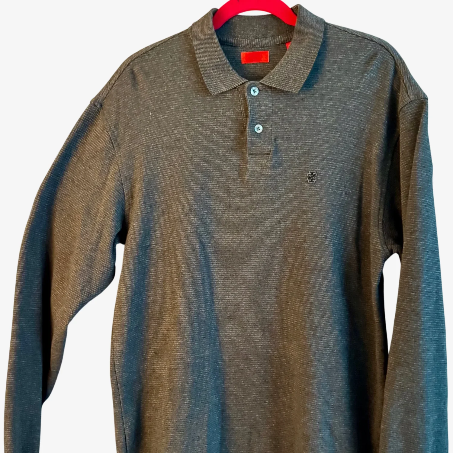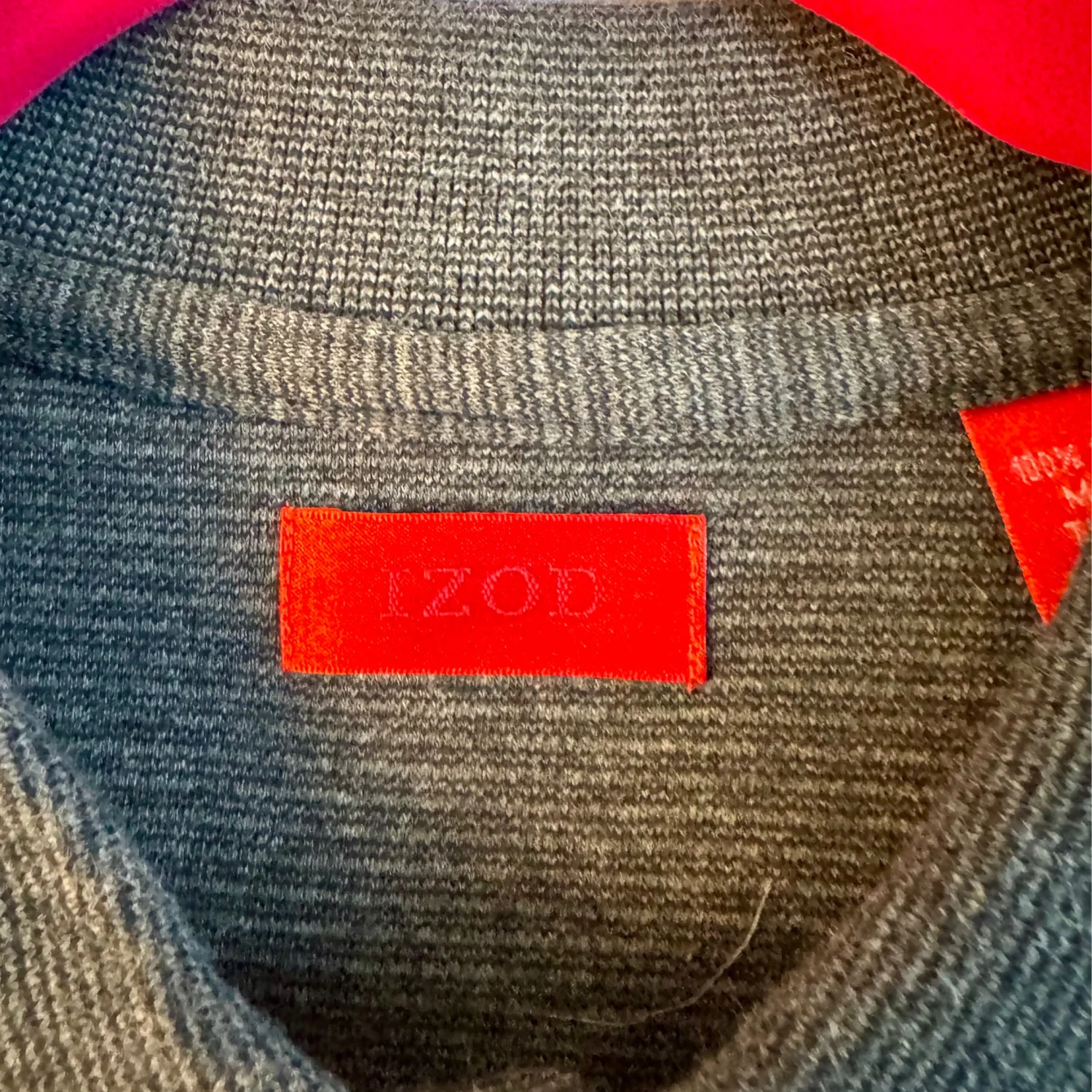 Izod Men Large Polo - Long Sleeve Sweater, Gray Striped, Texture / Pattern
