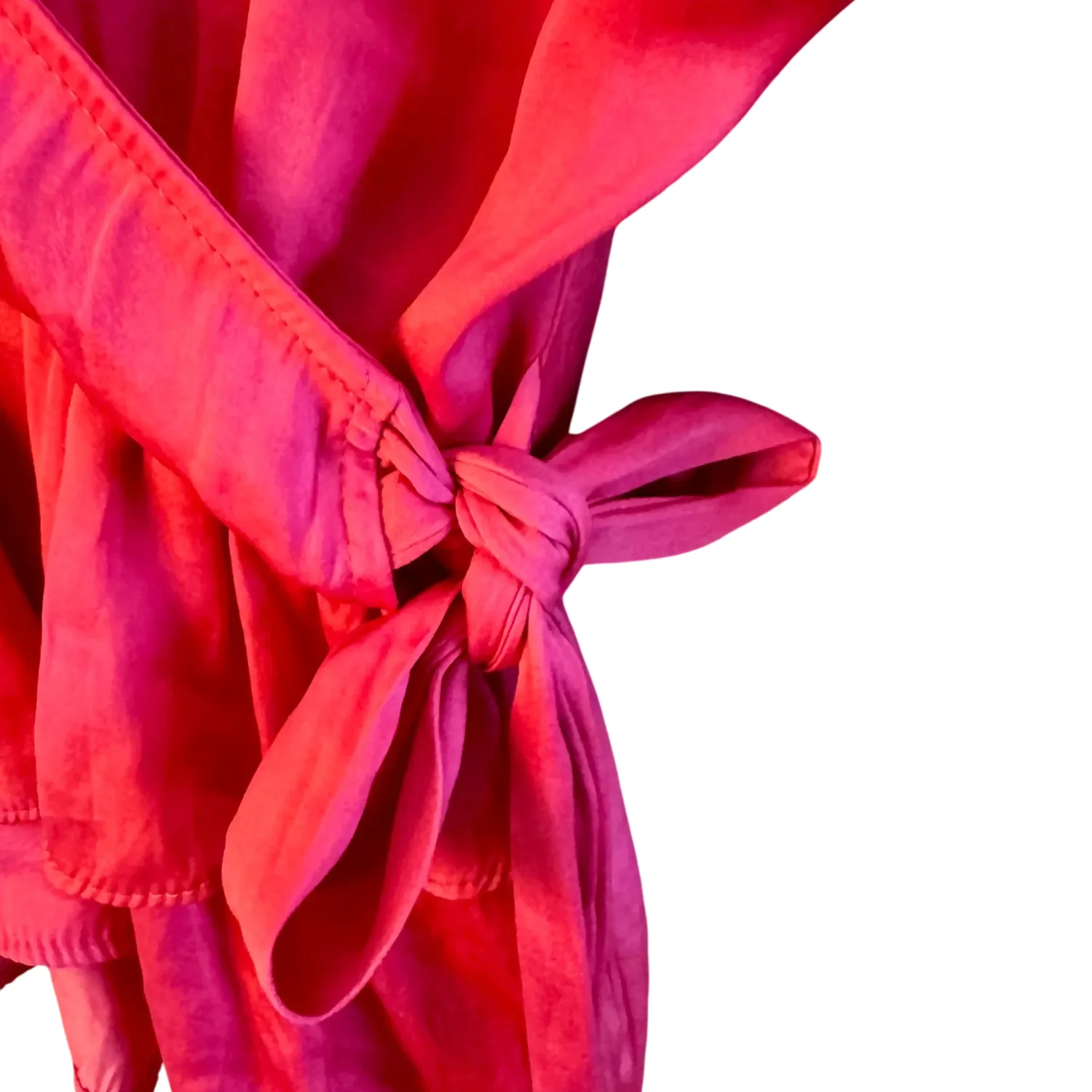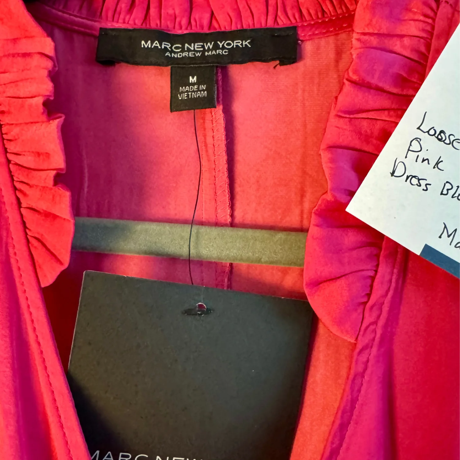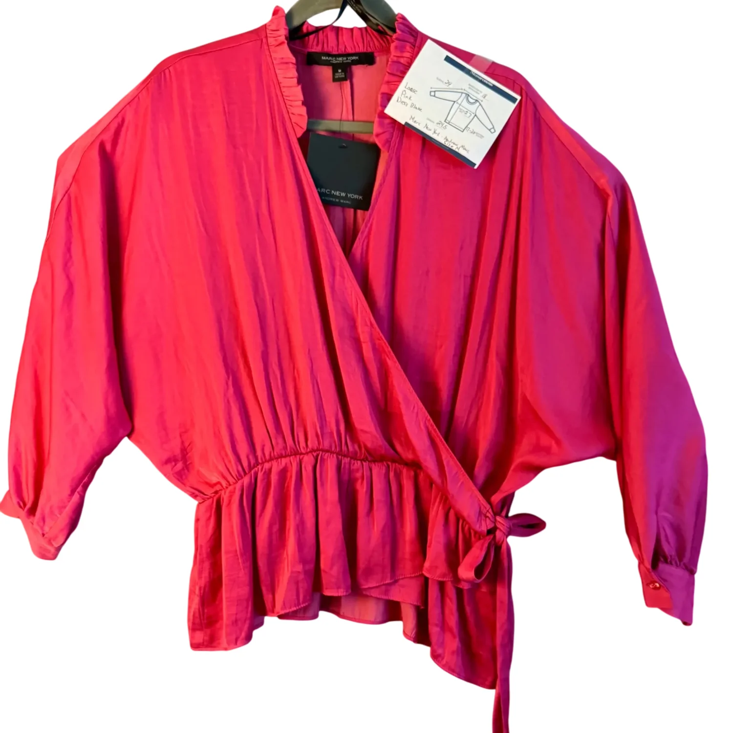 This vibrant pink wrap blouse from Marc New York by Andrew Marc features a loose fit and an elegant, ruffled neckline. Made from comfortable fabric, it has a tie waist for customizable styling and a flattering silhouette. Perfect for casual or dressy occasions. #blouse #pink #feminine #versatile