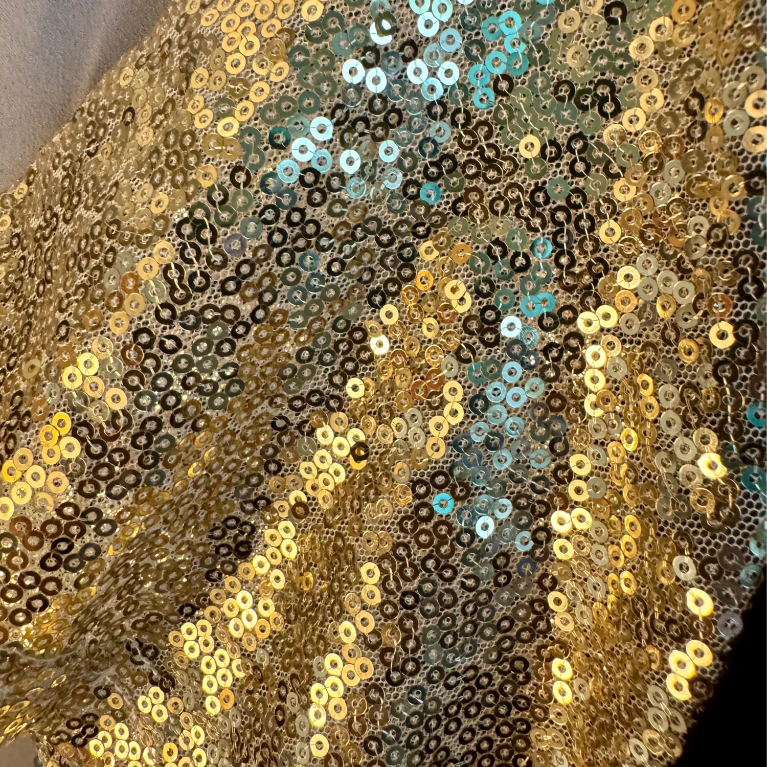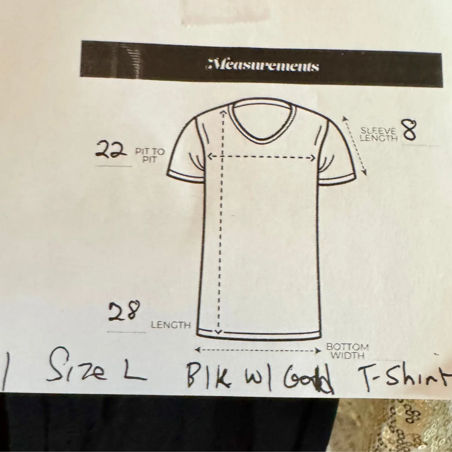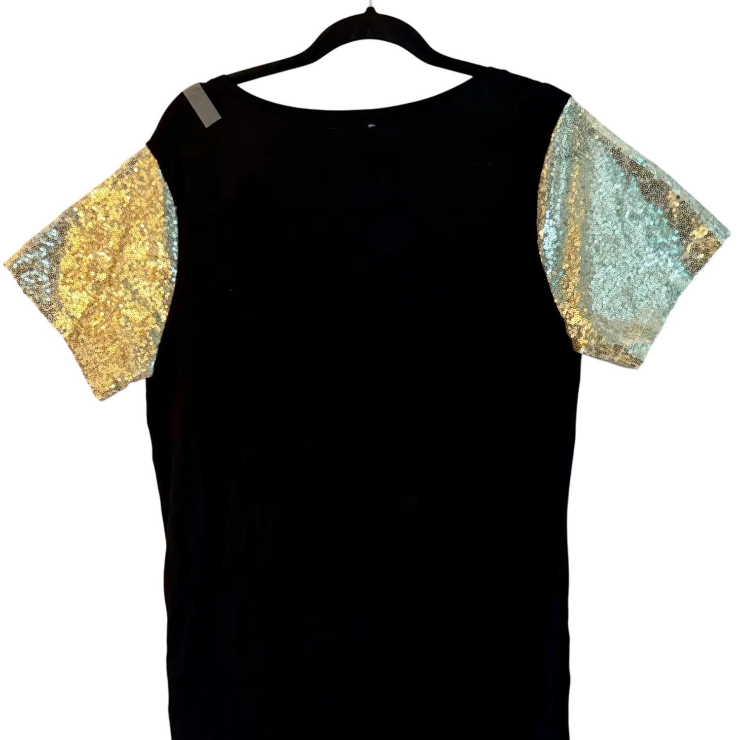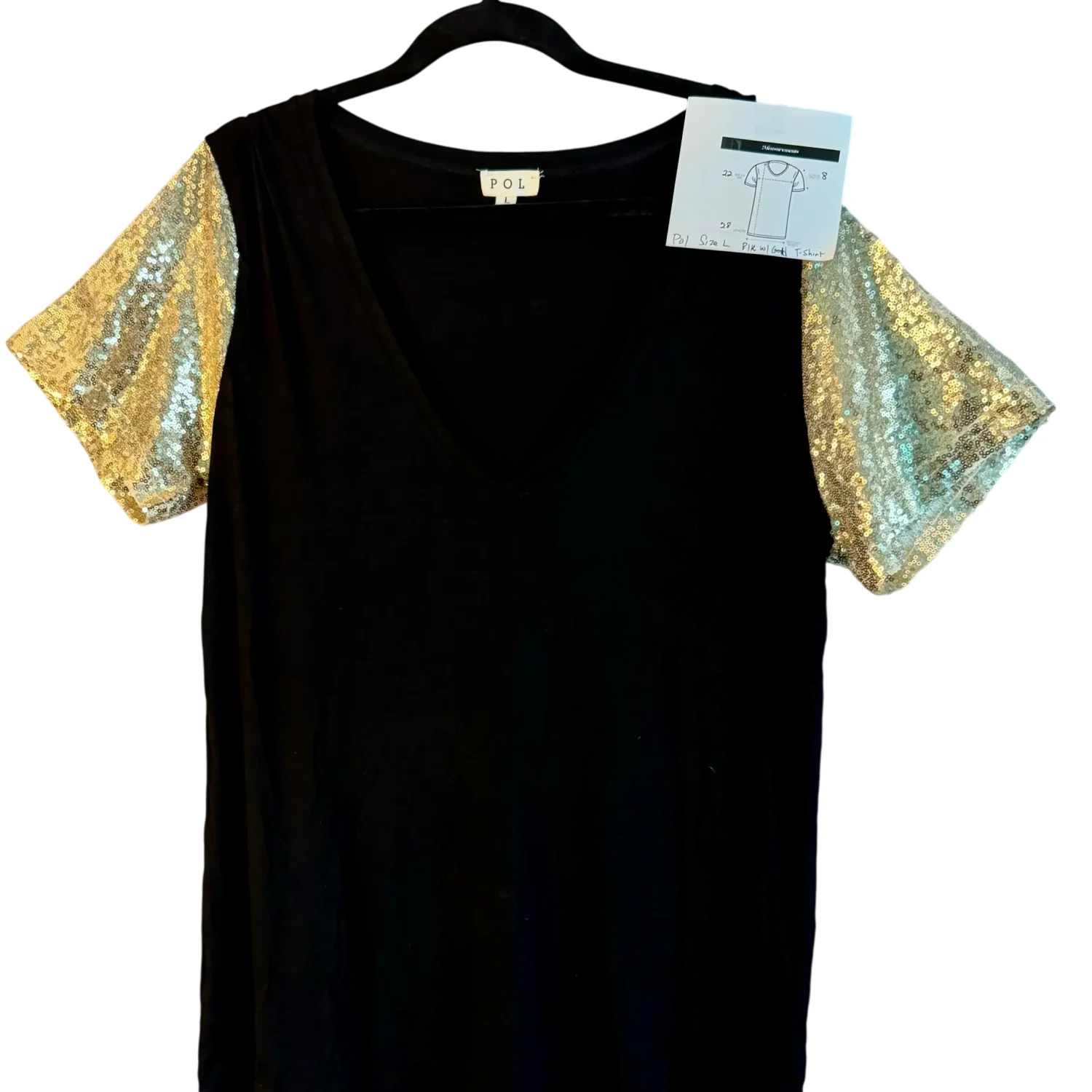 POL Black Gold Sequined Sleeves T-Shirt V-Neck Short Sleeve Comfy Size Large