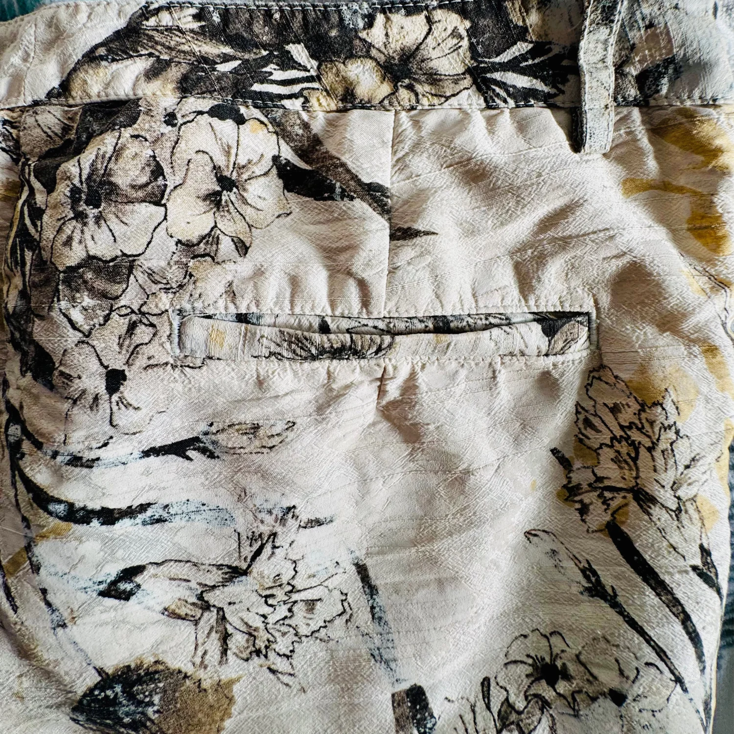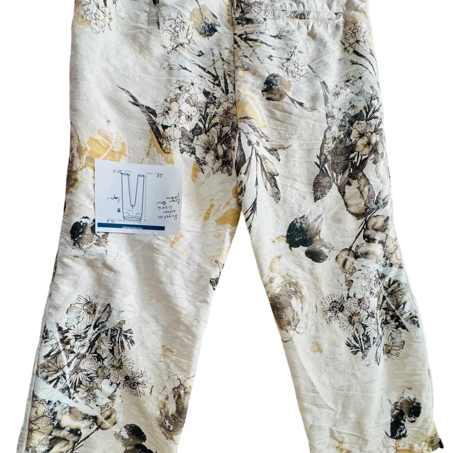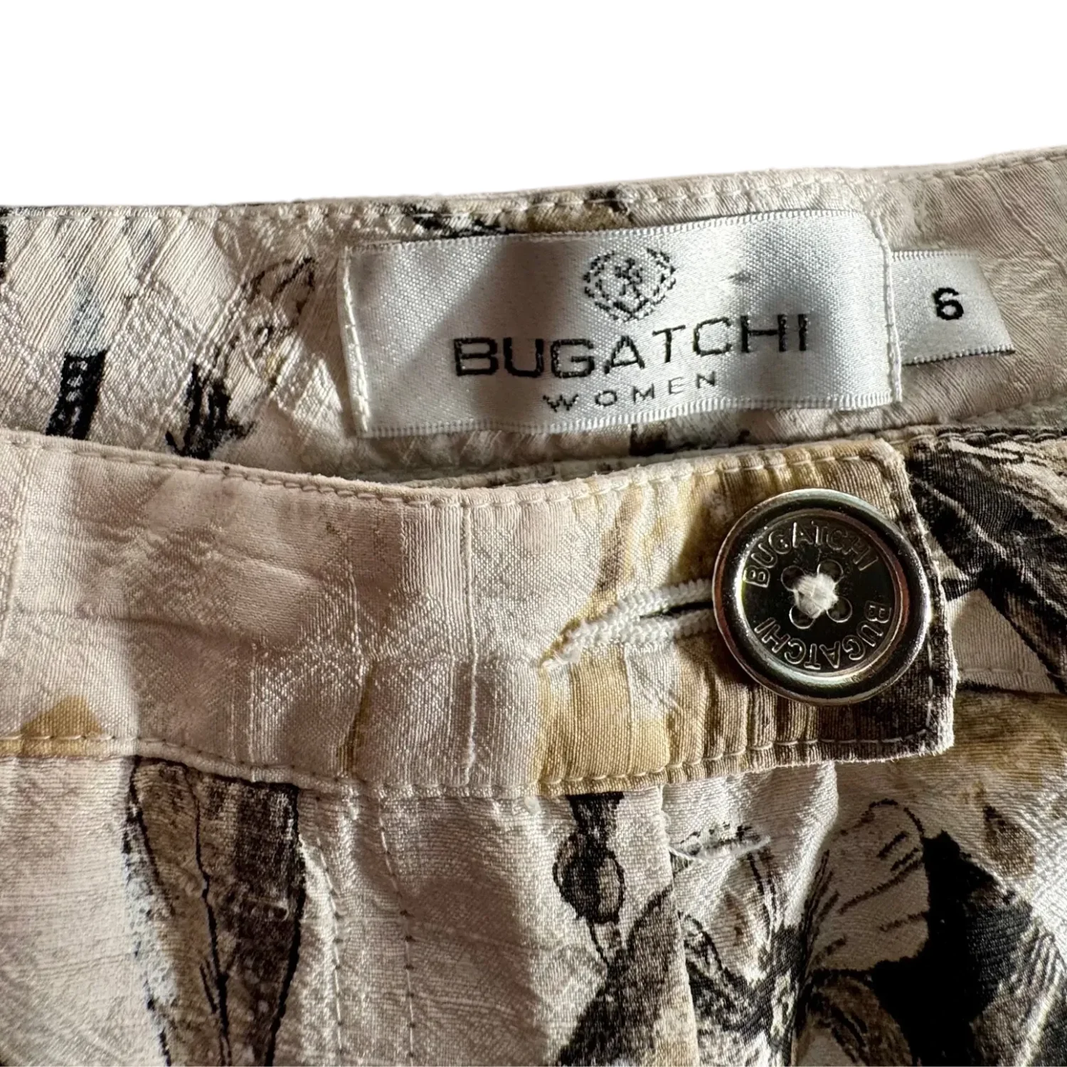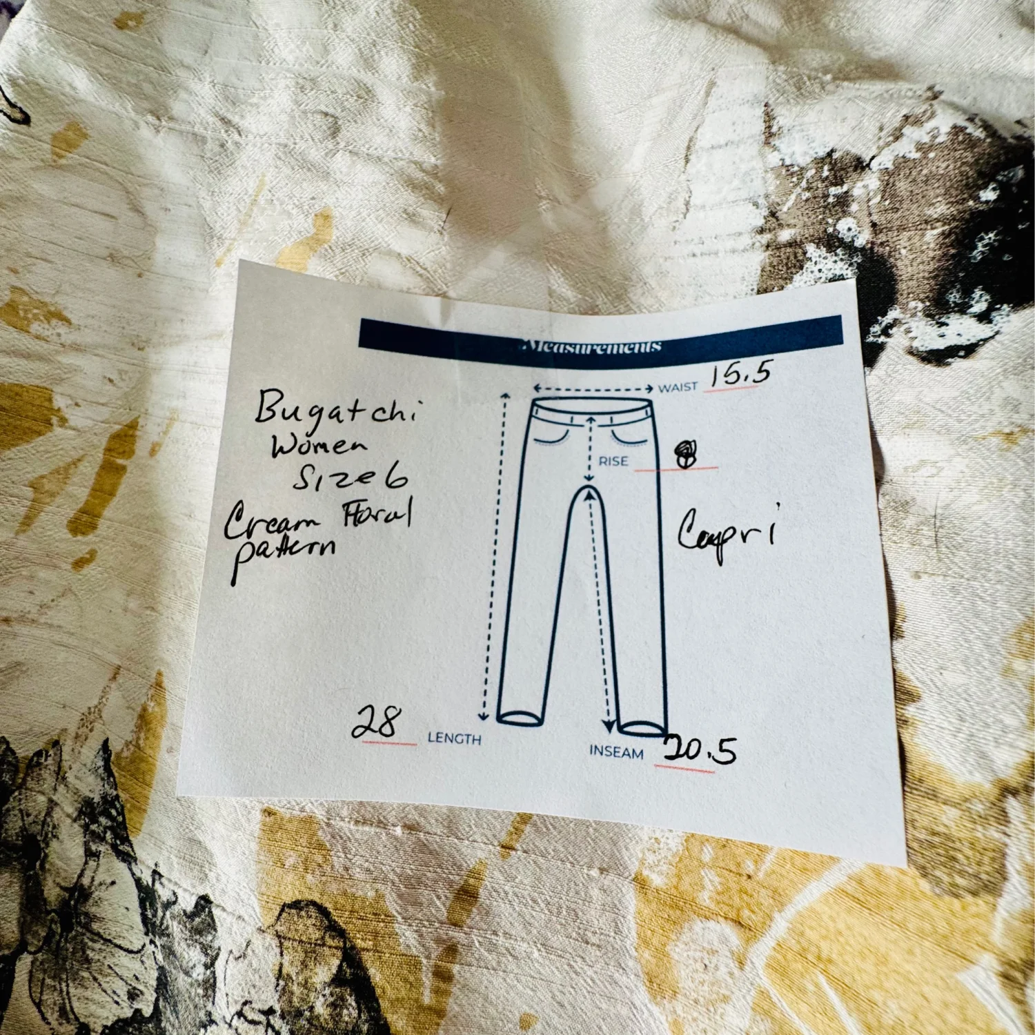 Vintage BUGATCHI Silk Size 6 PANTS Cropped Cream FLORAL NEW $175