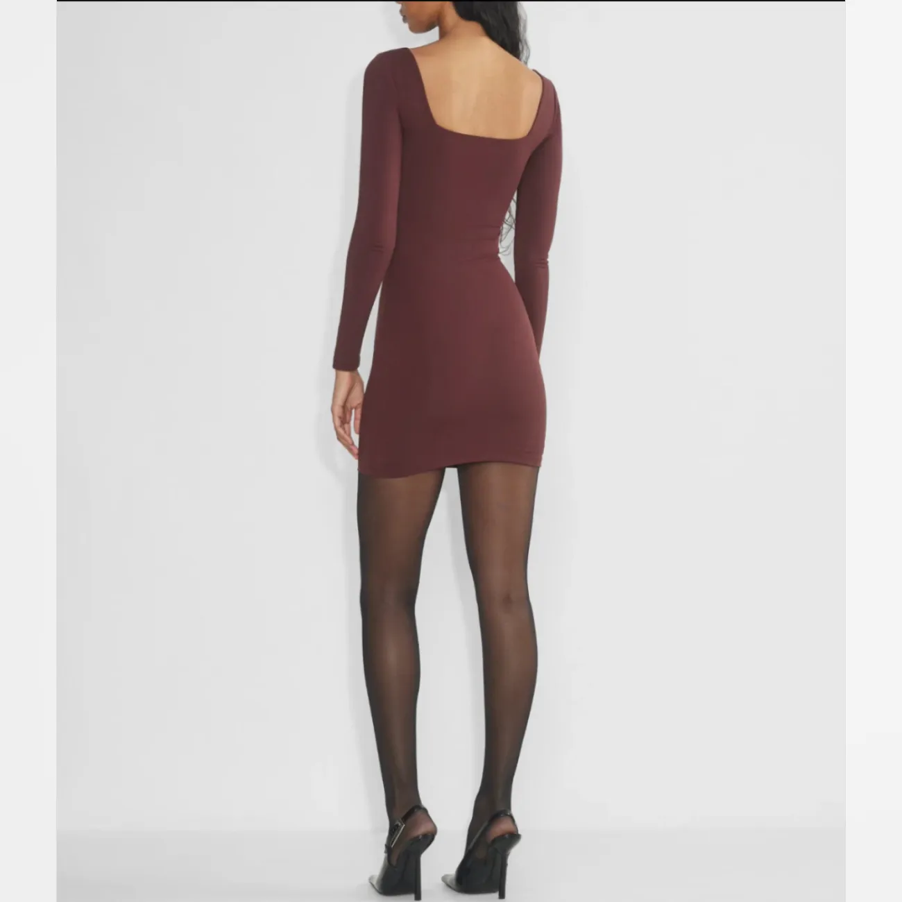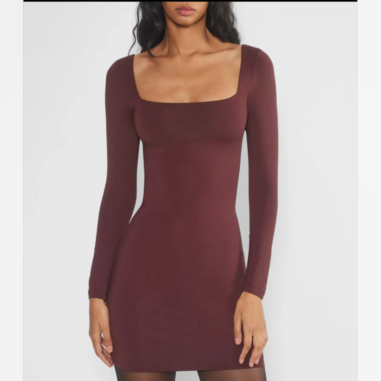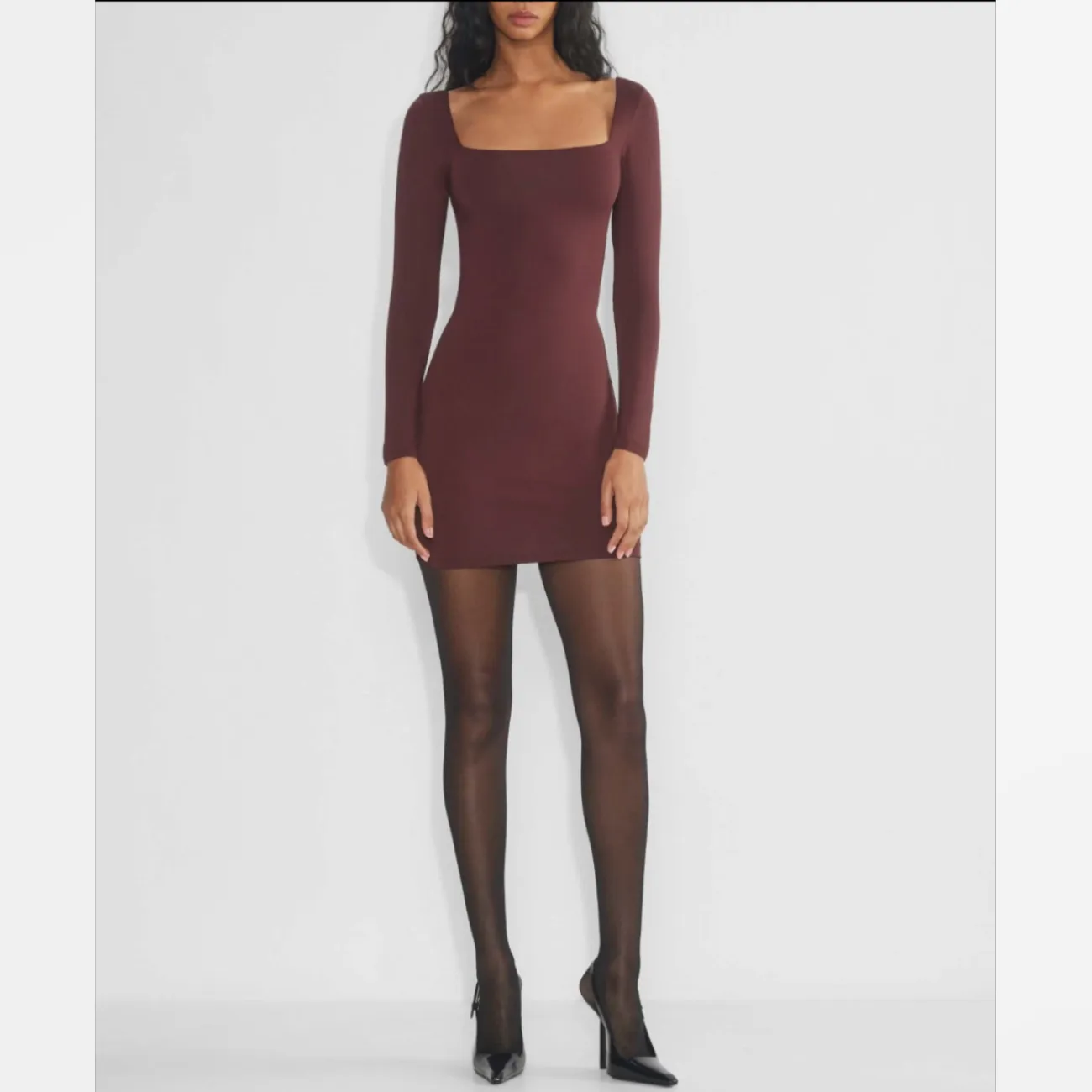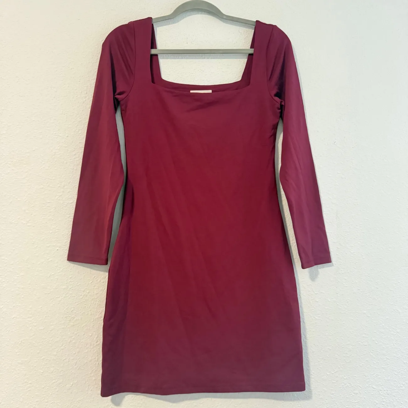 Aritzia Babaton Contour Sumac Burgundy Long Sleeve Square neck Mini Dress Size L