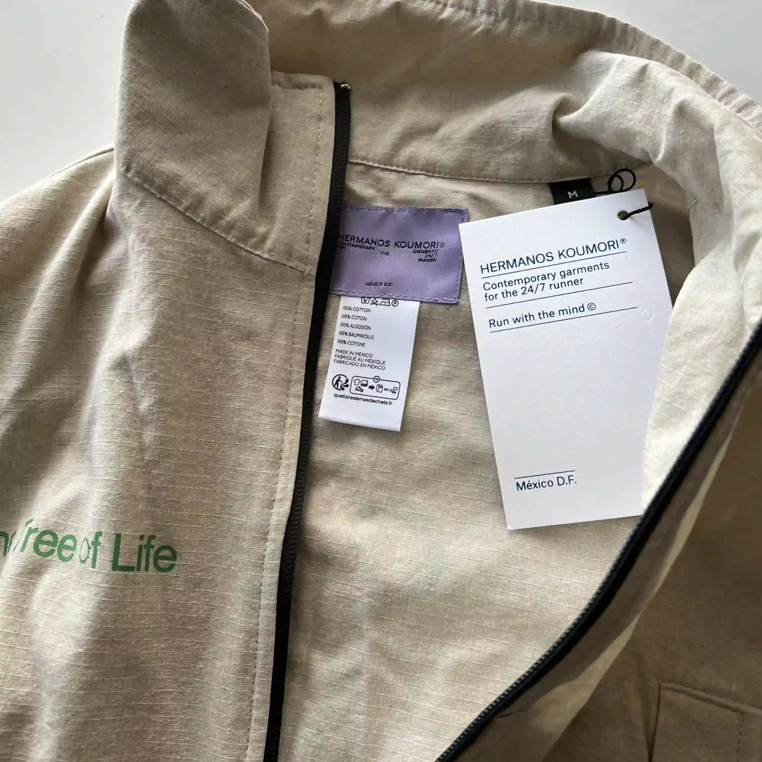 Brand new, never worn, Hermanos Koumori jacket. Luxe sportswear. Full price is 200 with tax. Size medium.