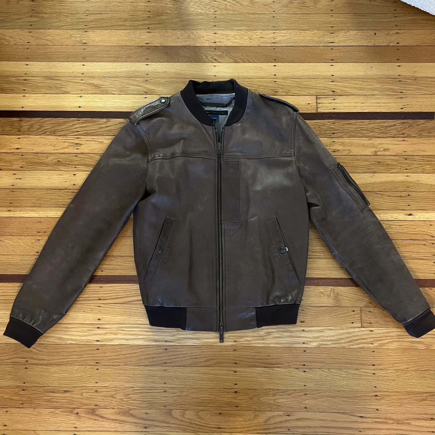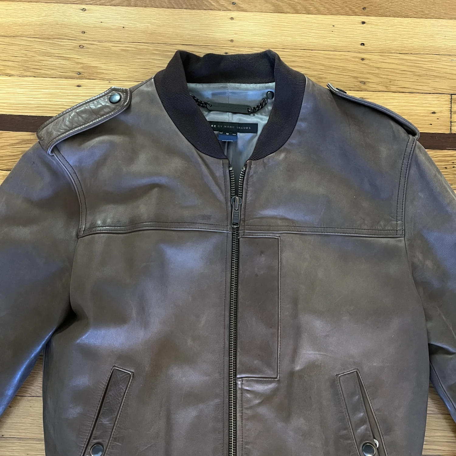 vintage brown leather jacket, marc by marc jacobs