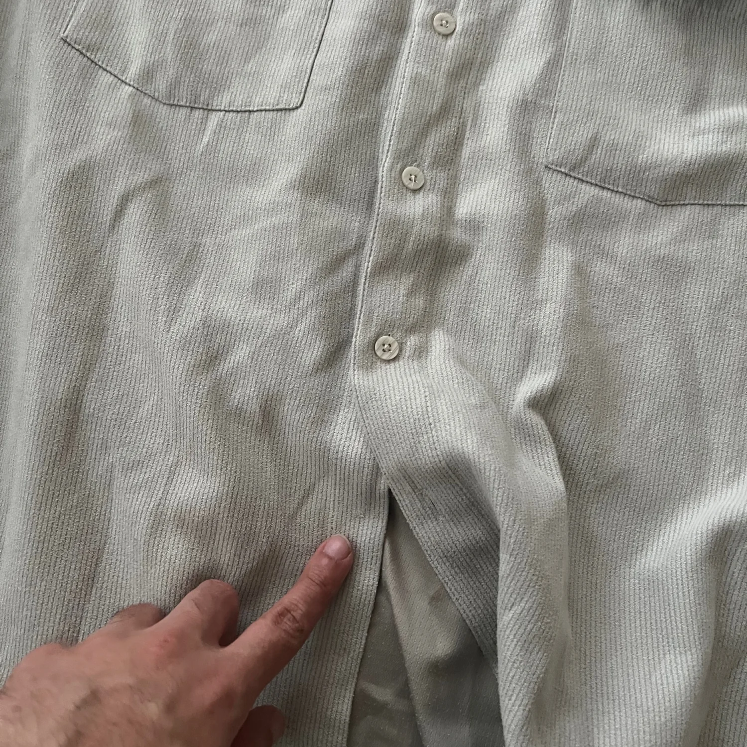 Vintage Bruno men's sueded microfiber shirt in beige / light grey, size L. The shirt features a subtle stripe pattern, long sleeves, and two chest pockets with button closures. Made from soft microfiber fabric, it offers a comfortable and slightly brushed feel. Ideal for casual or smart-casual occasions. Note: it is missing a button!! (See pictured). I haven’t worn it in years - hence why I’m selling it (not my style anymore)