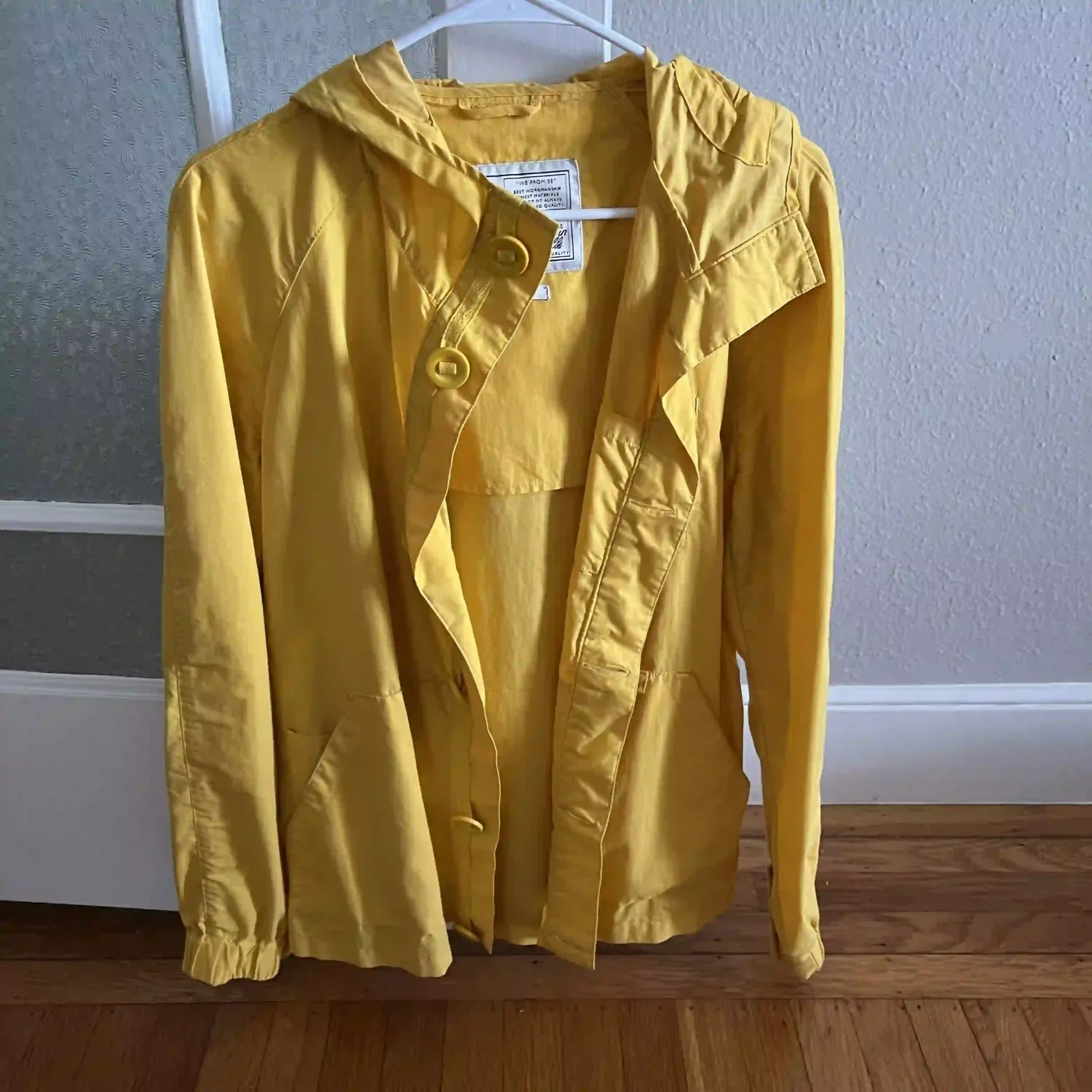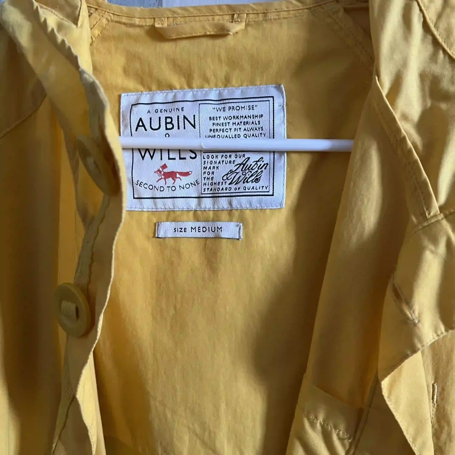 Beautiful rare Aubin & Wills yellow rain jacket, with rubber buttons. Received lots of compliments.